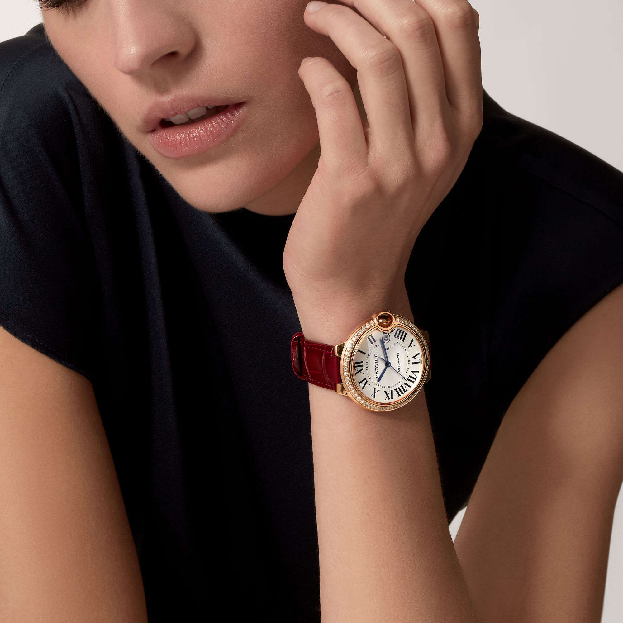 Ref. WJBB0056 - Luftig wie ein Ballon, blau wie der Cabochon, den sie umschließt – die Ballon Bleu de Cartier schmückt mit Eleganz Damen- wie Herren-Handgelenke. Die römischen Ziffern werden unter dem Einfluss einer Aufzugskrone in tiefem Blau von ihrer Bahn abgelenkt. Ein Gehäuse mit nach außen gewölbten Linien, guillochiertes Zifferblatt, Zeiger in Schwertform, Armbänder mit polierten oder satinierten Gliedern ... die Ballon Bleu de Cartier folgt ihrer Bahn durch das Cartier Uhren-Universum.