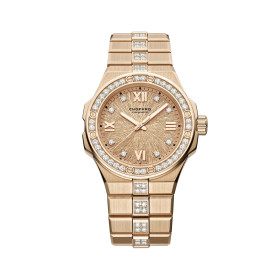 Ref. 298617-6002 - Die neue sportlich schicke Alpine Eagle-Uhrenkollektion ist modern, raffiniert und prägnant. Sie ist eine zeitgemässe Interpretation der St. Moritz: die erste Uhr, die 1980 von Karl-Friedrich Scheufele, dem heutigen Co-Präsidenten von Chopard, entworfen wurde. Die Alpine Eagle wurde von ihm persönlich konzipiert und entworfen. Sie ist inspiriert von seiner Leidenschaft für die Alpen und der erhabenen Kraft des Adlers, der dort souverän regiert. Die Uhr aus dem exklusiven, besonders widerstandsfähigen und lichtreflektierenden Metall Lucent Steel™ und ethischem 18 Karat Rosegold mit Diamantbesatz schlägt im Rhythmus eines als Chronometer zertifizierten Uhrwerks.