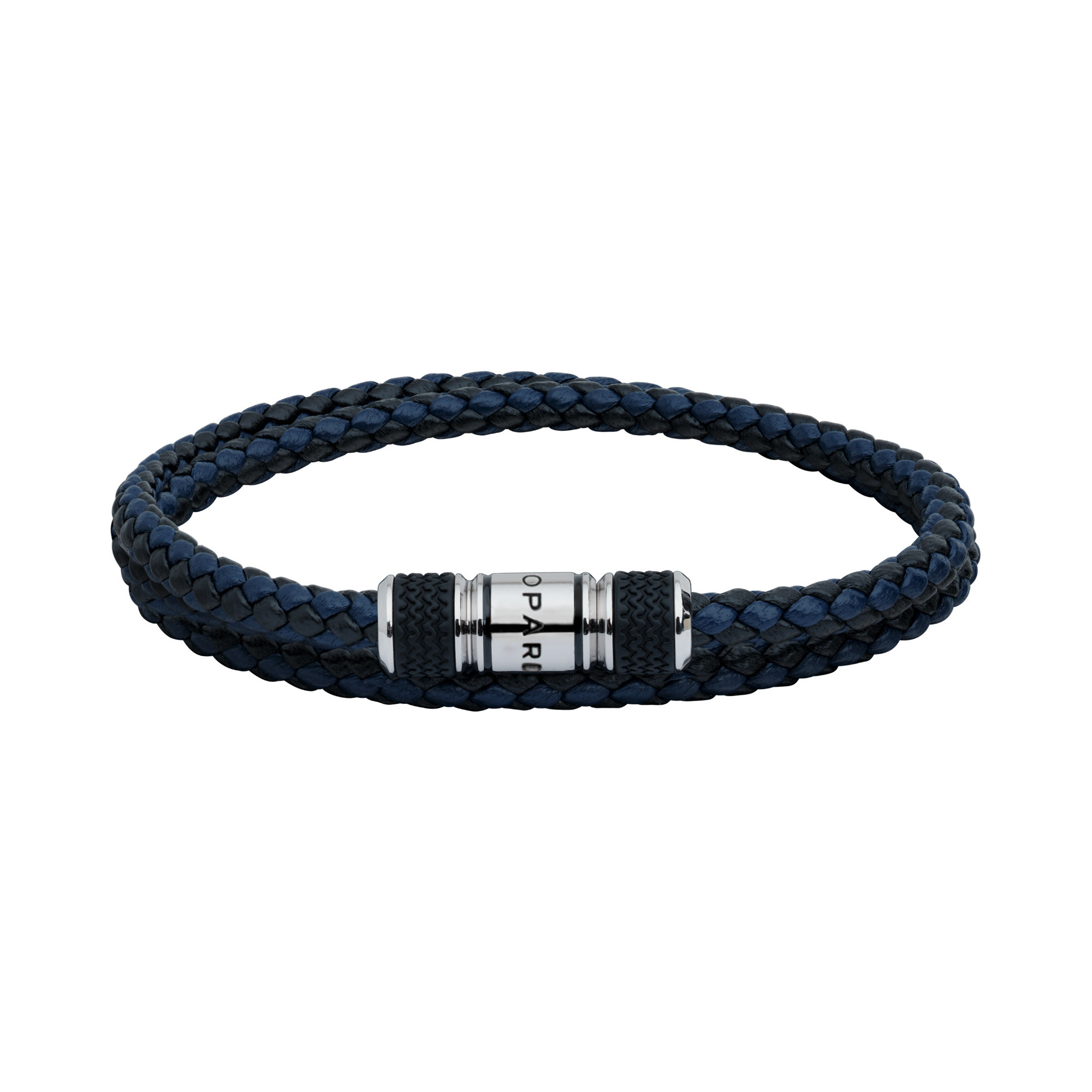 Ref. 95016-0384 - Dieses Classic Racing Armband in marineblauem und schwarzem Leder mit silberfarbenen Metallakzenten schmückt das Handgelenk auf elegante Weise mit einer doppelten geflochtenen Lederschlaufe und zeichnet sich durch seinen minimalistischen Stil aus, der subtilen, zeitlosen Luxus ausstrahlt. Die Designer-Schließe ist mit dem berühmten Dunlop-Reifenmuster aus den 1960ern als Symbol für die Racing Linie versehen und sorgt für unnachahmliche sportliche Eleganz.