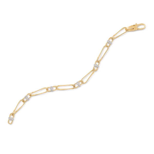 Ref. BG844 B YW - Bei diesem Armband bilden feine Stränge aus 18-karätigem Gelbgold, die mit unserer exklusiven Spiraltechnik gefertigt wurden, fesselnde Achterformen, die mit Pavé-Diamanten verbunden sind und das natürliche Licht sanft einfangen und reflektieren. Ein atemberaubendes Schmuckstück, das jedes Handgelenk mit raffinierter Eleganz schmückt.