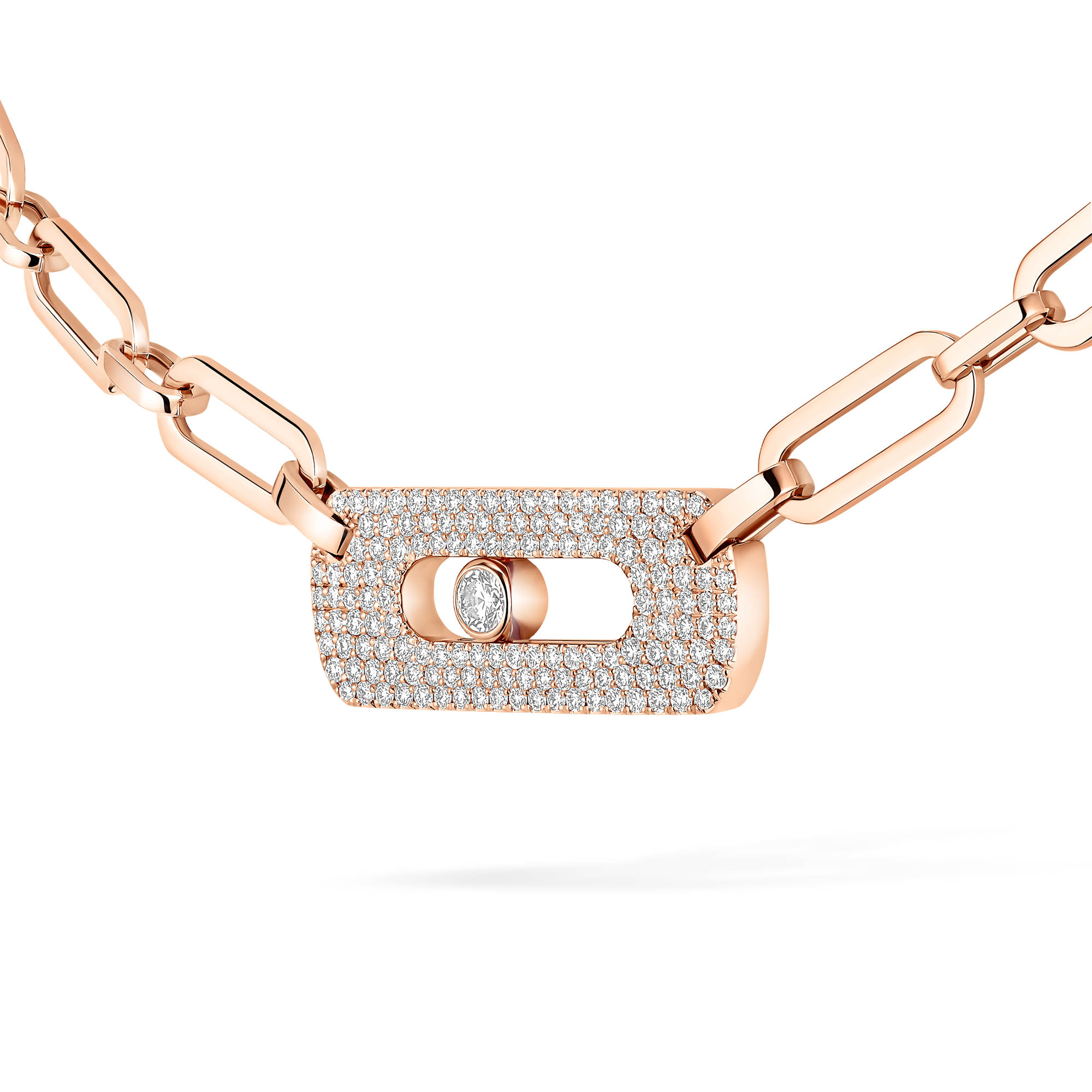 Ref. 12095-PG - Die zum Klassiker erhobenen XXL-Ketten geben auf Laufstegen und in unseren Schmuckkästchen nach wie vor den Ton an. Kraftvoll im Design und elegant in den Proportionen: Die neue Move Link Gliederhalskette lässt Frauenherzen höherschlagen. Sie ist aus 18 Karat Roségold gefertigt, schmiegt sich sanft um den Hals und verleiht der Haut einen strahlenden Glanz. Mit ihrem schillernden, mit Diamanten besetzten Move Motiv und den breiten Kettengliedern ist diese eng anliegende Halskette ein kühnes und selbstbewusstes Schmuckstück, das jedes Outfit perfekt abrundet.