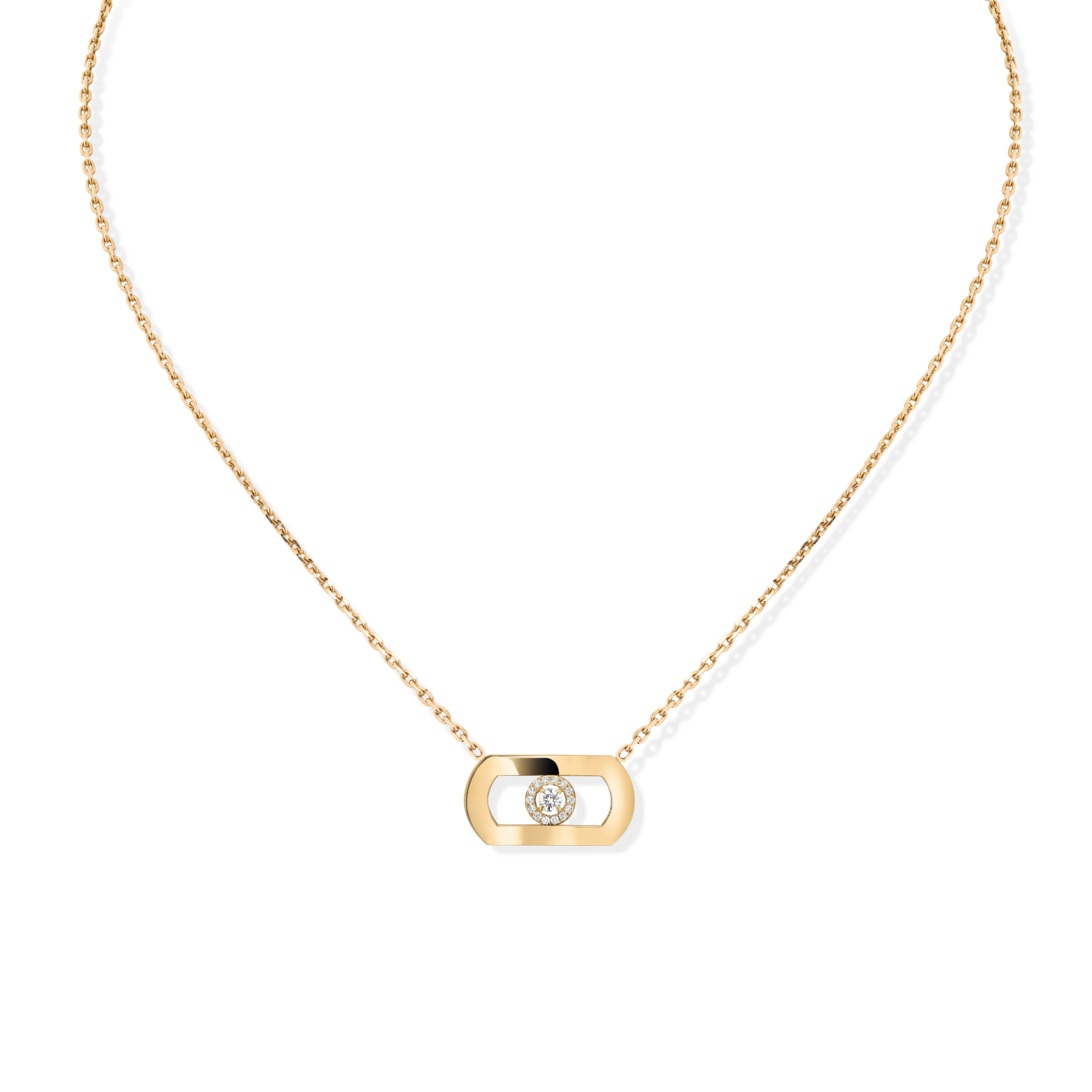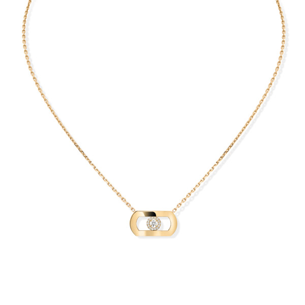 Ref. 12944-YG - Valérie Messika verleiht dem Move eine neue Dimension: selbstbewusster, statuarischer, architektonischer! Eine Fläche aus Gelbgold und ein unverkennbarer beweglicher Diamant umgeben vom emblematischen mit Diamanten ausgefassten Halo der Maison ... Nie zuvor war das Move-Motiv so verwegen. Eine ebenso modische wie zeitlose Diamantanhängerkette, die Sie sowohl im Alltag als auch zu den schönsten Anlässen tragen können. Ein luxuriöses Schmuckstück, mit dem Sie Ihre Persönlichkeit unterstreichen können. Für einen anspruchsvollen Style können Sie sie mit einer anderen Kreation kombinieren – für das ultimative Fashion-Statement!