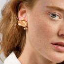 Ref. A9996-419 - Der von Charlotte Lynggaard entworfene Wild Rose Ohrclip ist aus 750/- Gelbgold mit 12 Diamanten von insgesamt 0,09 carat TW. VS. gefertigt. Die Goldoberflächen sind von Goldschmiedemeister von Hand geritzt und gehämmert und die Erhebungen sind poliert, um einen Kontrast zu schaffen. Als Einzelstück zu erwerben. Teil der Wild Rose Collection.