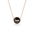 Die neueste Kreation kombiniert schwarzen Onyx, der als Glücksbringer gilt, mit strahlendem weißen Perlmutt auf der Rückseite. Der zweiseitige Anhänger, akzentuiert durch weiße Diamanten und eingefasst in warmem Roségold, lässt sich mit einem einfachen Dreh verwandeln und passt sich mühelos verschiedenen Stilen und Anlässen an.
