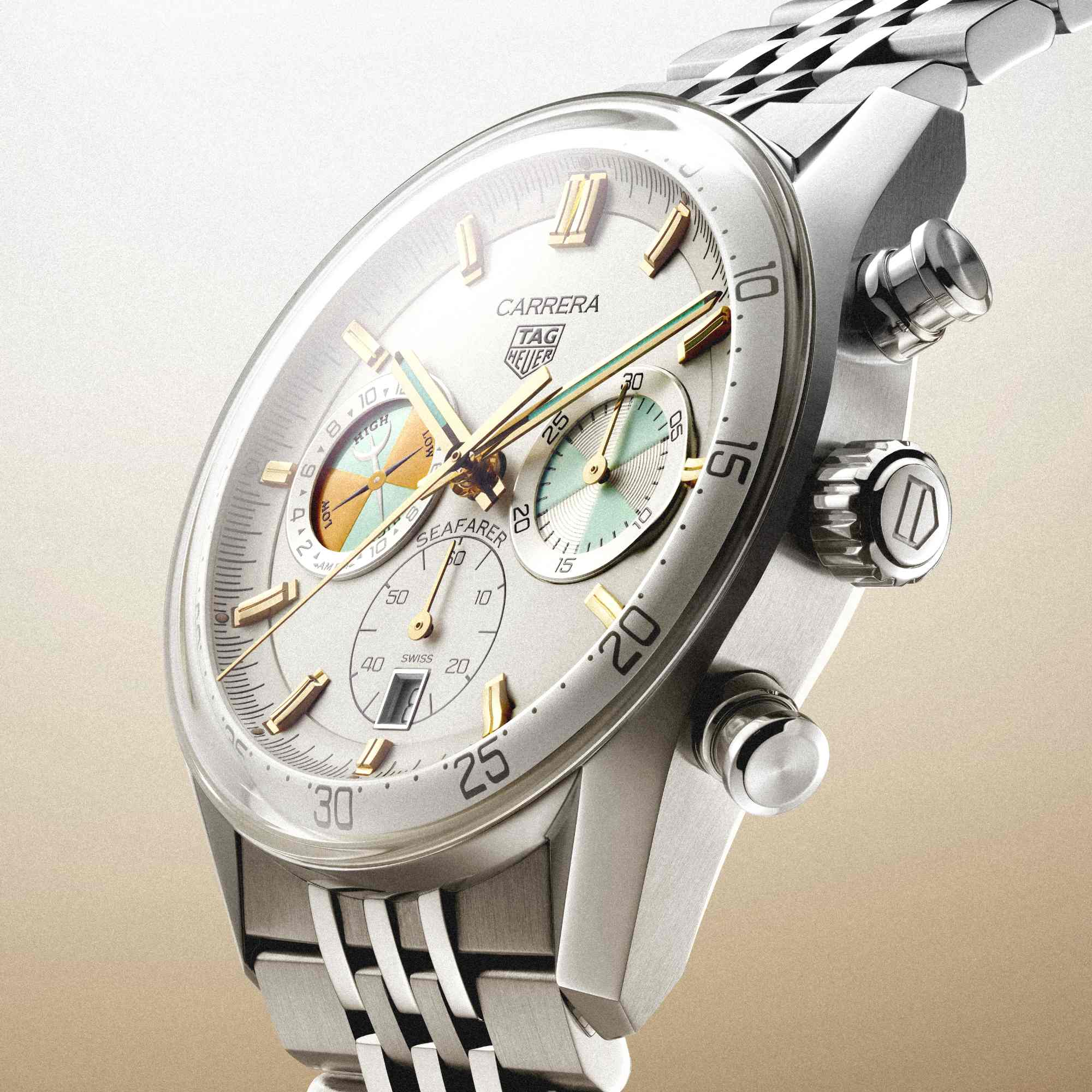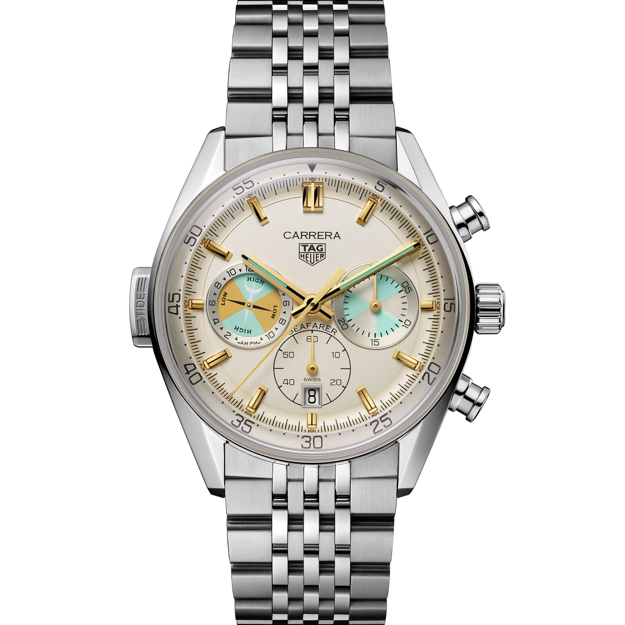 Ref. CBS2016.EB0430 - Der von einer der historischen Seafarer Uhren von TAG Heuer inspirierte TAG Heuer Carrera Chronograph Seafarer lässt die Segeltradition der Maison mit einer zeitgemäßen Note wieder aufleben. Sein kühnes, vom Meer inspiriertes Design und das neue Calibre TH20-04 – mit einer Komplikation zur Anzeige der Gezeiten – verkörpern den Pioniergeist, der das Meer und präzise Zeitmessung verbindet.