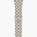 Integiertes Armband aus Edelstahl 316L und 18K Gelbgold mit Sicherheitsfaltschließe, fünfreihig, satinierte Elemente außen und innen, polierte Elemente dazwischen