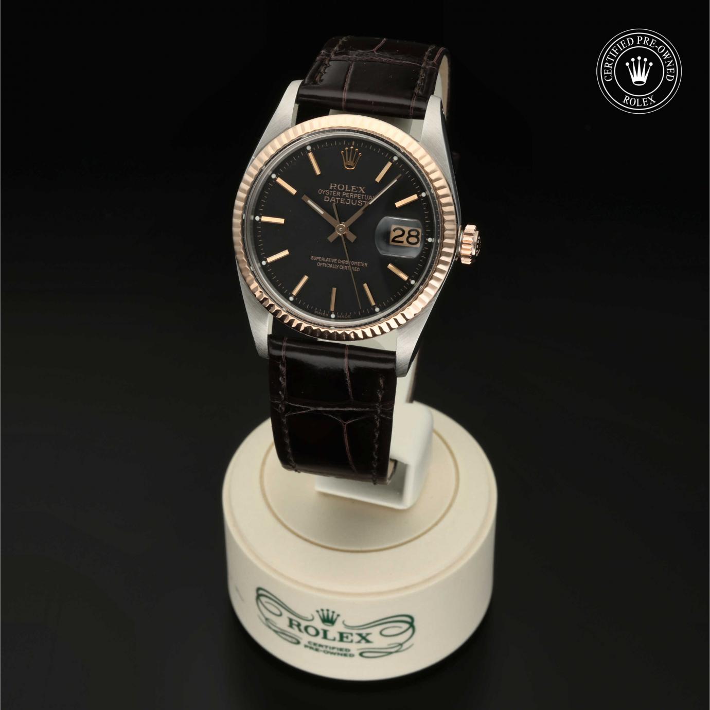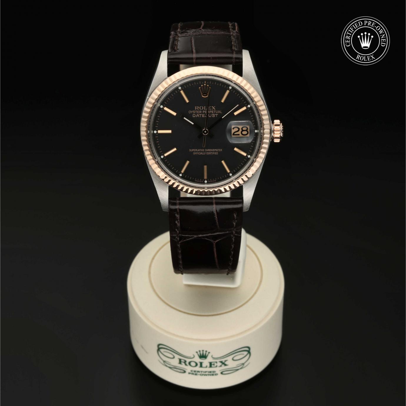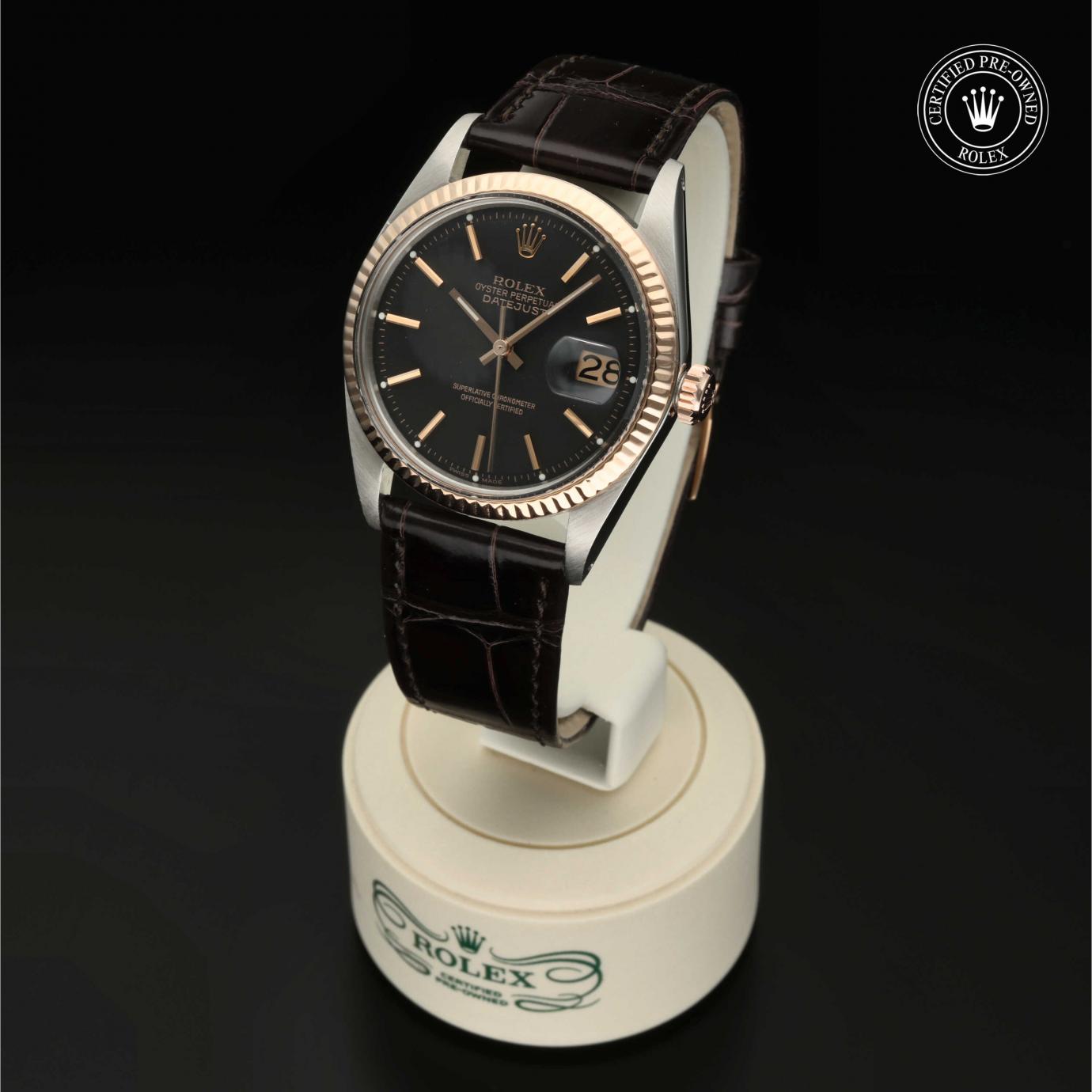 Bei ihrer Einführung im Jahr 1945 war sie das erste automatische und wasserdichte Armbandchronometer, das in einem Sichtfenster auf der 3‑Uhr-Position des Zifferblattes das Datum angibt.Die Datejust ist erhältlich in Edelstahl Oystersteel, als Version in Edelstahl Oystersteel und Gelb-, Weiß- oder Everose-Gold sowie als vollständig in 18 Karat Gold gefertigte Version mit einer großen Auswahl an Zifferblättern, Lünetten und Armbändern. Sie ist ebenfalls in Ausführungen mit Edelsteinbesatz erhältlich.