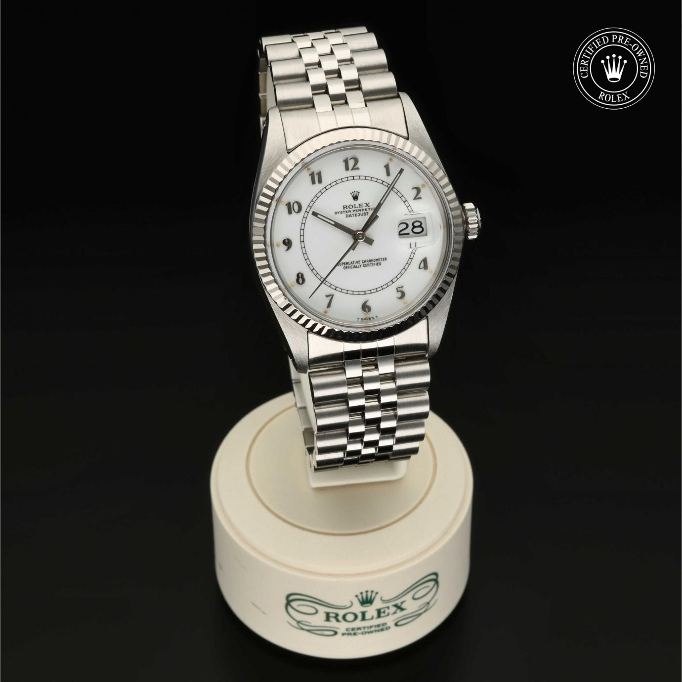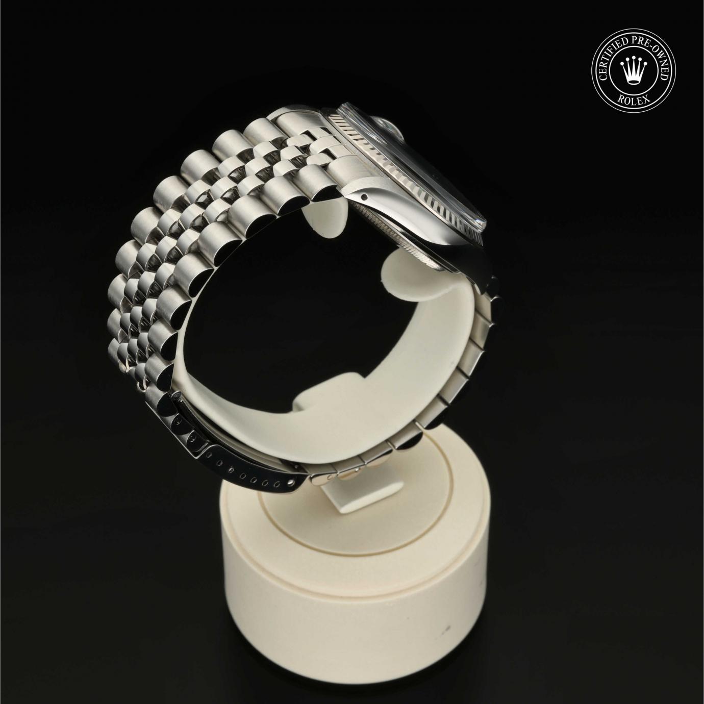 Bei ihrer Einführung im Jahr 1945 war sie das erste automatische und wasserdichte Armbandchronometer, das in einem Sichtfenster auf der 3‑Uhr-Position des Zifferblattes das Datum angibt.Die Datejust ist erhältlich in Edelstahl Oystersteel, als Version in Edelstahl Oystersteel und Gelb-, Weiß- oder Everose-Gold sowie als vollständig in 18 Karat Gold gefertigte Version mit einer großen Auswahl an Zifferblättern, Lünetten und Armbändern. Sie ist ebenfalls in Ausführungen mit Edelsteinbesatz erhältlich.
