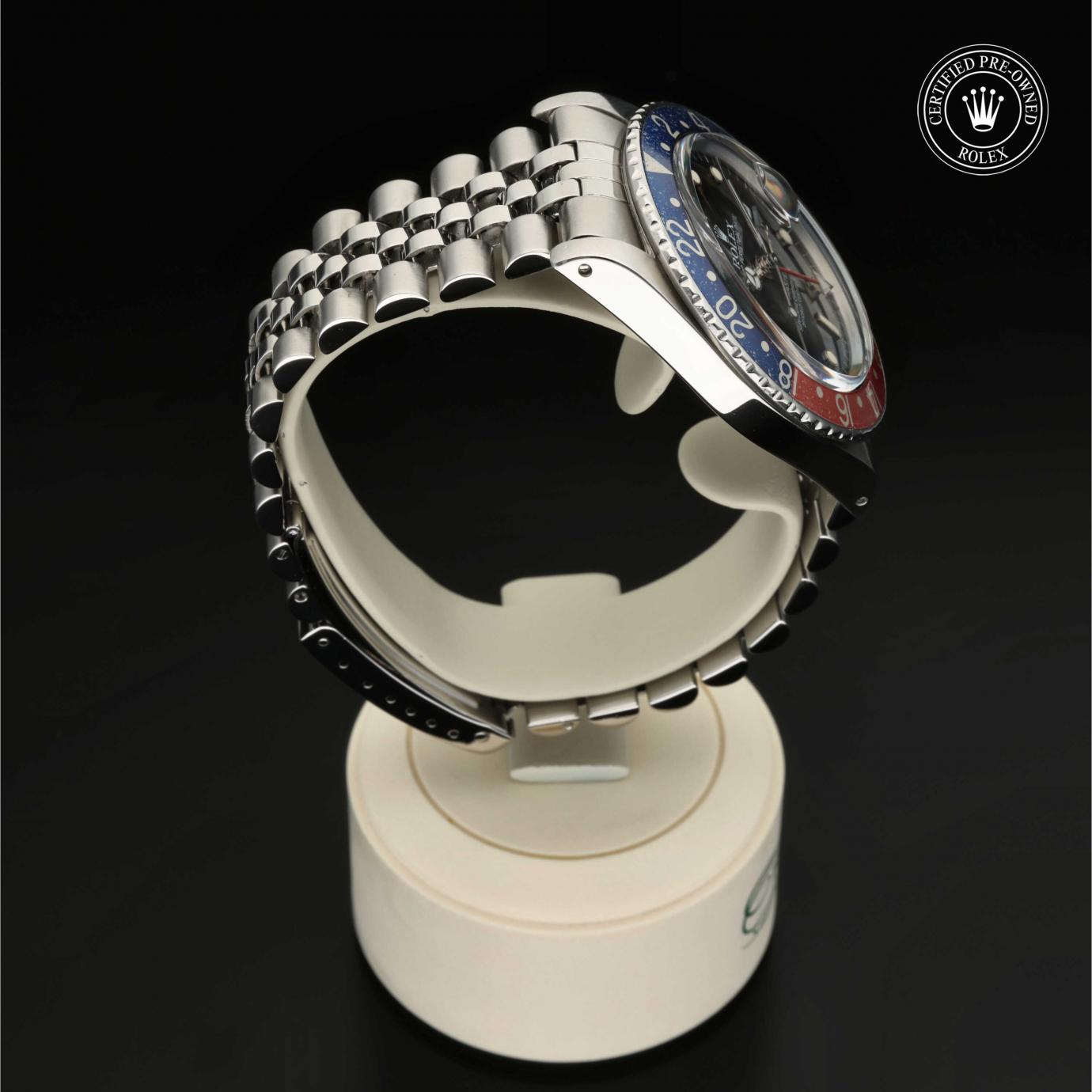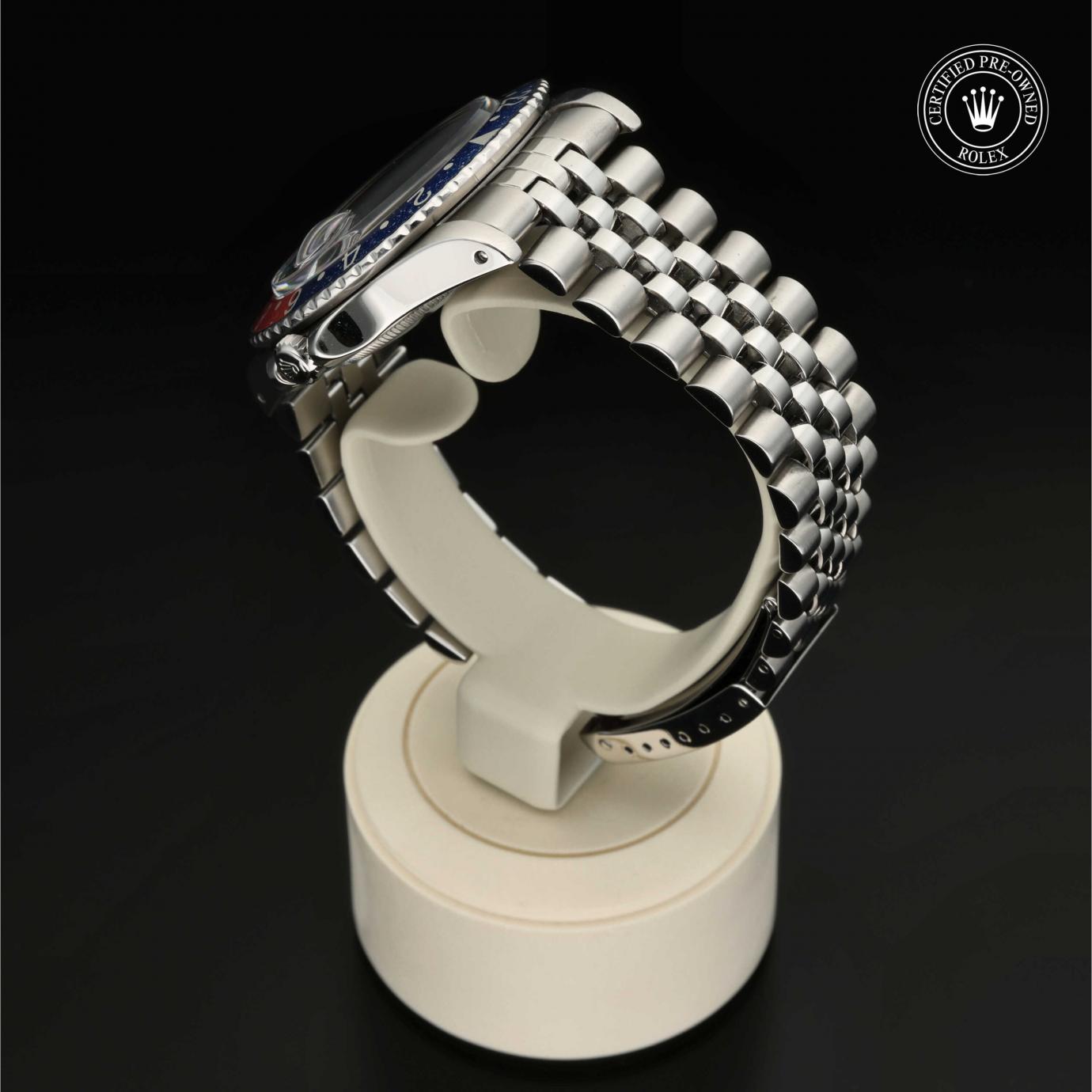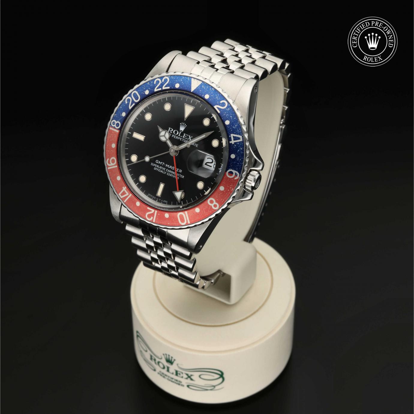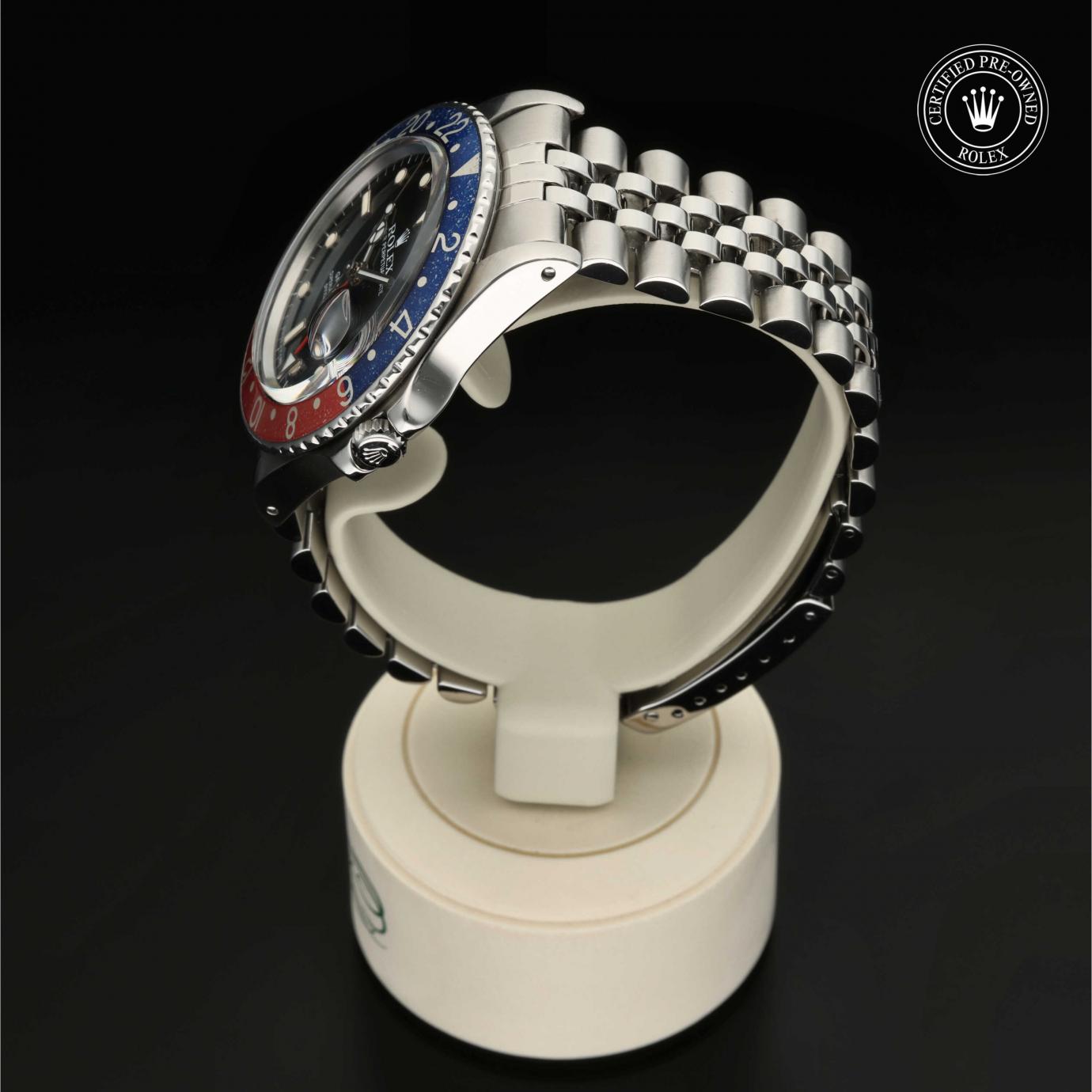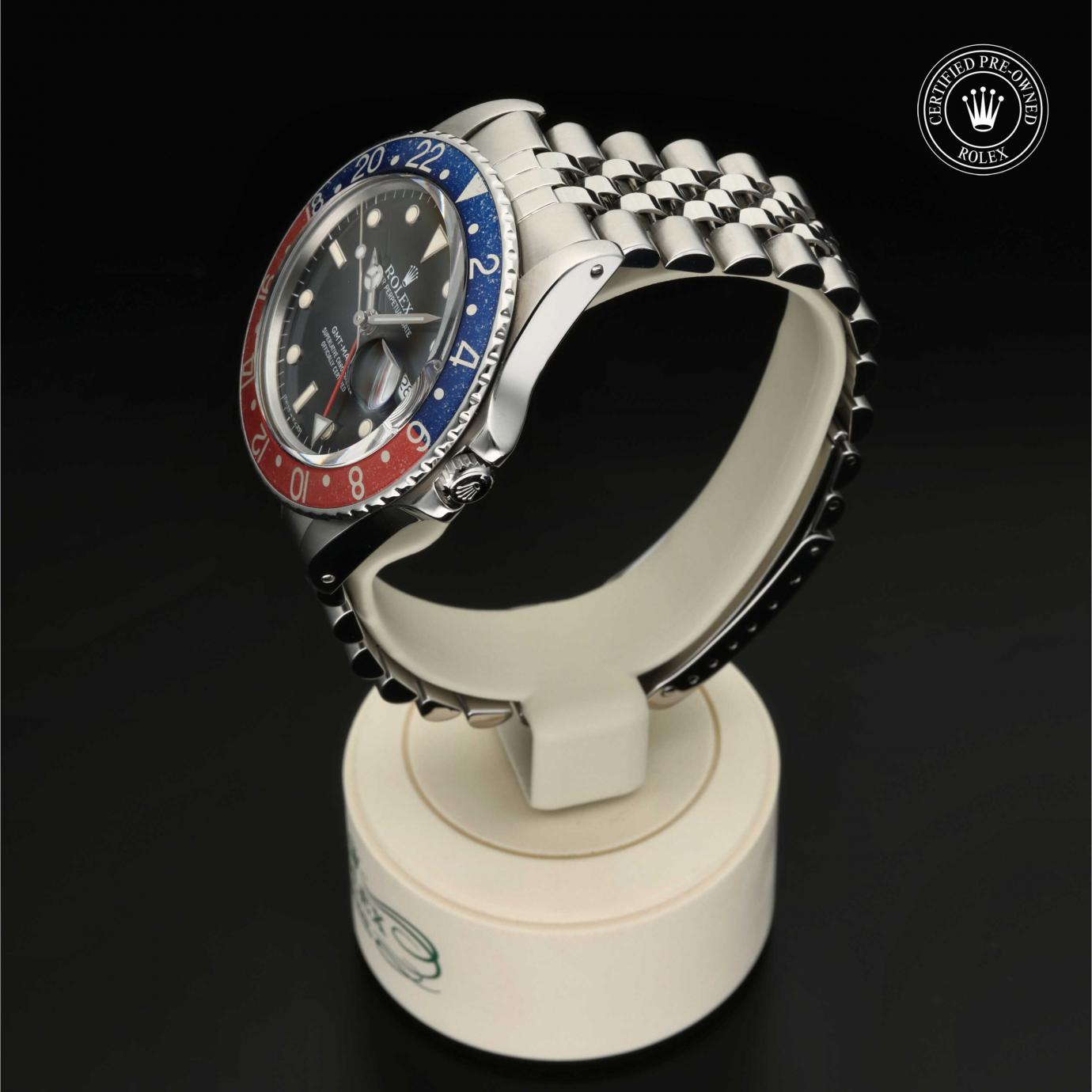 Die 1955 eingeführte GMT‑Master – ursprünglich als Navigationshilfe für Piloten konzipiert, die beruflich um die Welt reisen – wurde entworfen, um die Zeit in zwei Zeitzonen gleichzeitig anzuzeigen.