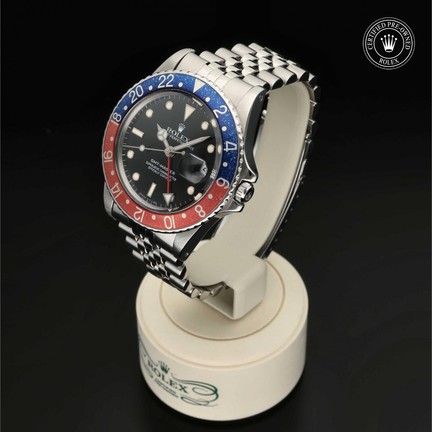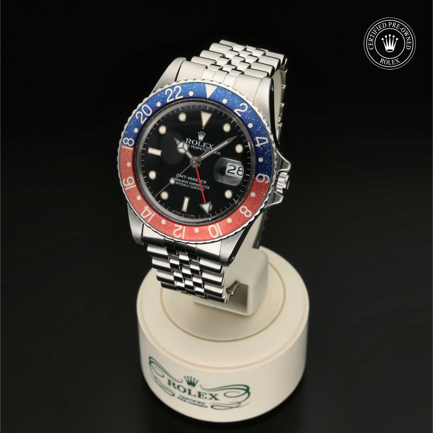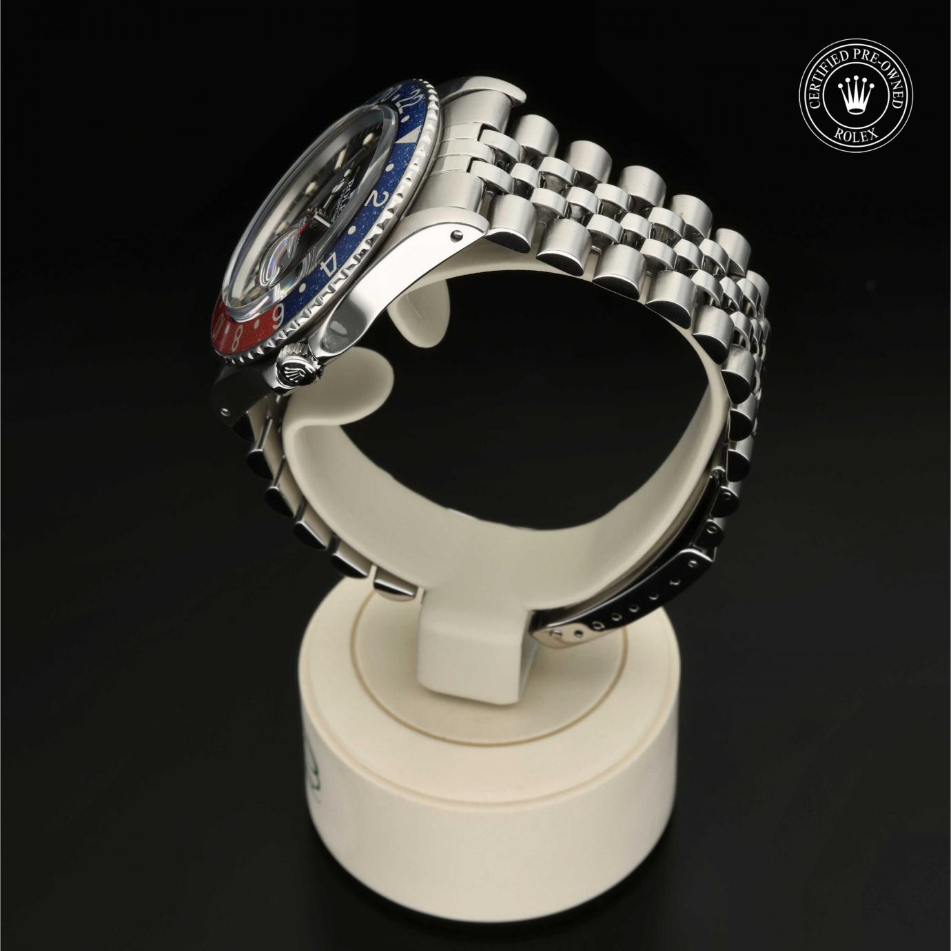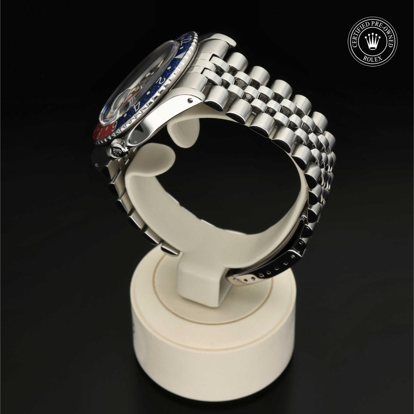 Die 1955 eingeführte GMT‑Master – ursprünglich als Navigationshilfe für Piloten konzipiert, die beruflich um die Welt reisen – wurde entworfen, um die Zeit in zwei Zeitzonen gleichzeitig anzuzeigen.