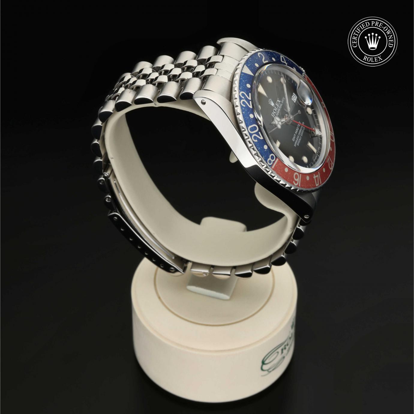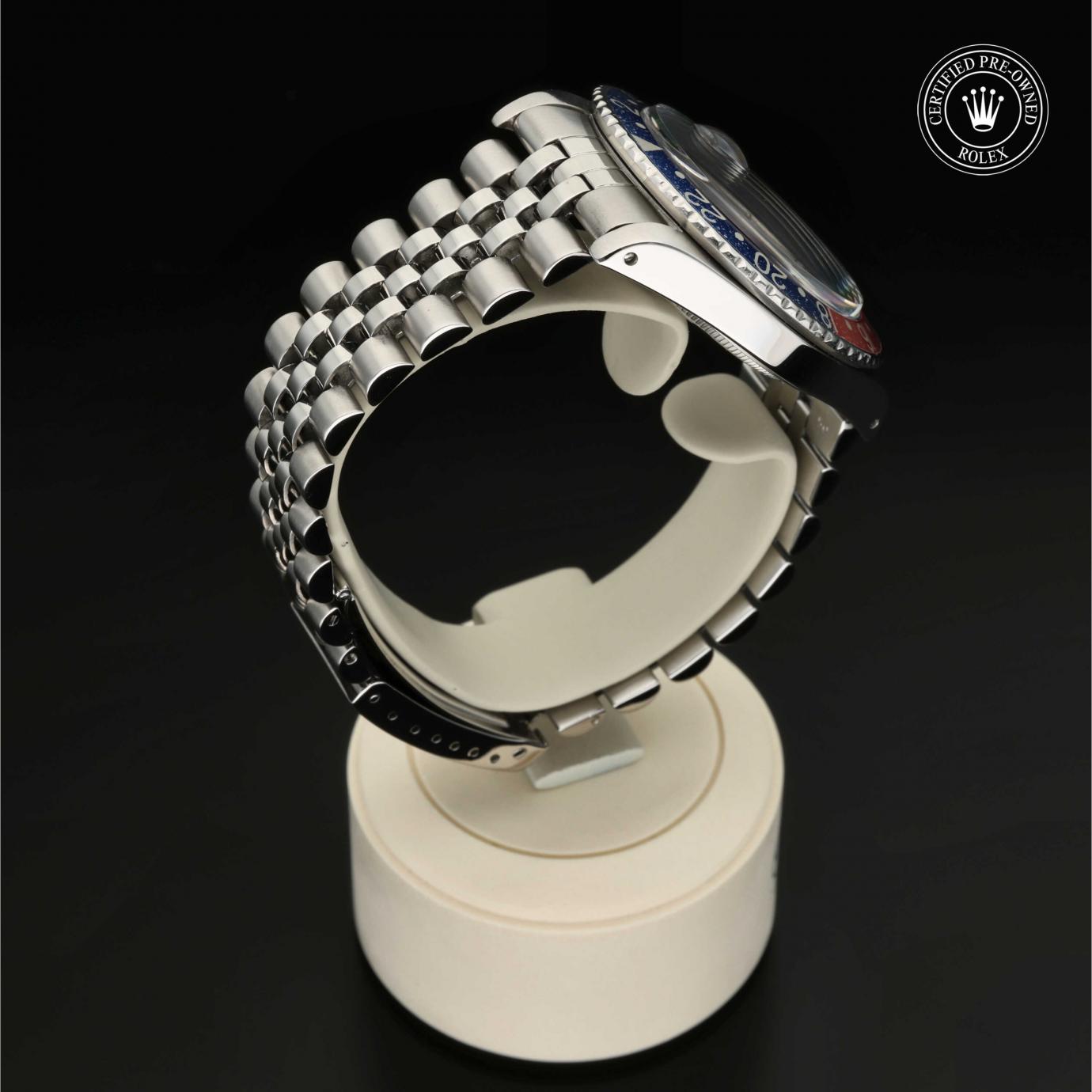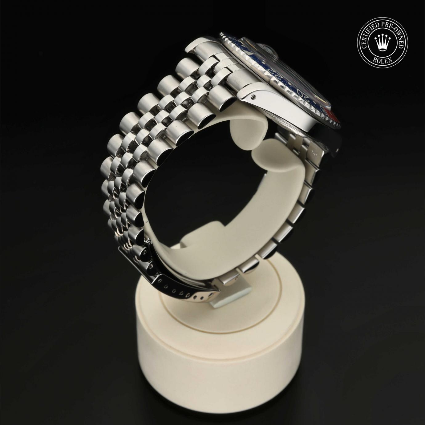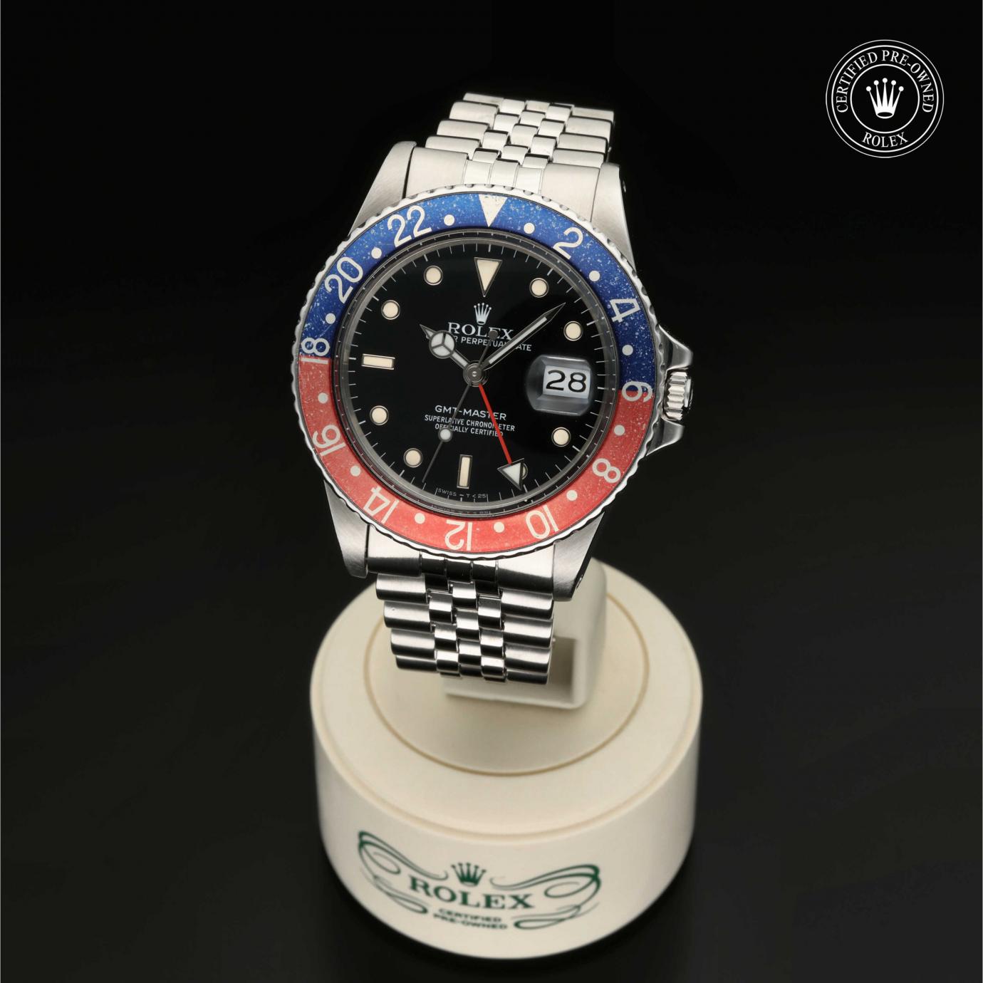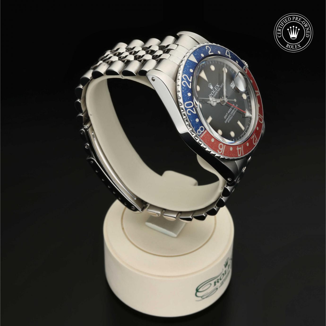 Die 1955 eingeführte GMT‑Master – ursprünglich als Navigationshilfe für Piloten konzipiert, die beruflich um die Welt reisen – wurde entworfen, um die Zeit in zwei Zeitzonen gleichzeitig anzuzeigen.