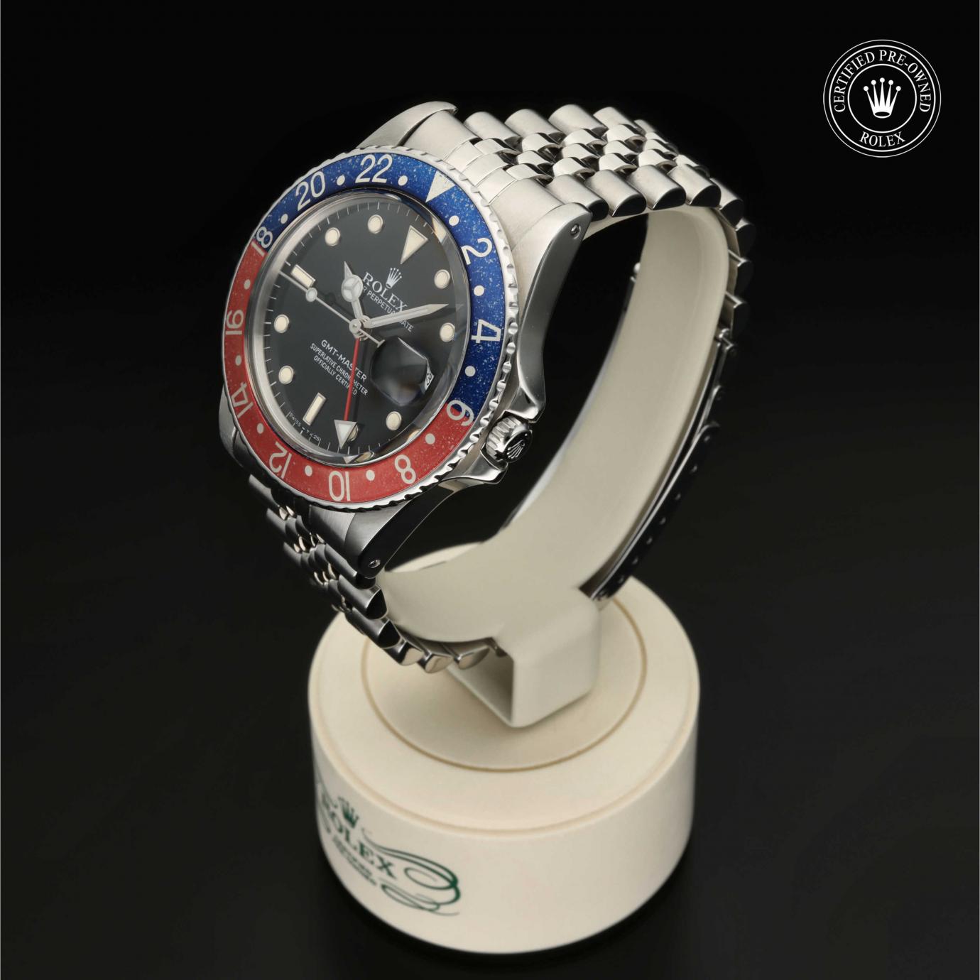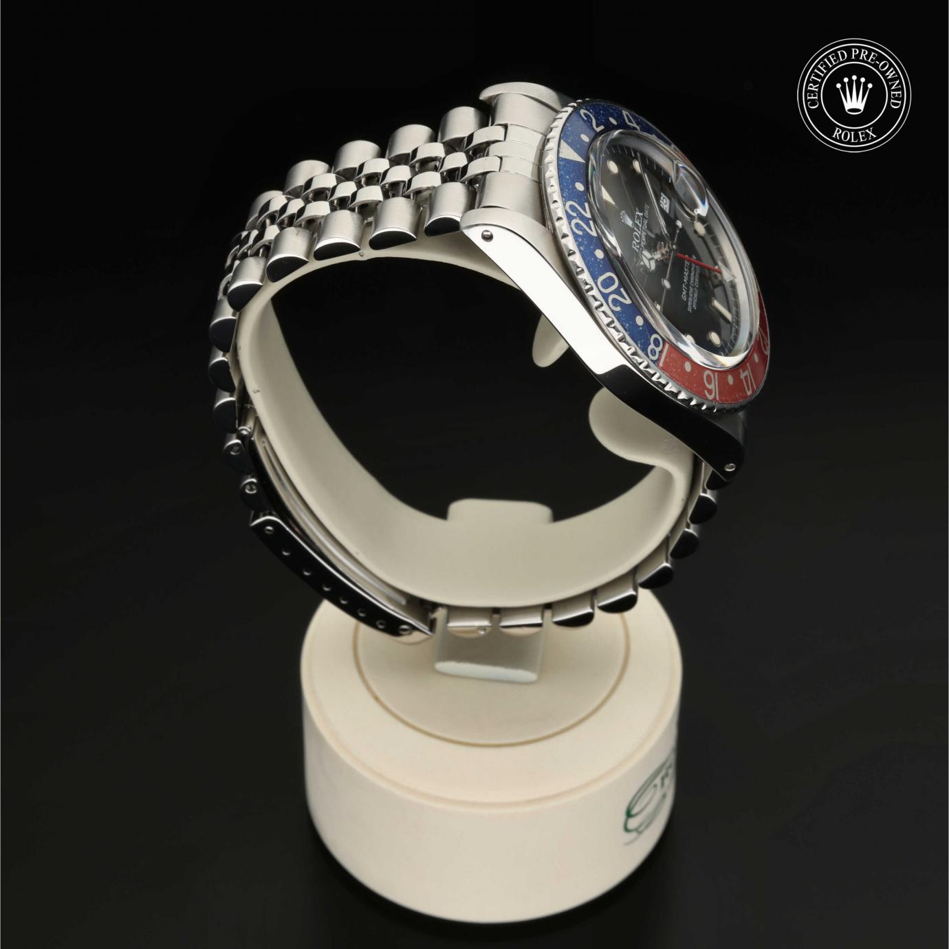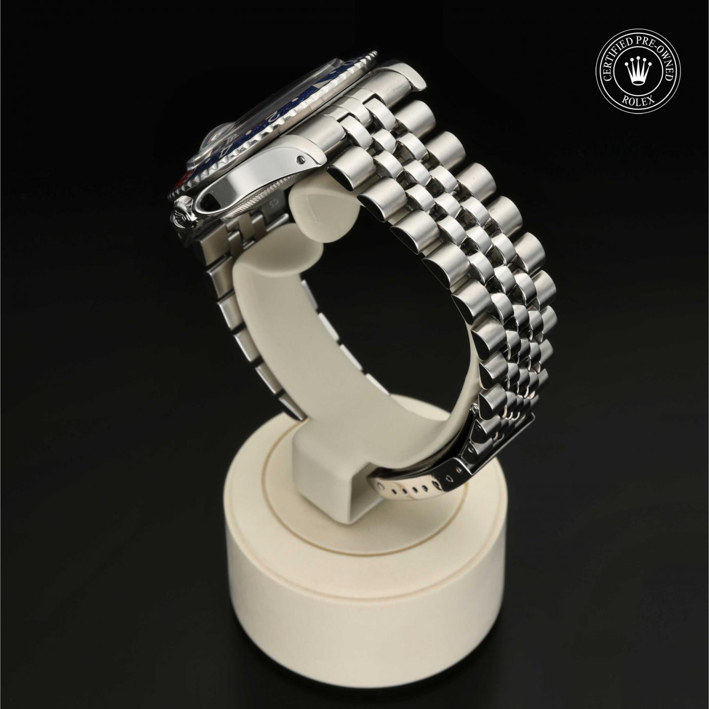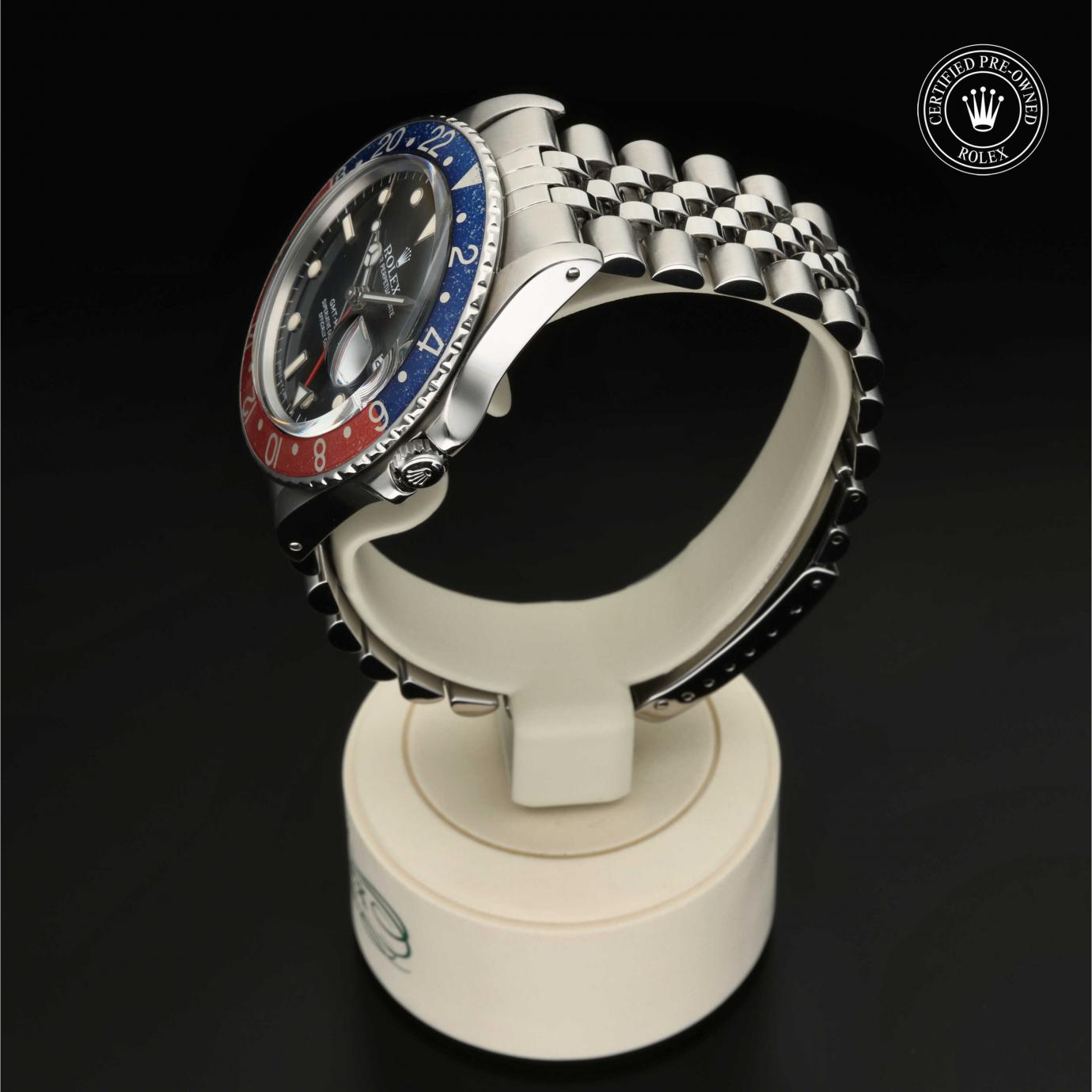 Die 1955 eingeführte GMT‑Master – ursprünglich als Navigationshilfe für Piloten konzipiert, die beruflich um die Welt reisen – wurde entworfen, um die Zeit in zwei Zeitzonen gleichzeitig anzuzeigen.