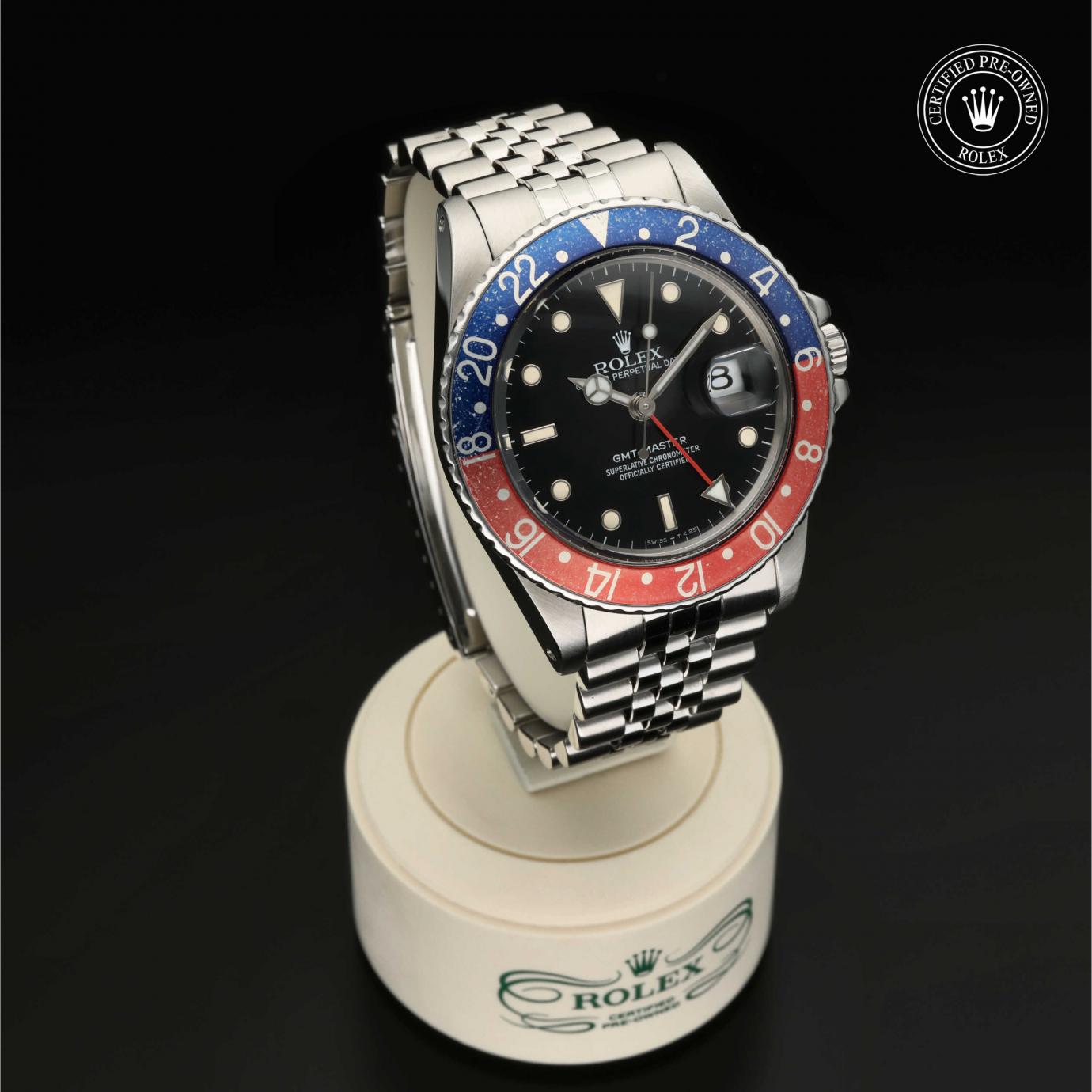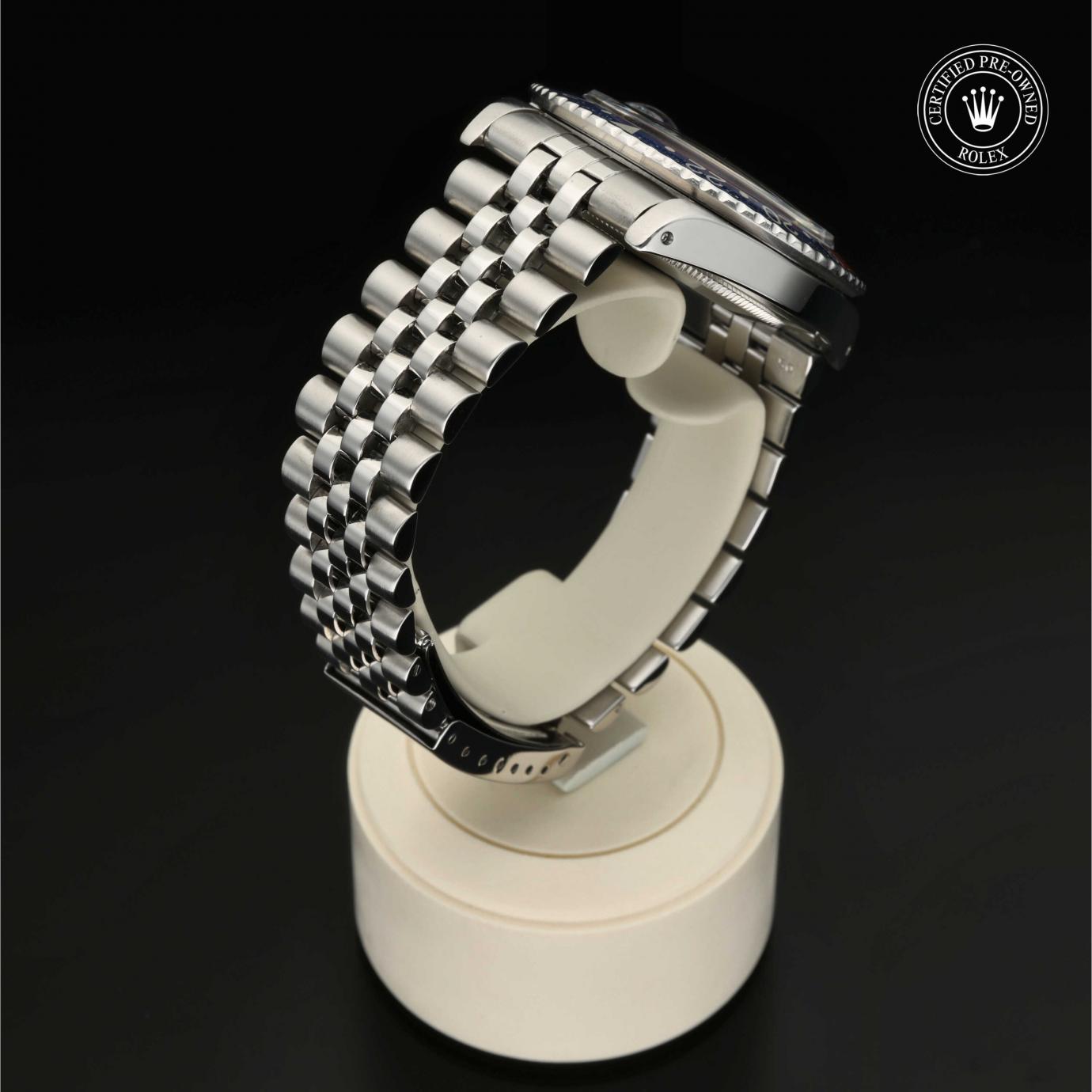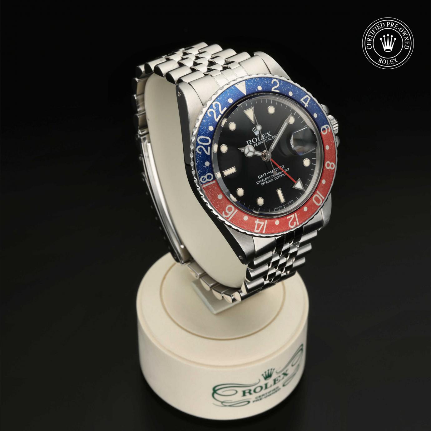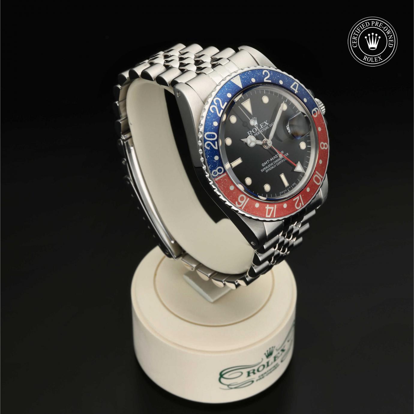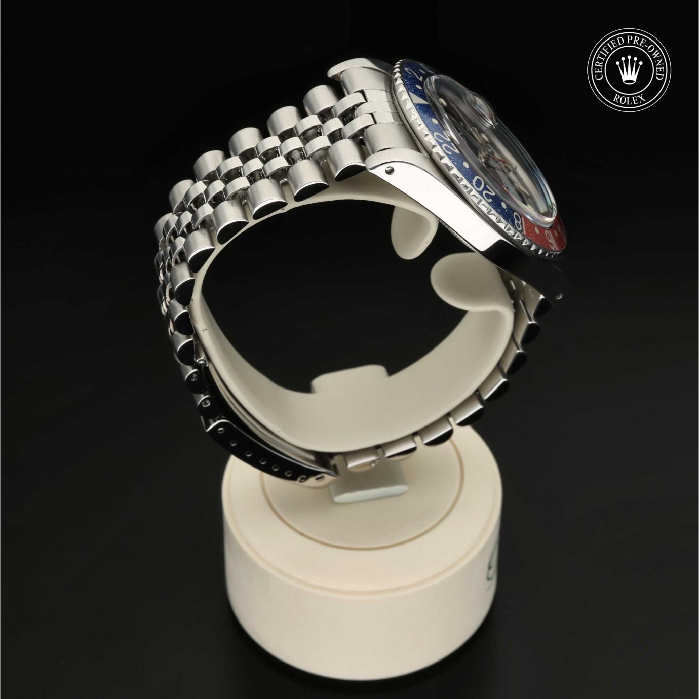Die 1955 eingeführte GMT‑Master – ursprünglich als Navigationshilfe für Piloten konzipiert, die beruflich um die Welt reisen – wurde entworfen, um die Zeit in zwei Zeitzonen gleichzeitig anzuzeigen.
