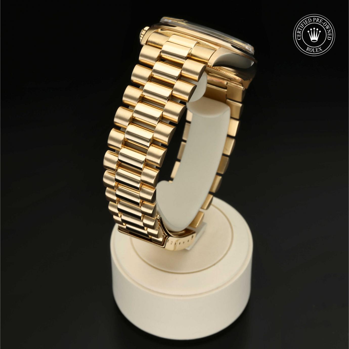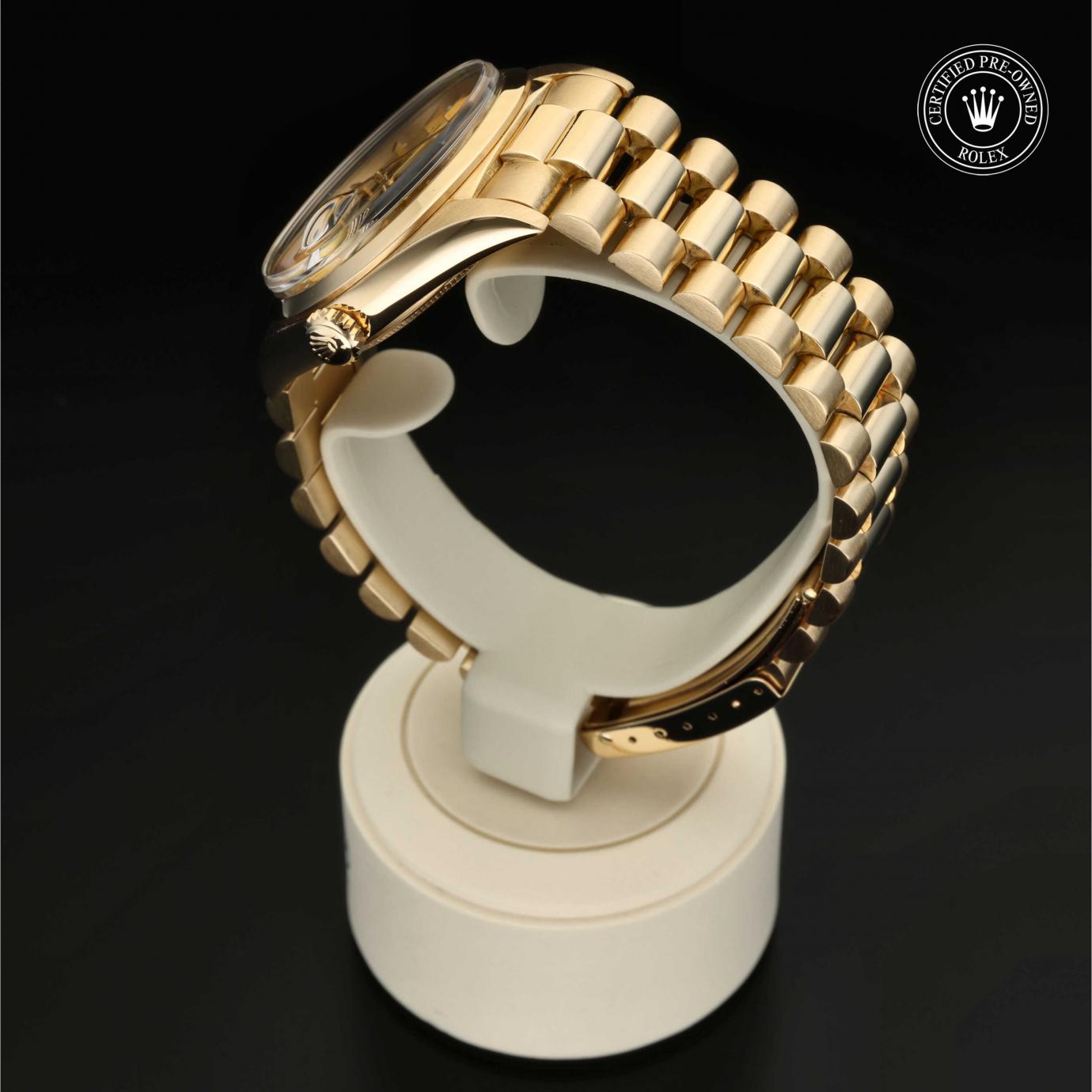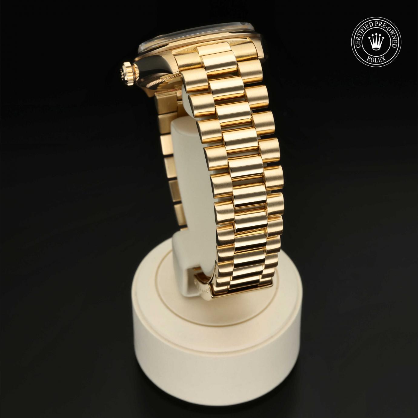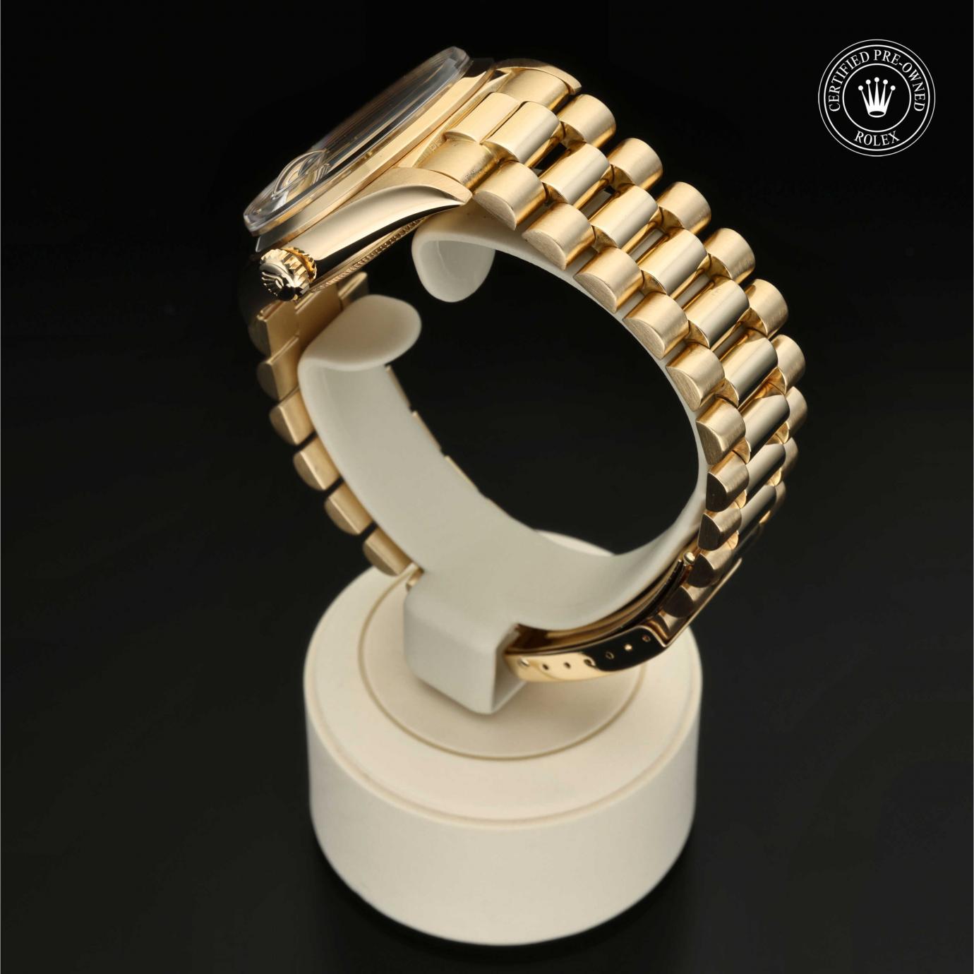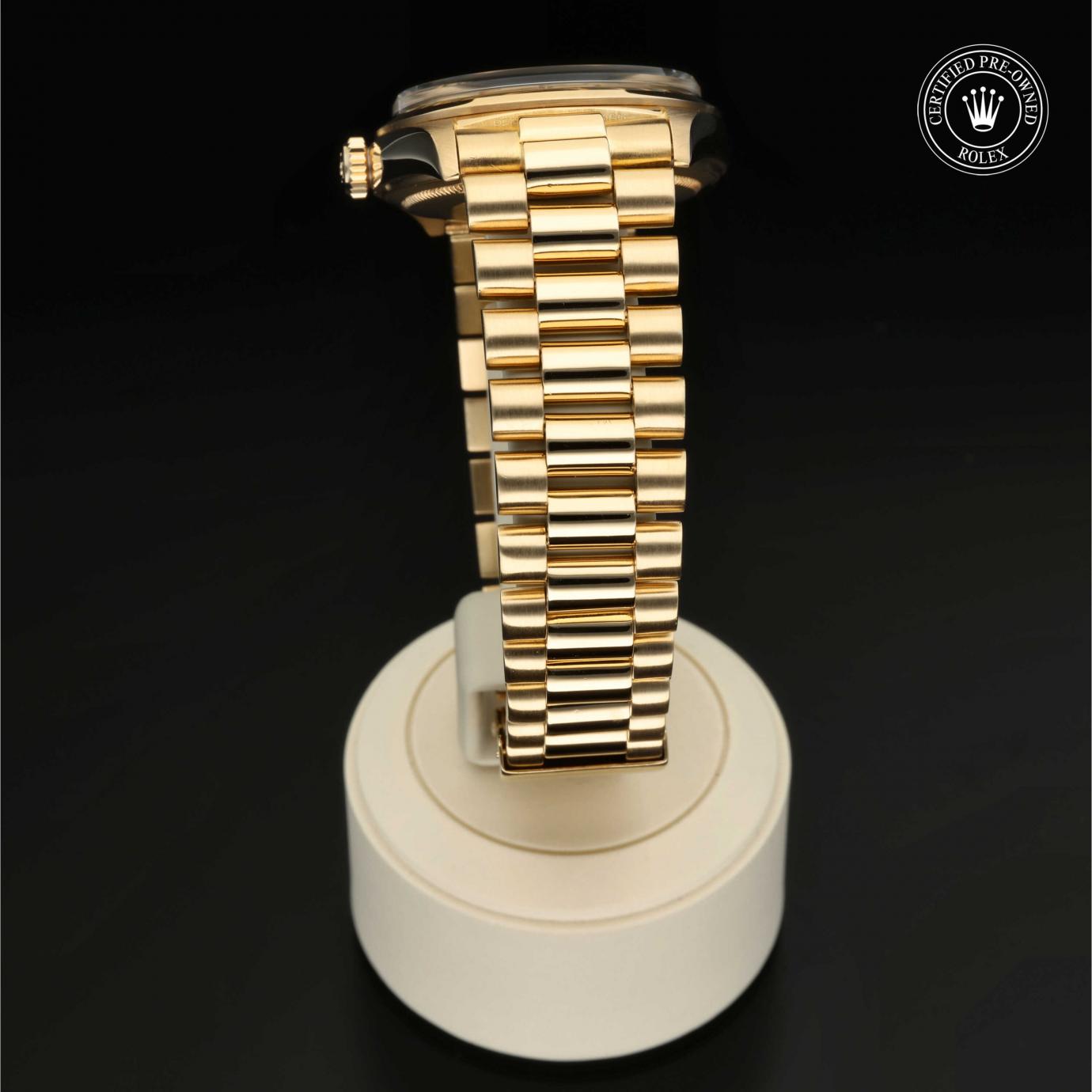 Die Oyster Perpetual Day‑Date ist ausschließlich in 18 Karat Gold oder Platin 950 erhältlich und verkörpert das Prestige und die Exzellenz von Rolex.