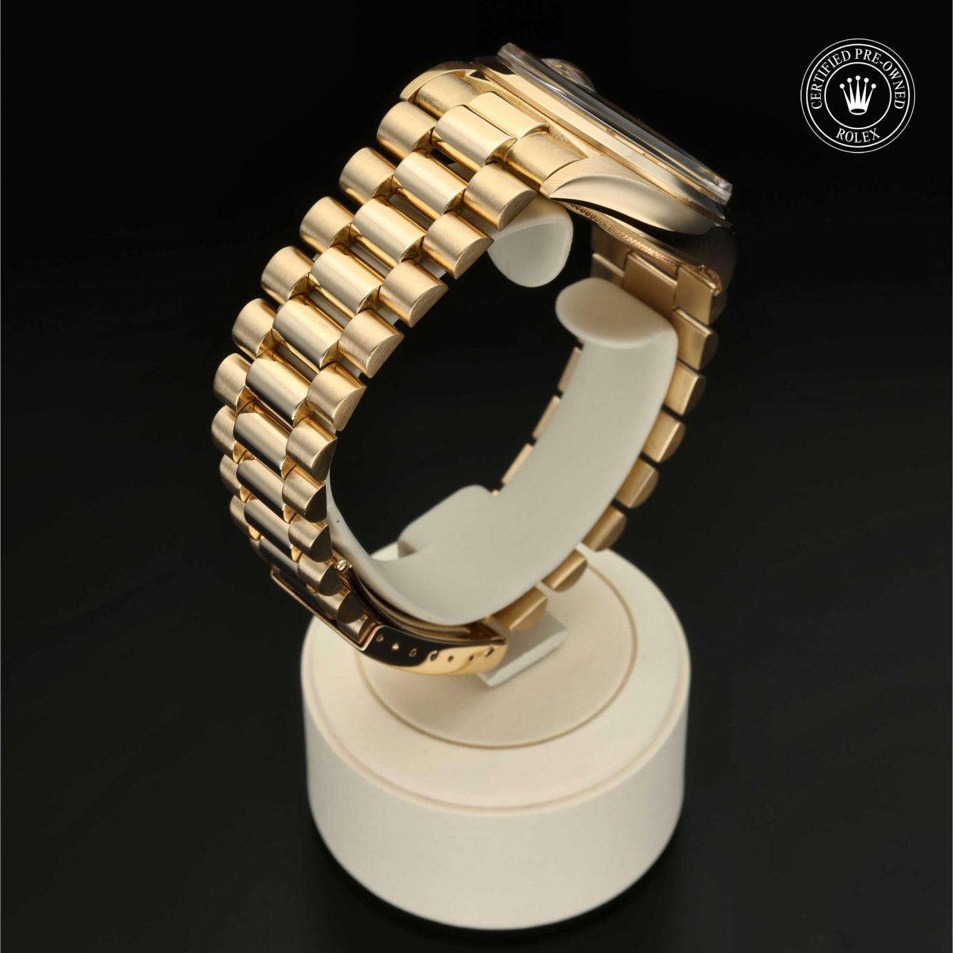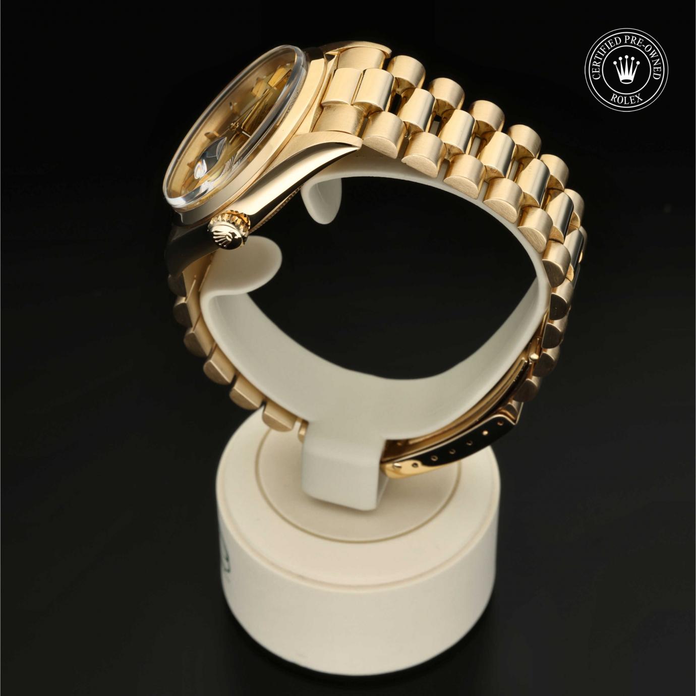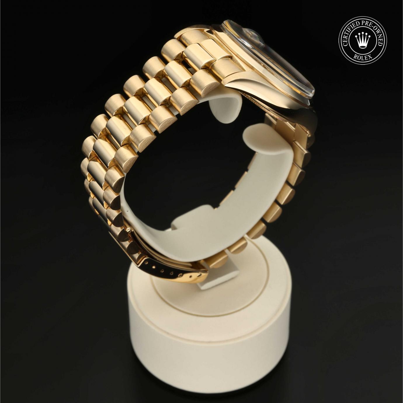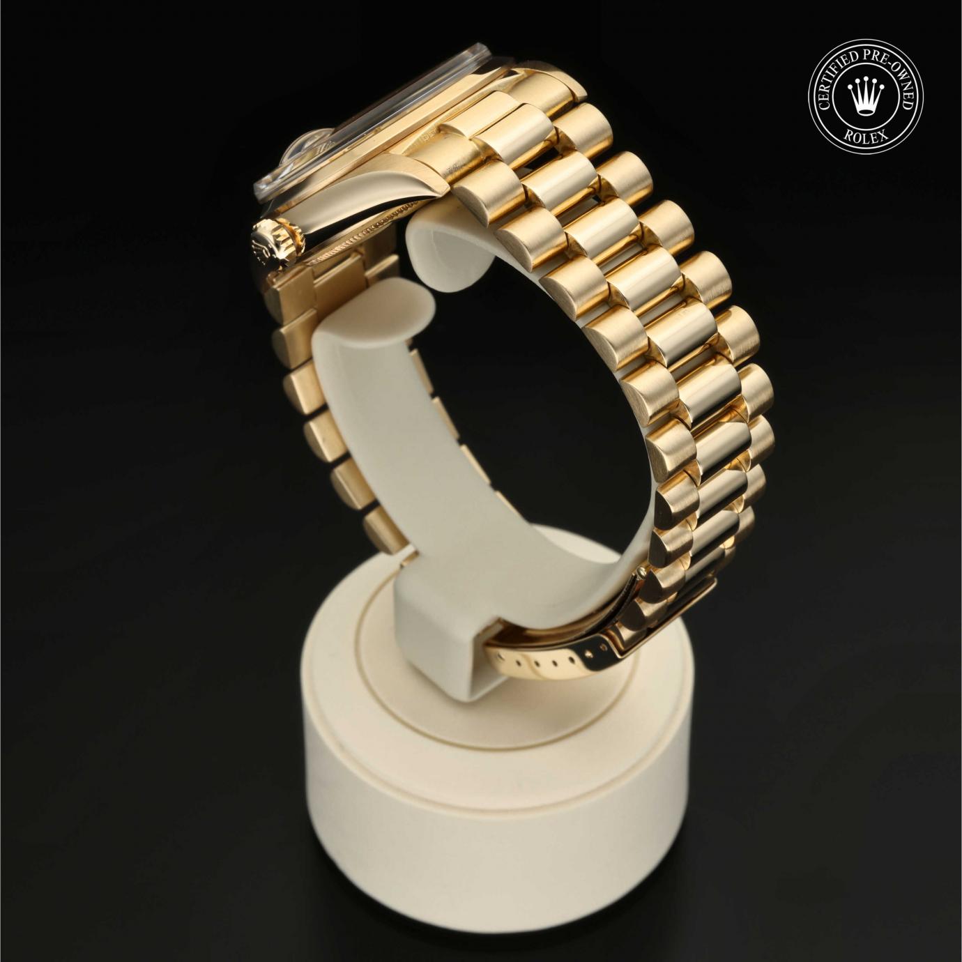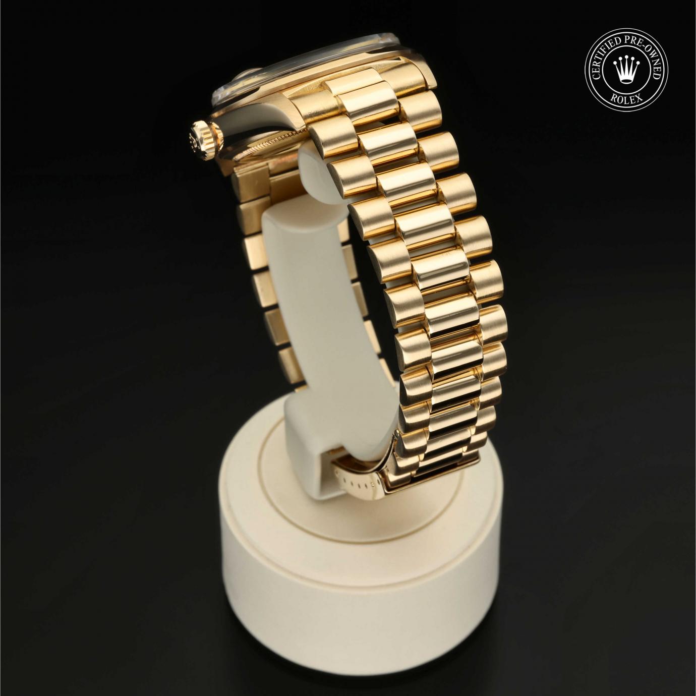 Die Oyster Perpetual Day‑Date ist ausschließlich in 18 Karat Gold oder Platin 950 erhältlich und verkörpert das Prestige und die Exzellenz von Rolex.