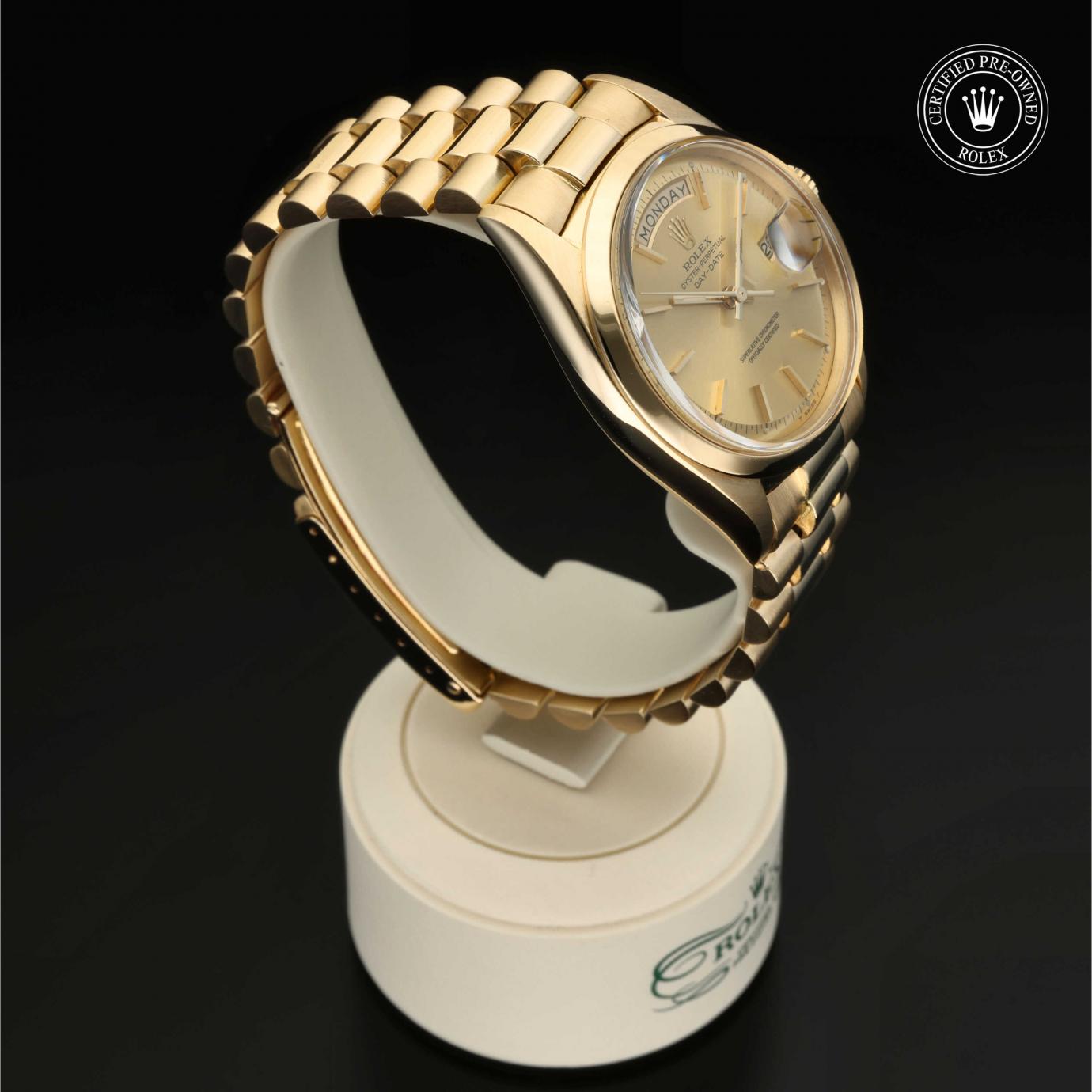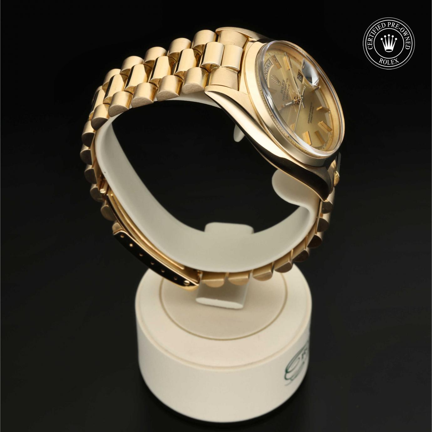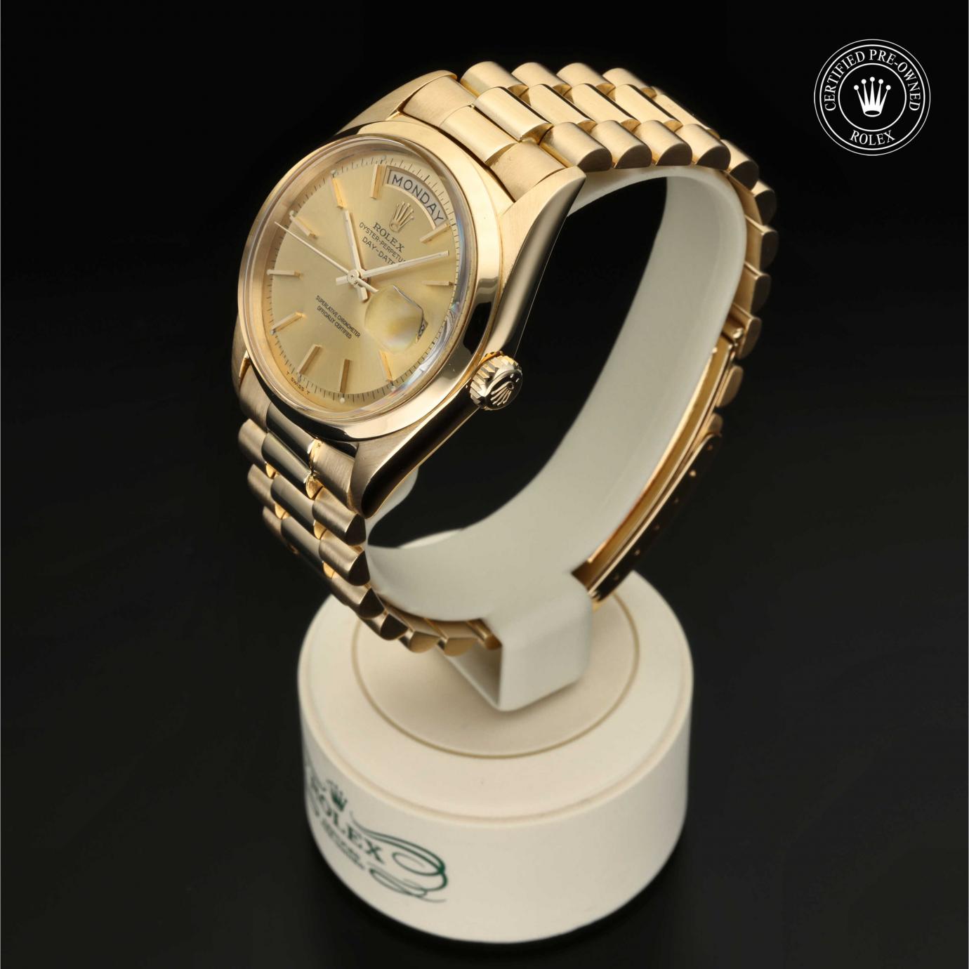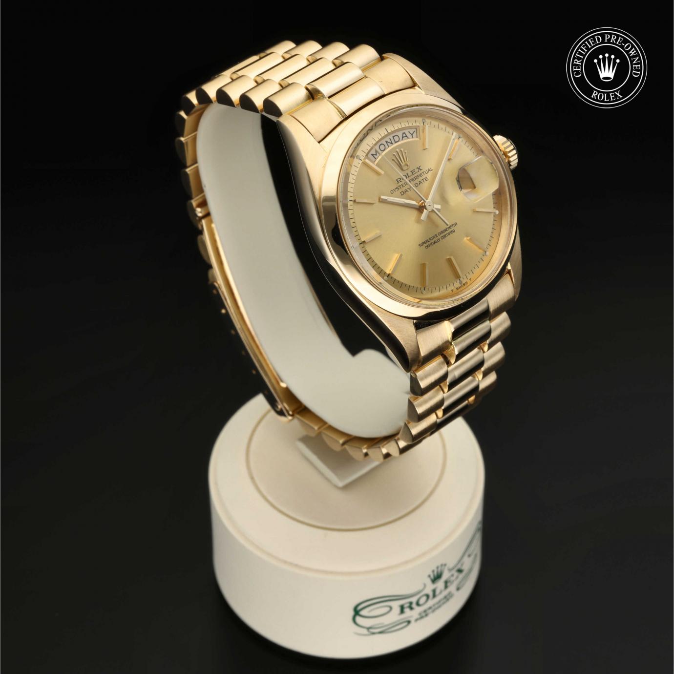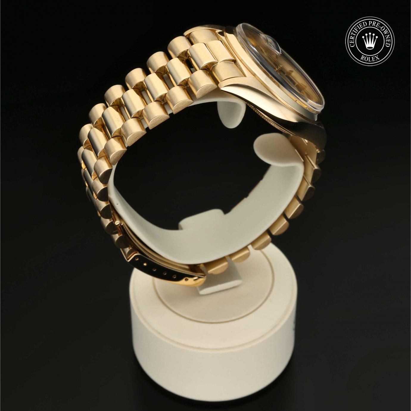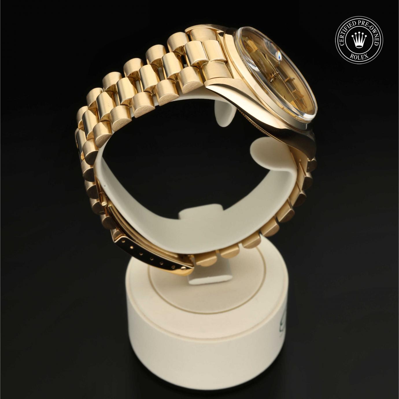 Die Oyster Perpetual Day‑Date ist ausschließlich in 18 Karat Gold oder Platin 950 erhältlich und verkörpert das Prestige und die Exzellenz von Rolex.