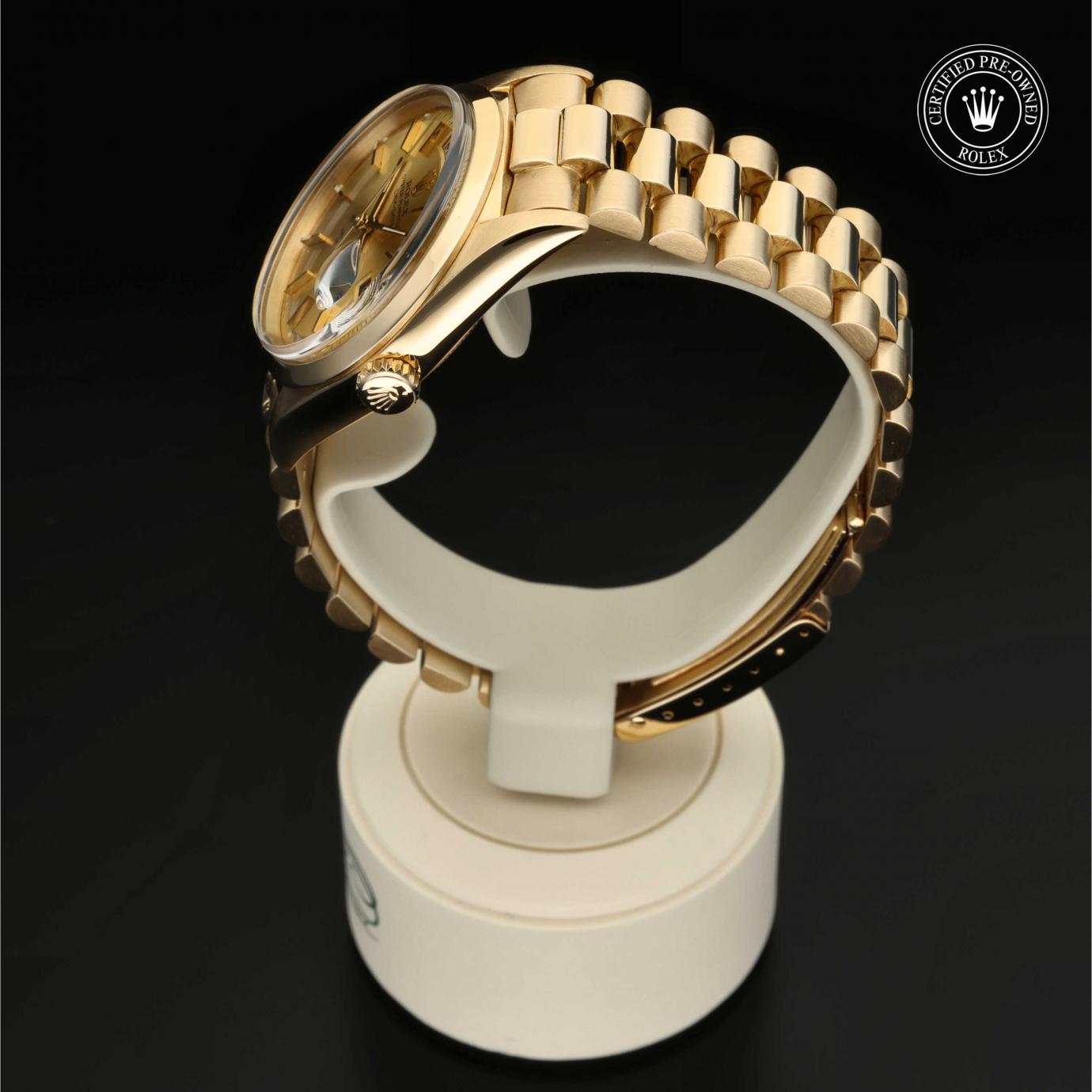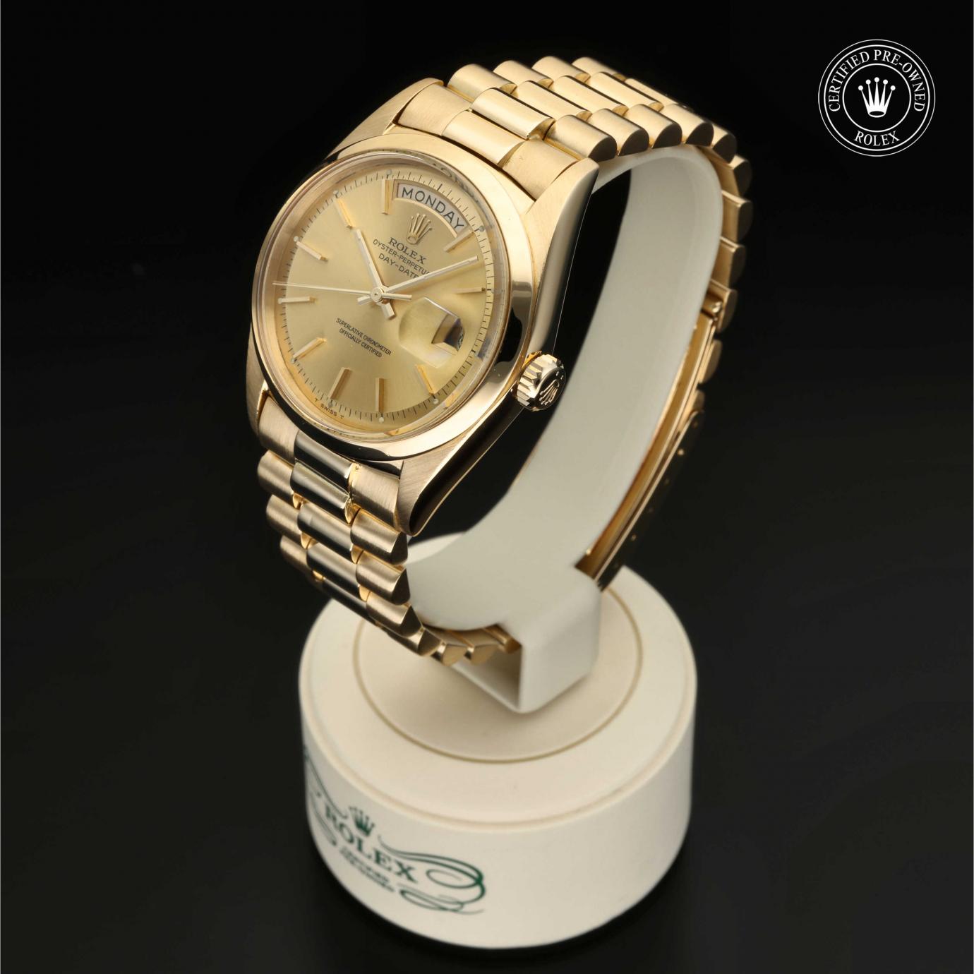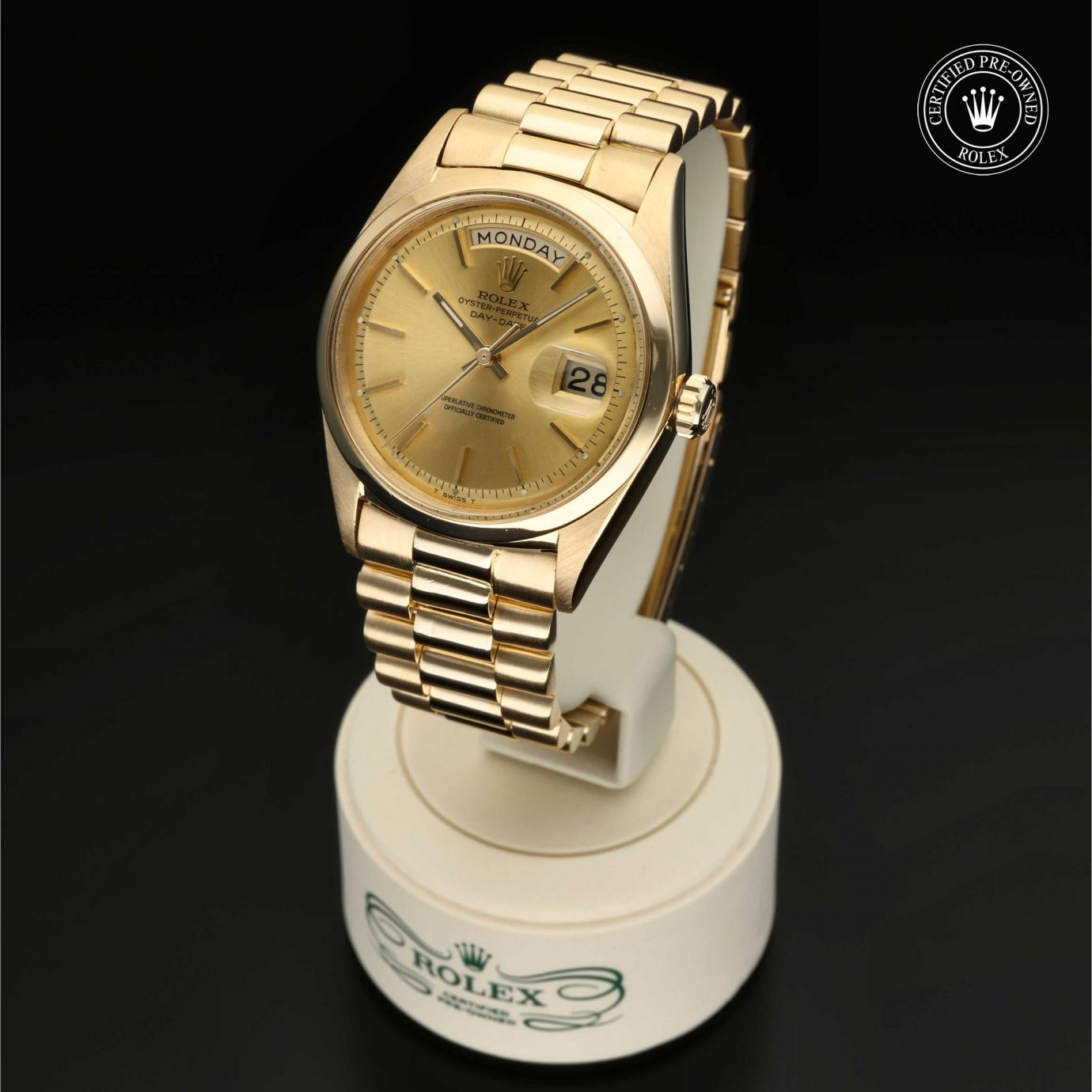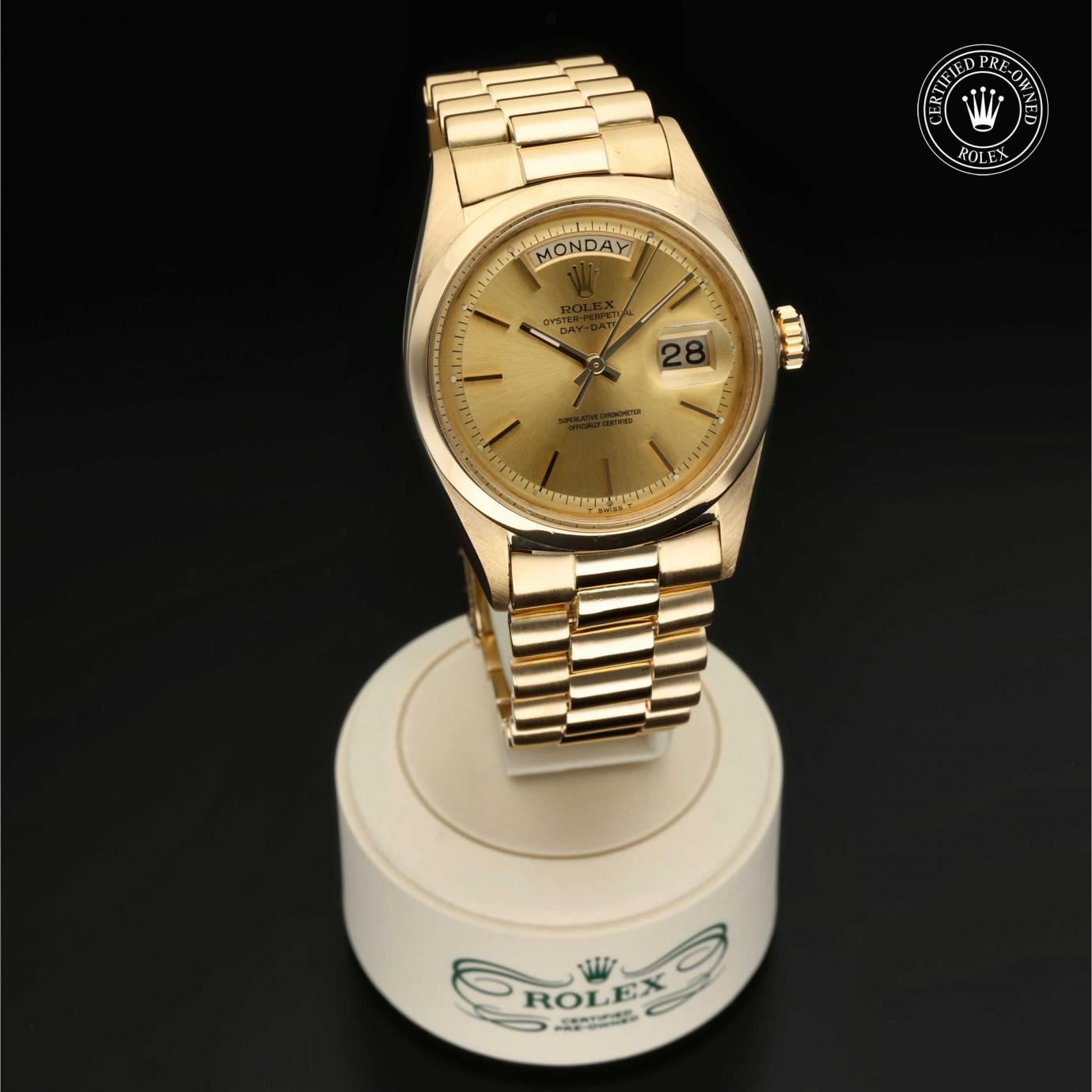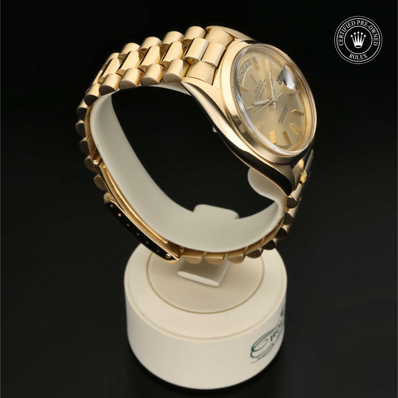 Die Oyster Perpetual Day‑Date ist ausschließlich in 18 Karat Gold oder Platin 950 erhältlich und verkörpert das Prestige und die Exzellenz von Rolex.