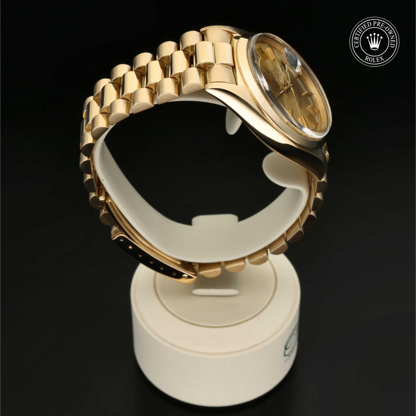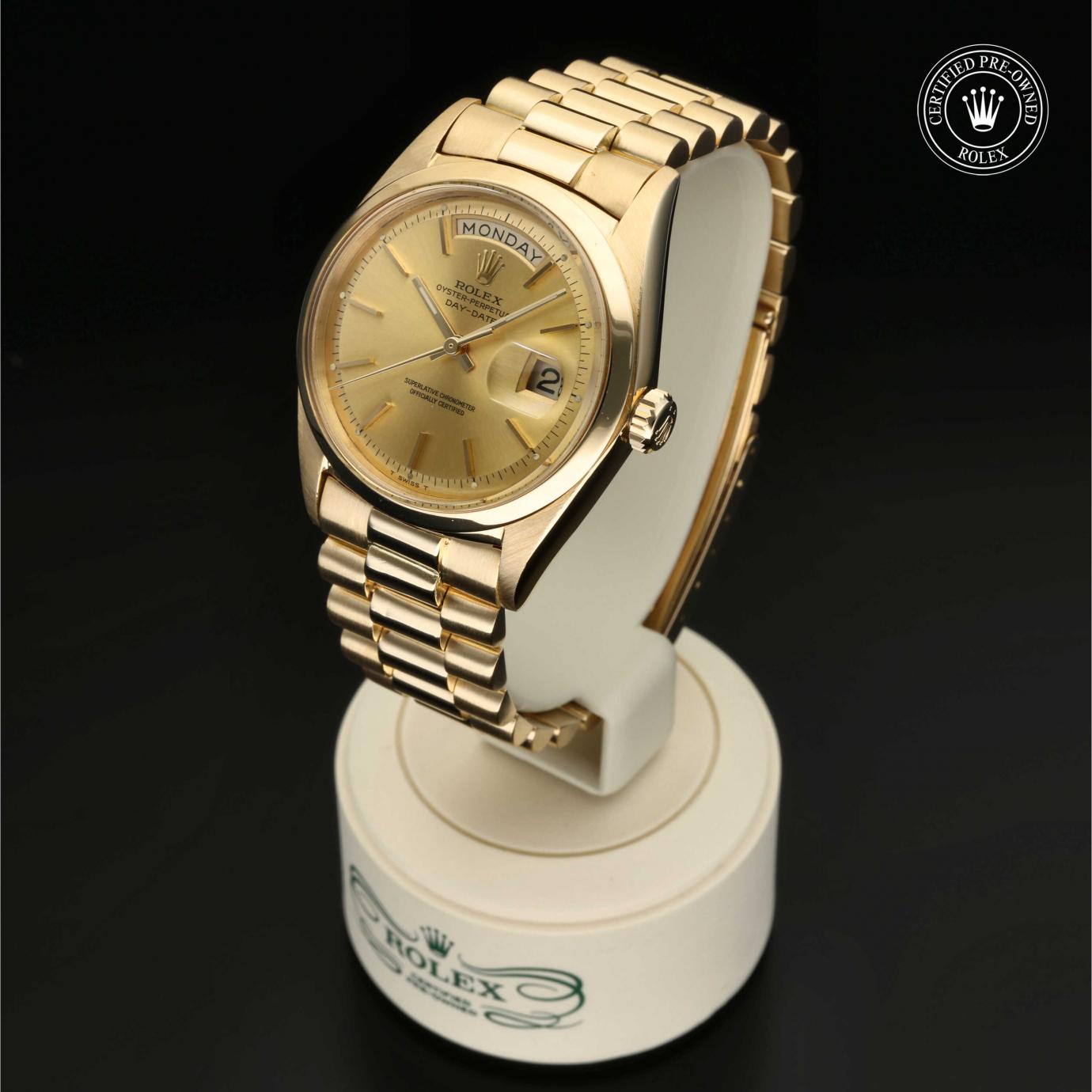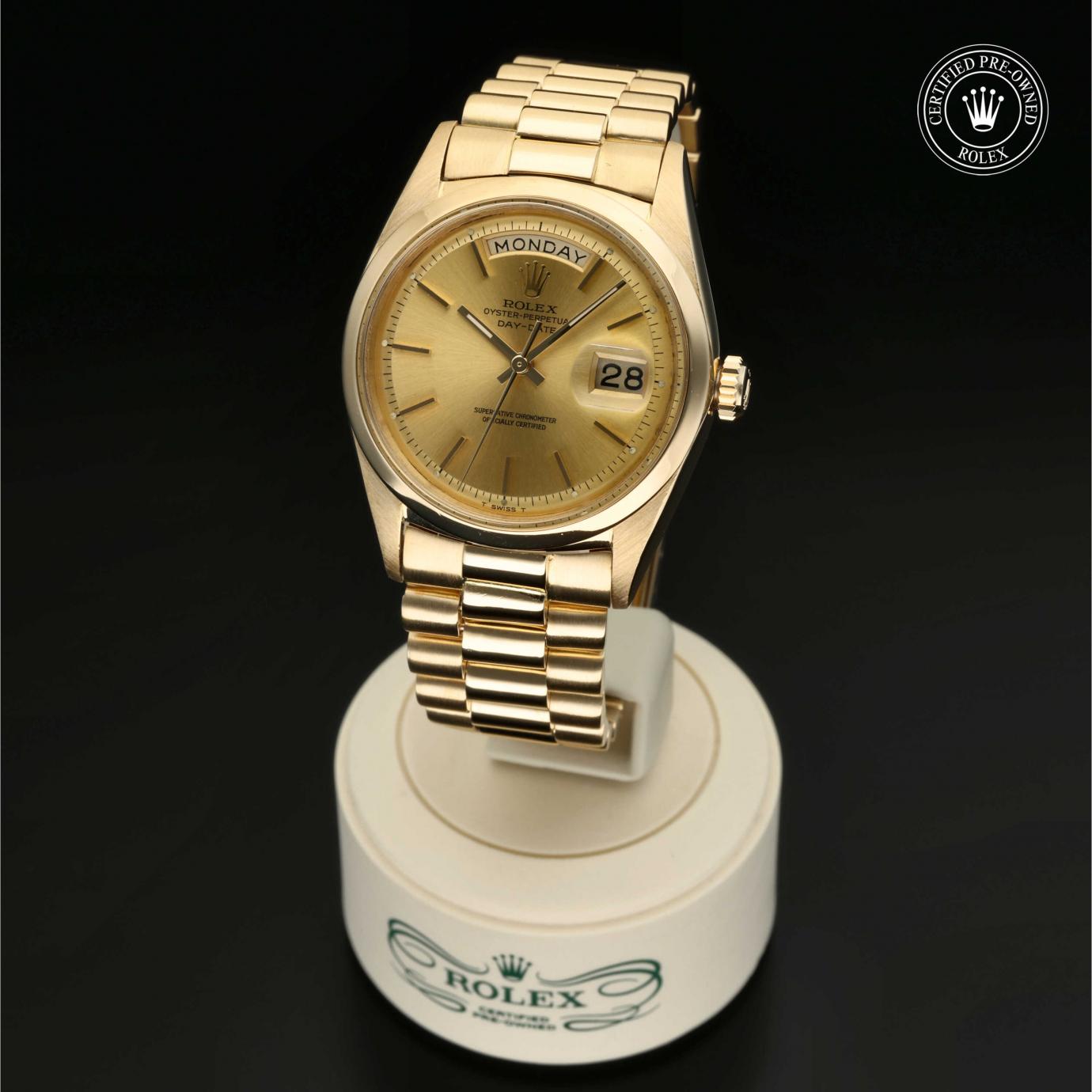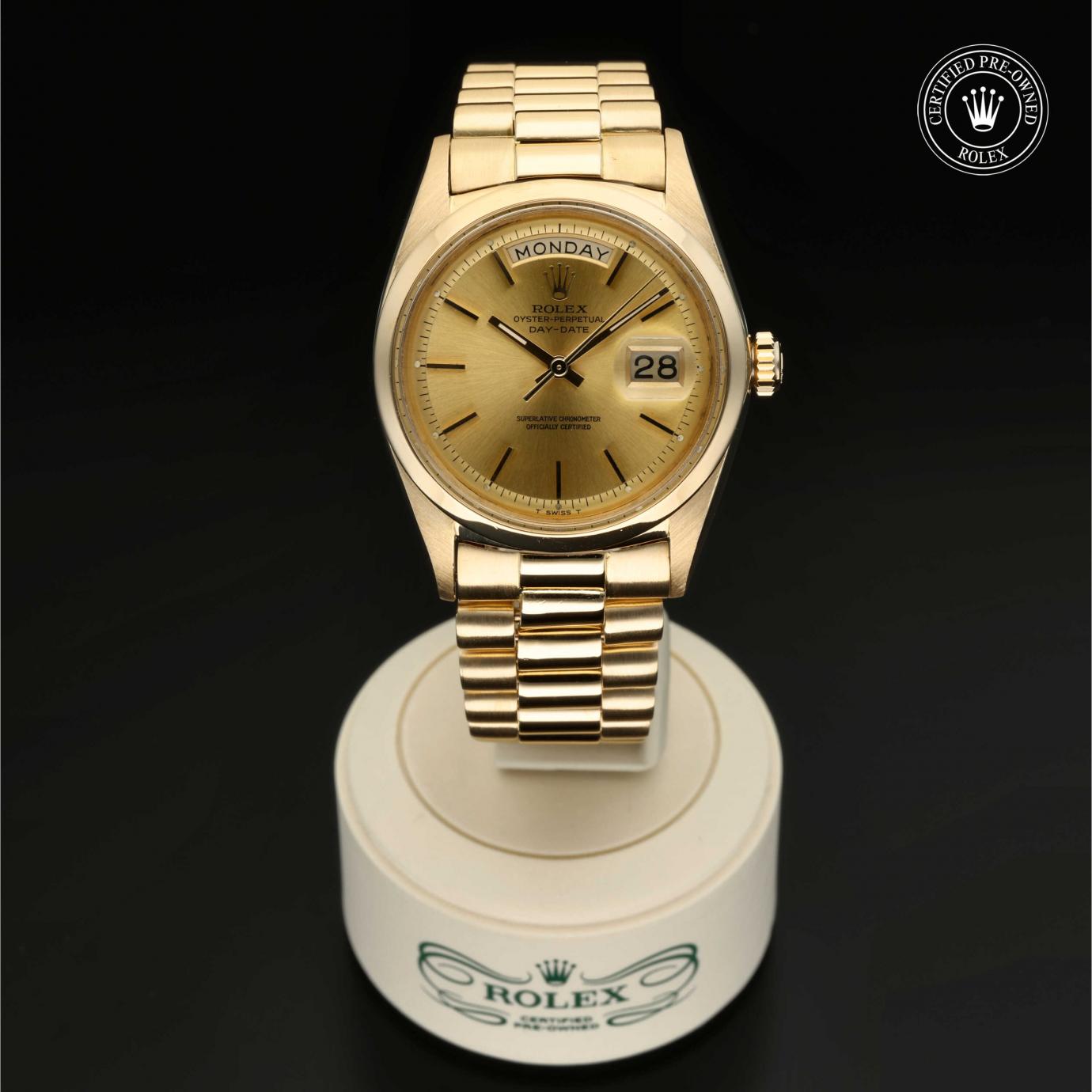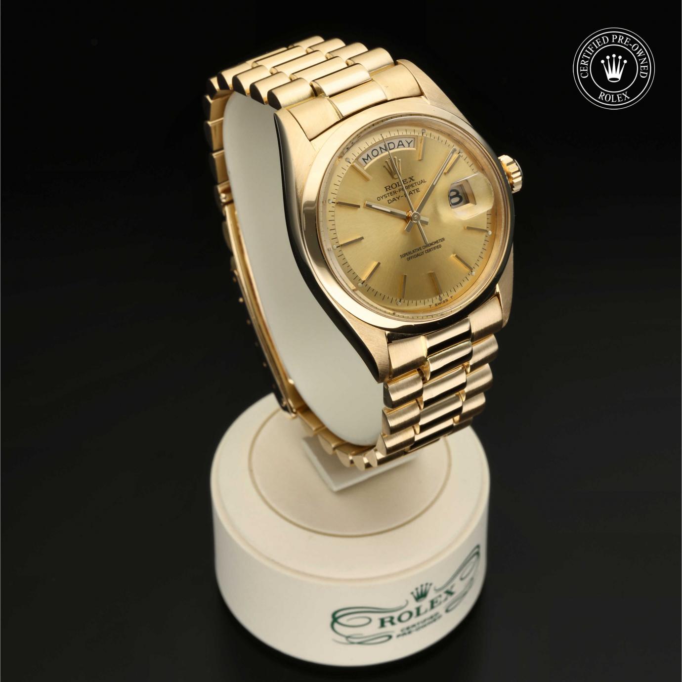 Die Oyster Perpetual Day‑Date ist ausschließlich in 18 Karat Gold oder Platin 950 erhältlich und verkörpert das Prestige und die Exzellenz von Rolex.