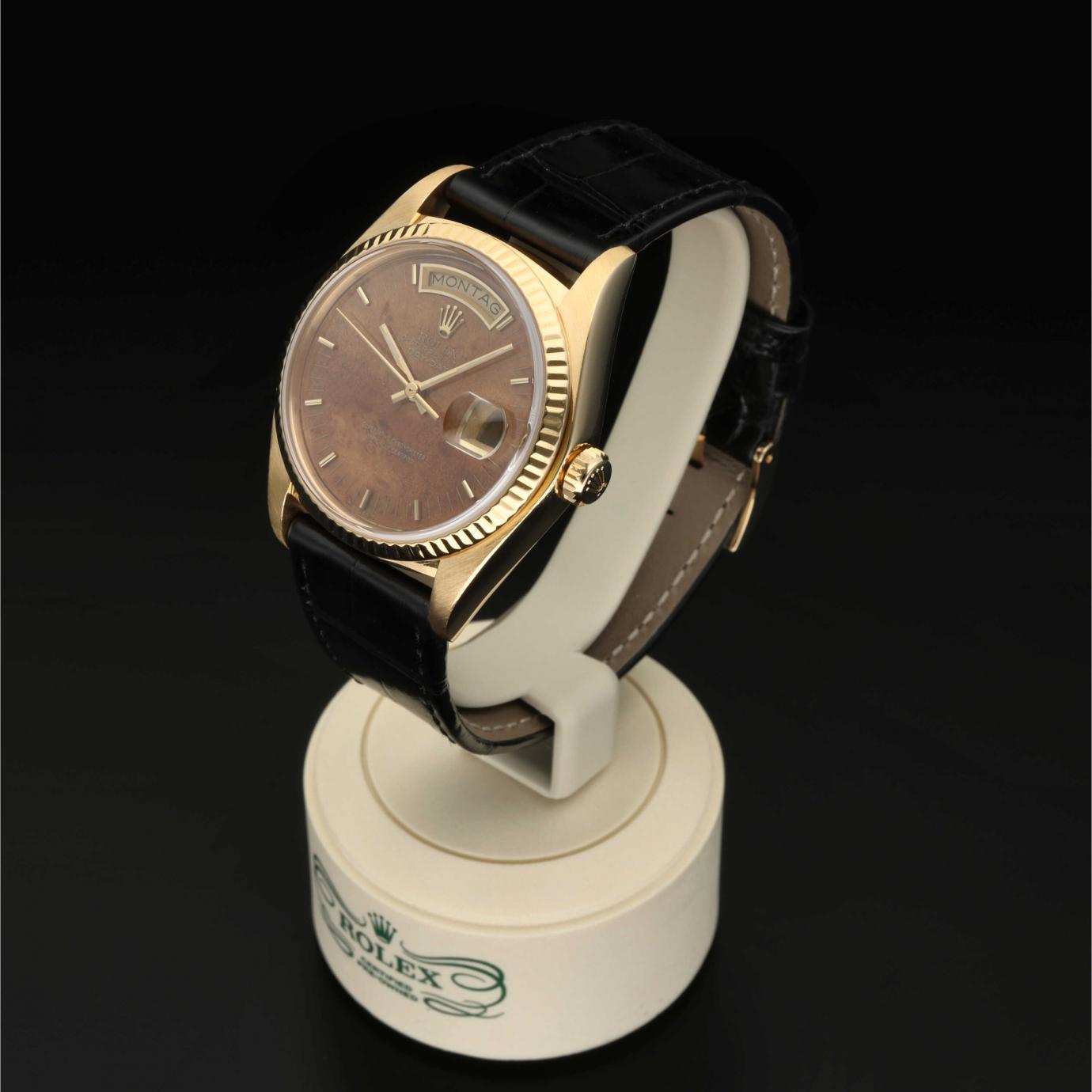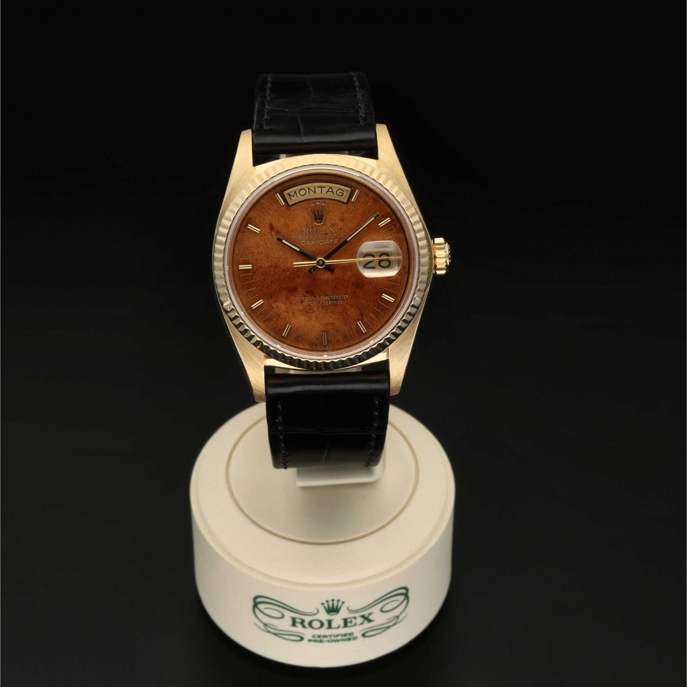 Die Oyster Perpetual Day‑Date ist ausschließlich in 18 Karat Gold oder Platin 950 erhältlich und verkörpert das Prestige und die Exzellenz von Rolex.