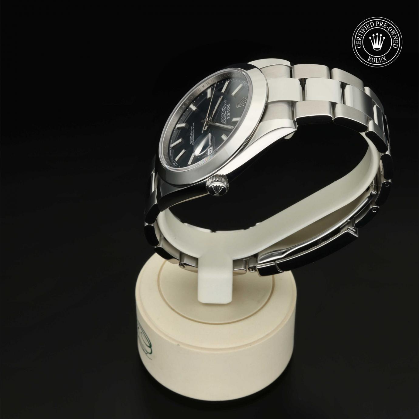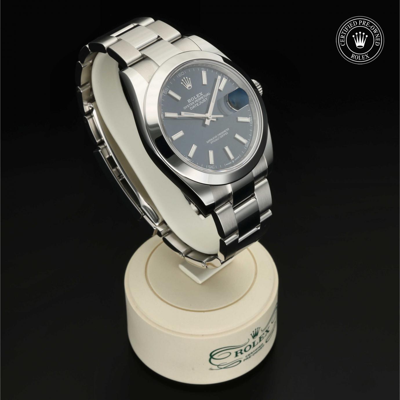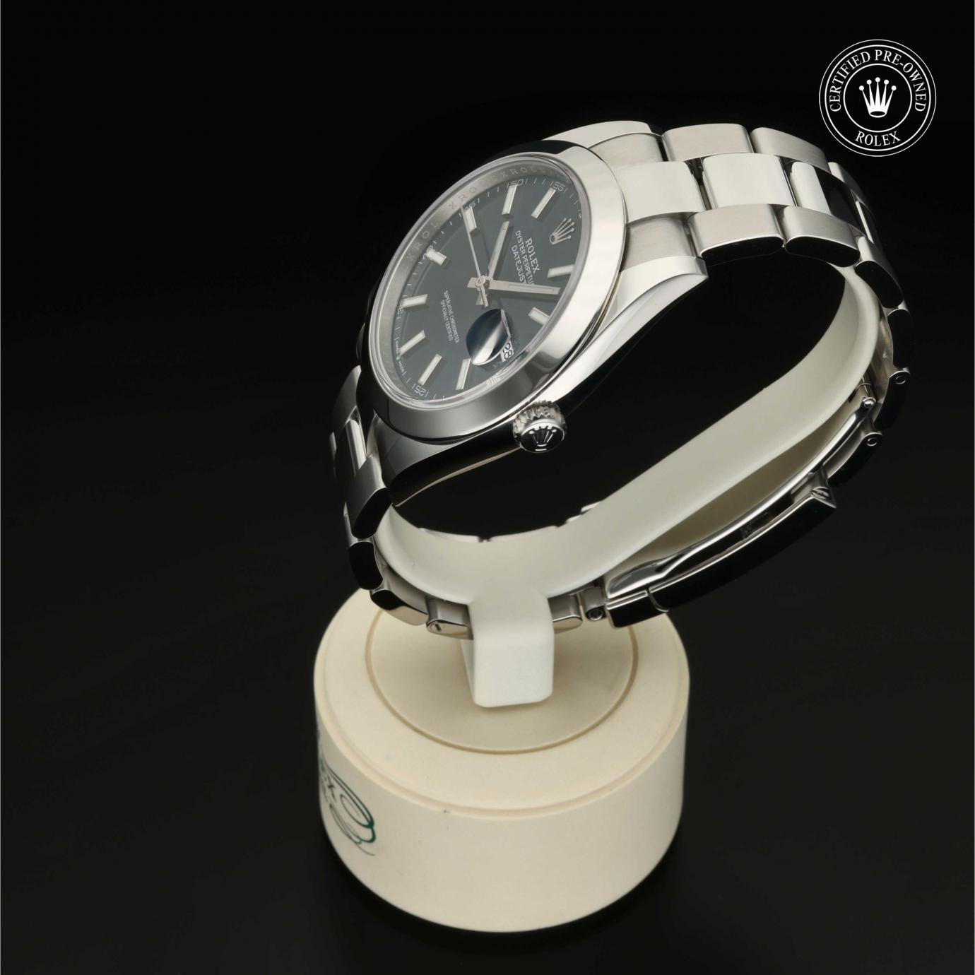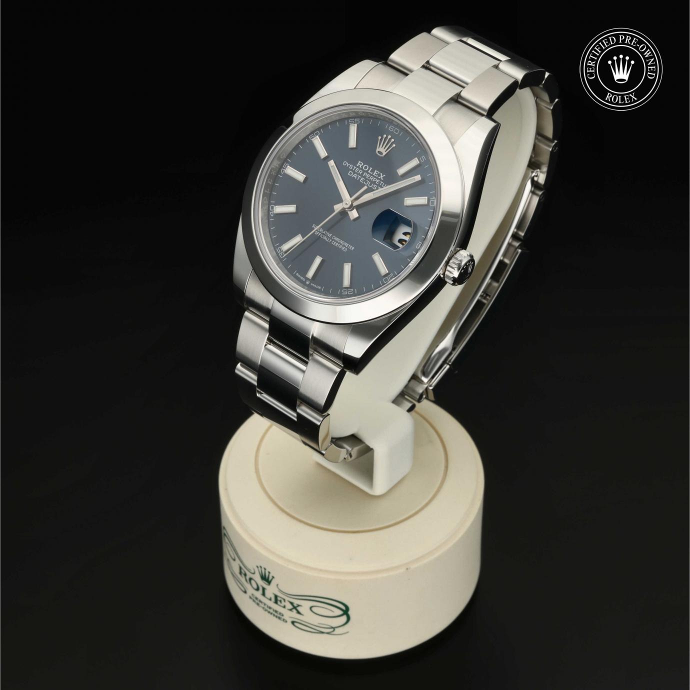 Bei ihrer Einführung im Jahr 1945 war sie das erste automatische und wasserdichte Armbandchronometer, das in einem Sichtfenster auf der 3‑Uhr-Position des Zifferblattes das Datum angibt.Die Datejust ist erhältlich in Edelstahl Oystersteel, als Version in Edelstahl Oystersteel und Gelb-, Weiß- oder Everose-Gold sowie als vollständig in 18 Karat Gold gefertigte Version mit einer großen Auswahl an Zifferblättern, Lünetten und Armbändern. Sie ist ebenfalls in Ausführungen mit Edelsteinbesatz erhältlich.