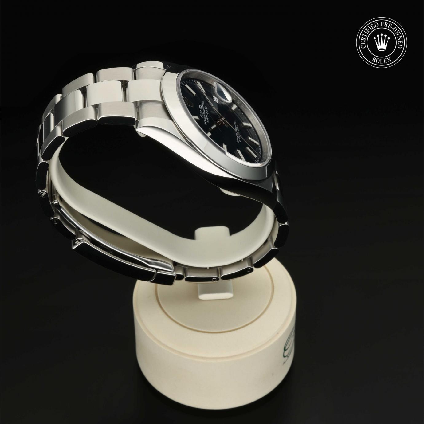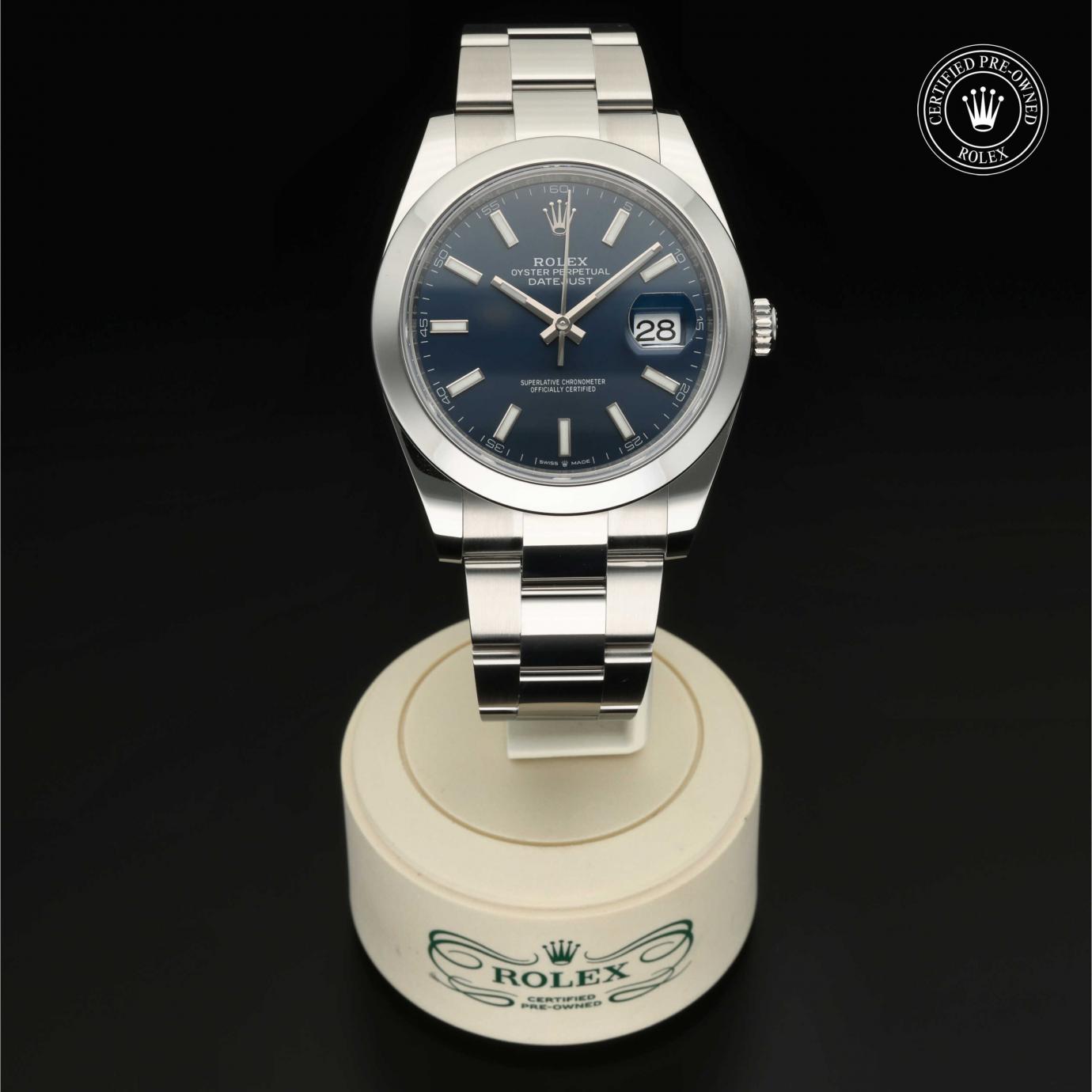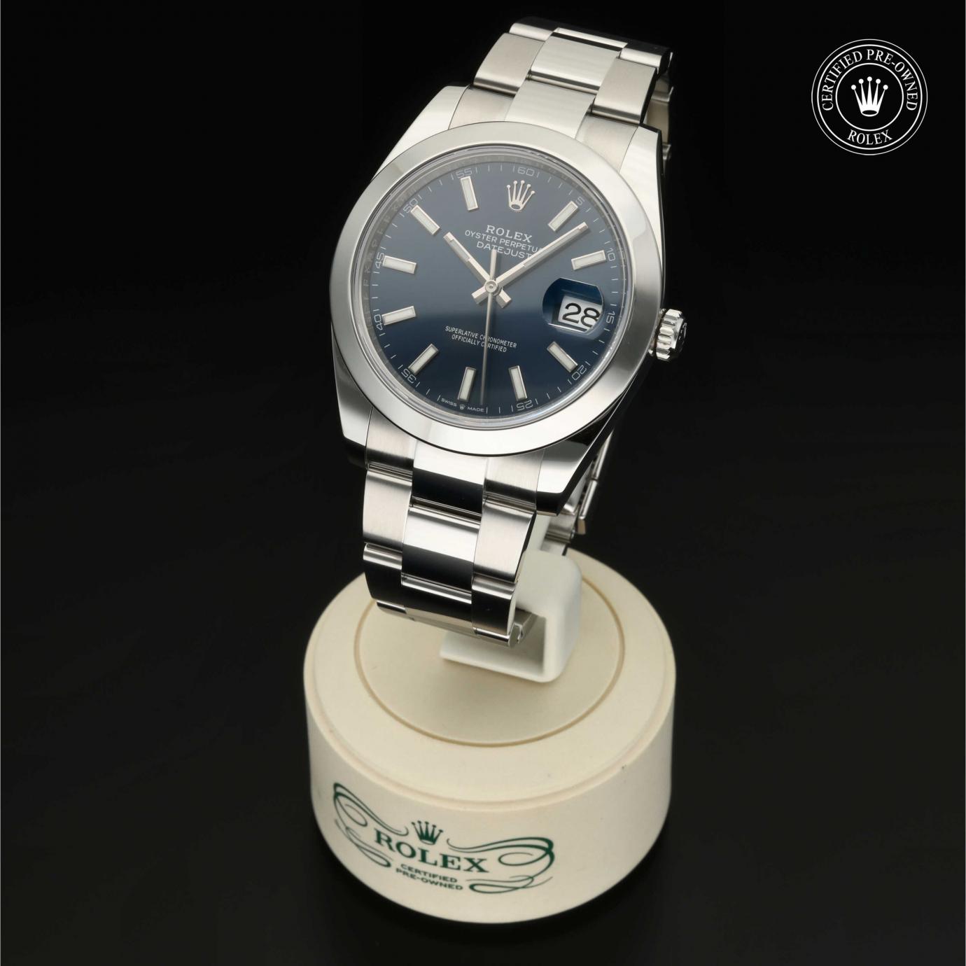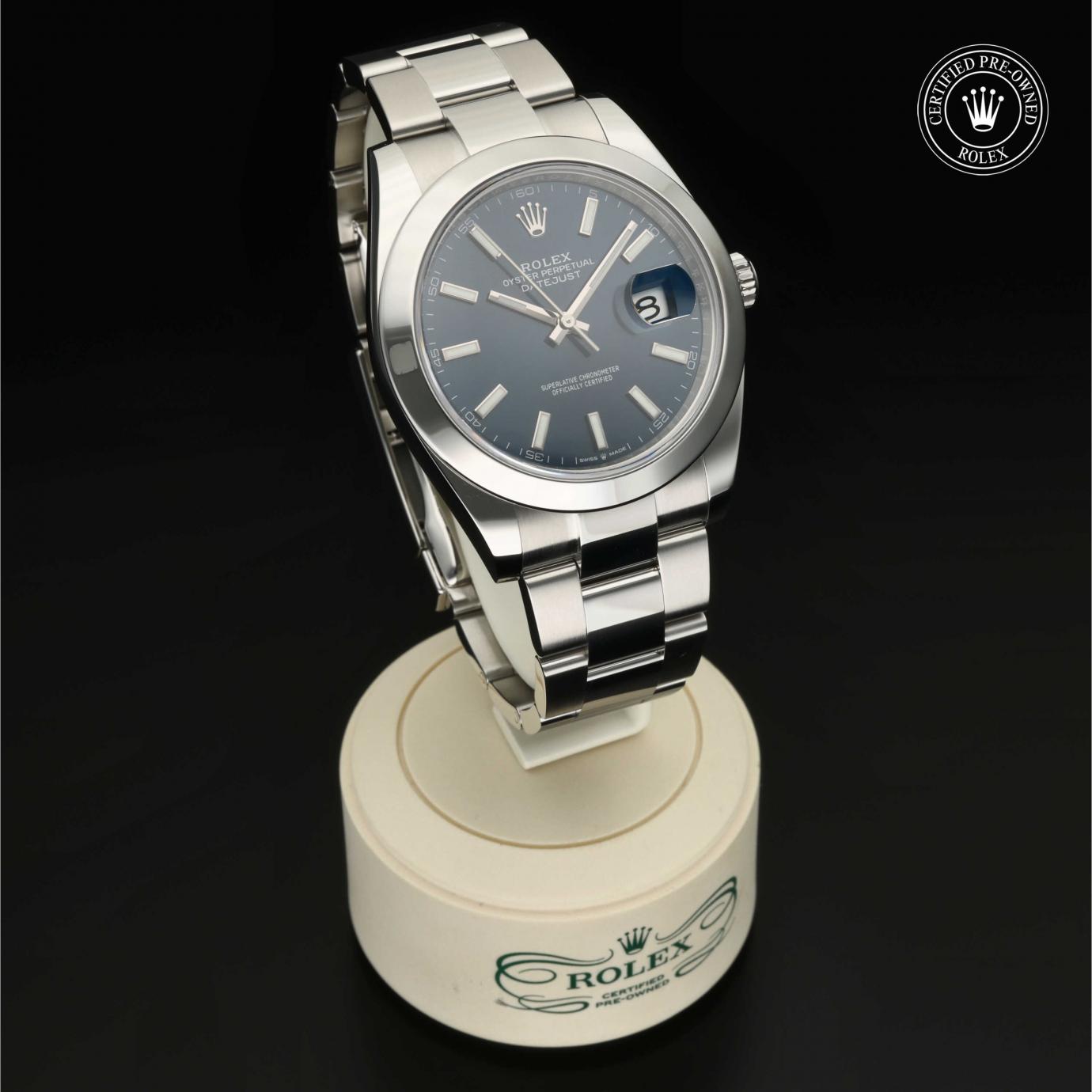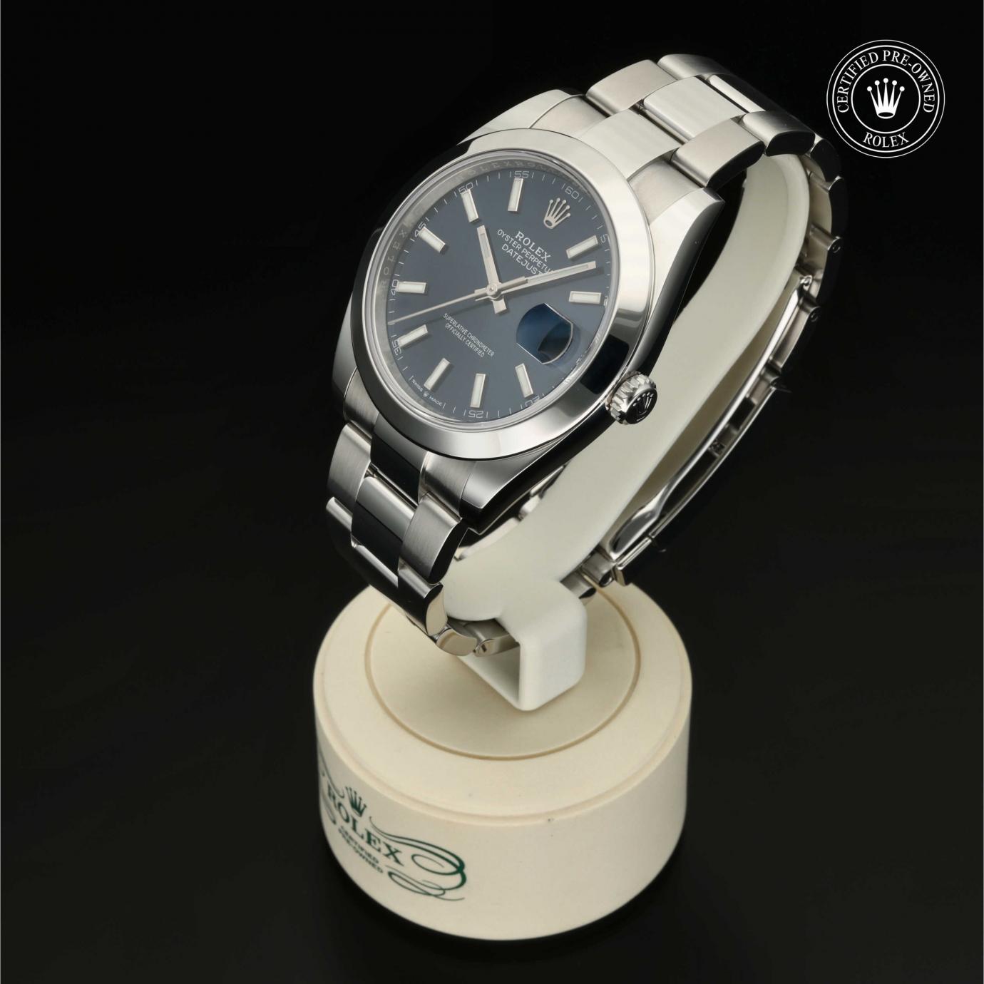 Bei ihrer Einführung im Jahr 1945 war sie das erste automatische und wasserdichte Armbandchronometer, das in einem Sichtfenster auf der 3‑Uhr-Position des Zifferblattes das Datum angibt.Die Datejust ist erhältlich in Edelstahl Oystersteel, als Version in Edelstahl Oystersteel und Gelb-, Weiß- oder Everose-Gold sowie als vollständig in 18 Karat Gold gefertigte Version mit einer großen Auswahl an Zifferblättern, Lünetten und Armbändern. Sie ist ebenfalls in Ausführungen mit Edelsteinbesatz erhältlich.