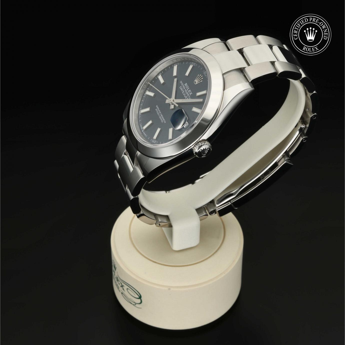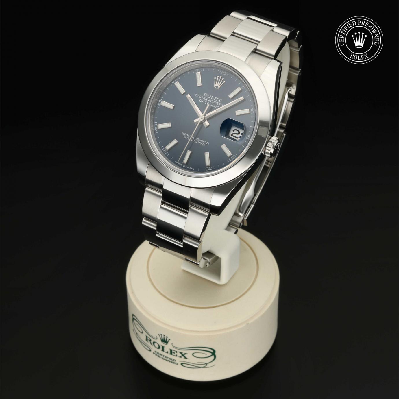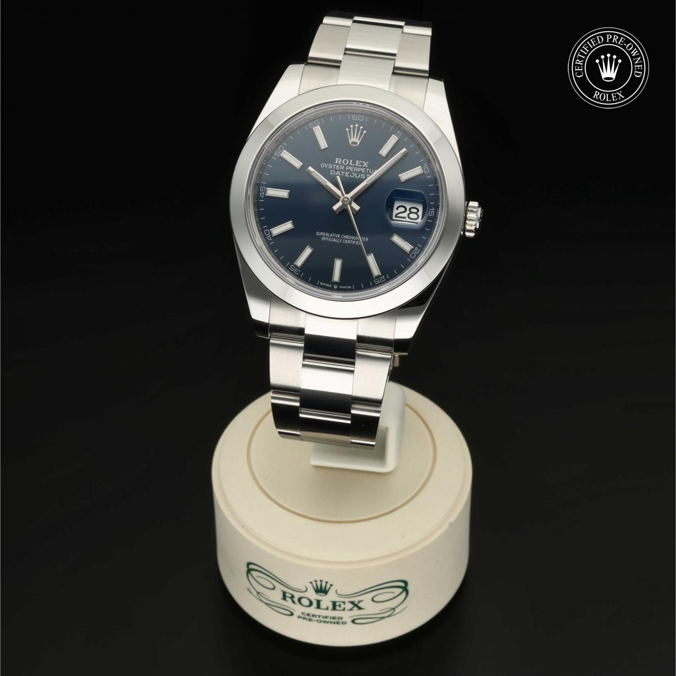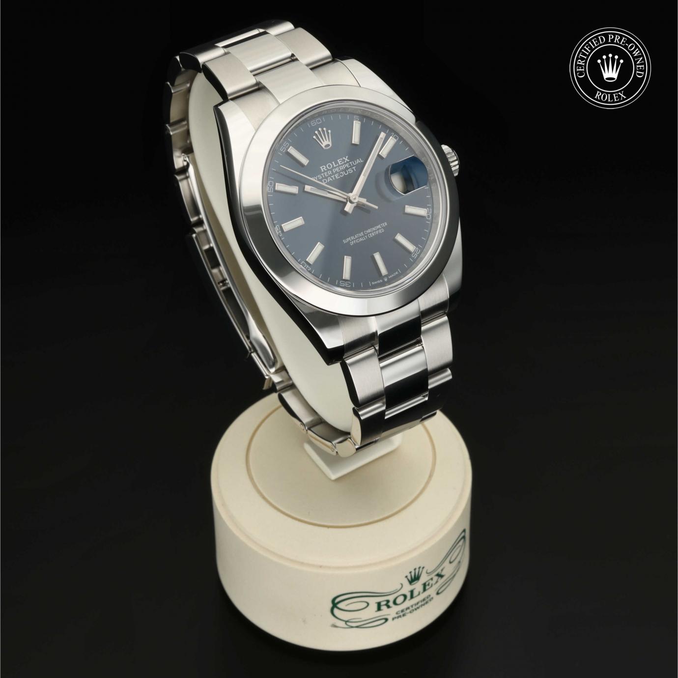 Bei ihrer Einführung im Jahr 1945 war sie das erste automatische und wasserdichte Armbandchronometer, das in einem Sichtfenster auf der 3‑Uhr-Position des Zifferblattes das Datum angibt.Die Datejust ist erhältlich in Edelstahl Oystersteel, als Version in Edelstahl Oystersteel und Gelb-, Weiß- oder Everose-Gold sowie als vollständig in 18 Karat Gold gefertigte Version mit einer großen Auswahl an Zifferblättern, Lünetten und Armbändern. Sie ist ebenfalls in Ausführungen mit Edelsteinbesatz erhältlich.