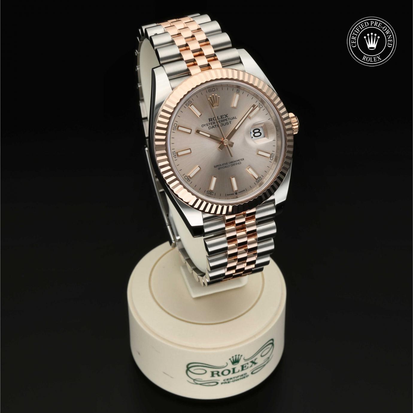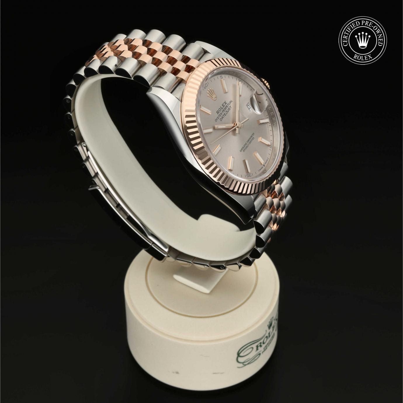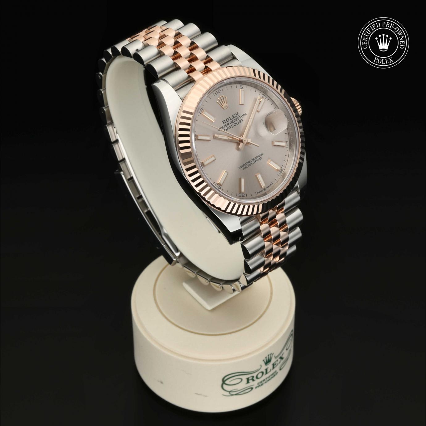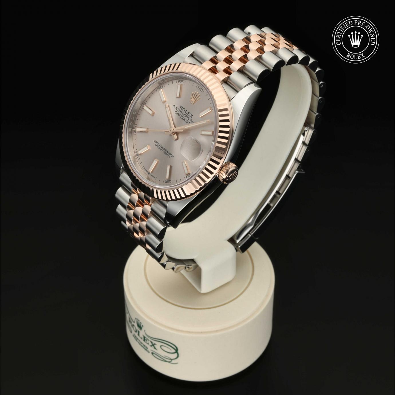 Bei ihrer Einführung im Jahr 1945 war sie das erste automatische und wasserdichte Armbandchronometer, das in einem Sichtfenster auf der 3‑Uhr-Position des Zifferblattes das Datum angibt.Die Datejust ist erhältlich in Edelstahl Oystersteel, als Version in Edelstahl Oystersteel und Gelb-, Weiß- oder Everose-Gold sowie als vollständig in 18 Karat Gold gefertigte Version mit einer großen Auswahl an Zifferblättern, Lünetten und Armbändern. Sie ist ebenfalls in Ausführungen mit Edelsteinbesatz erhältlich.