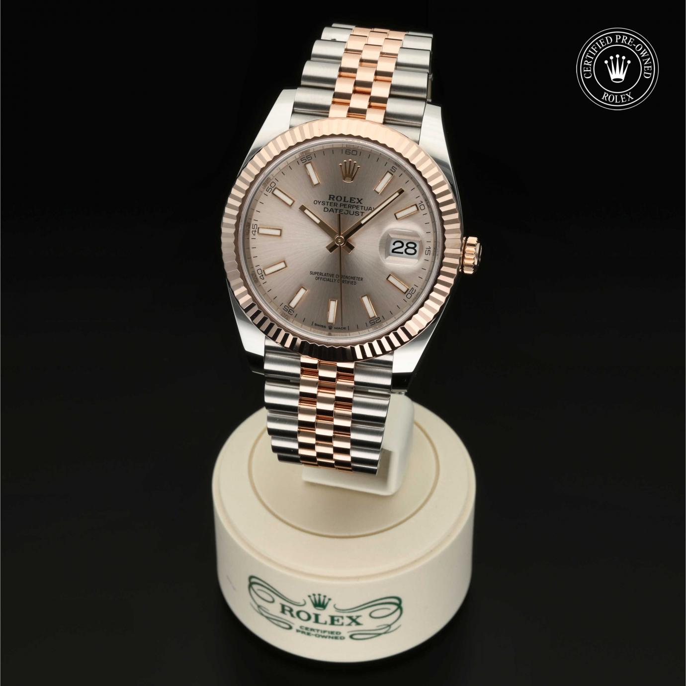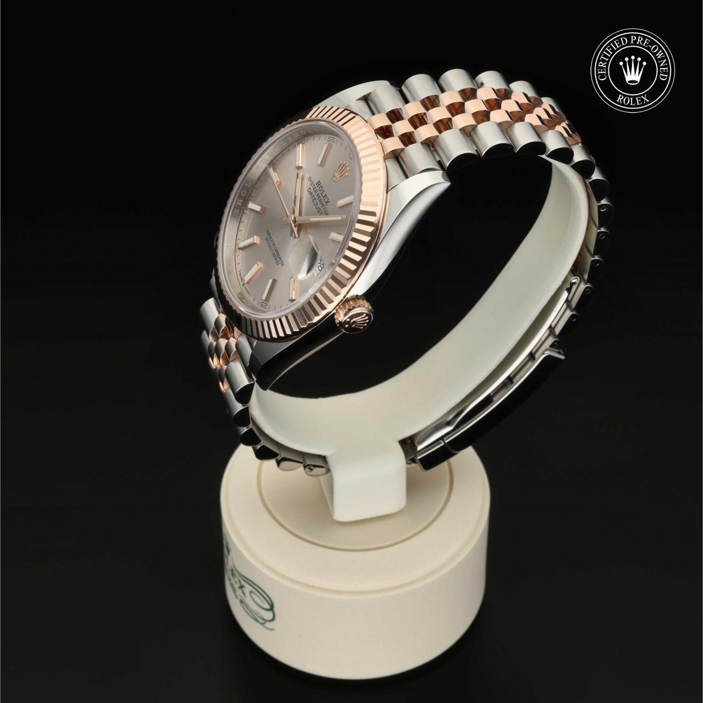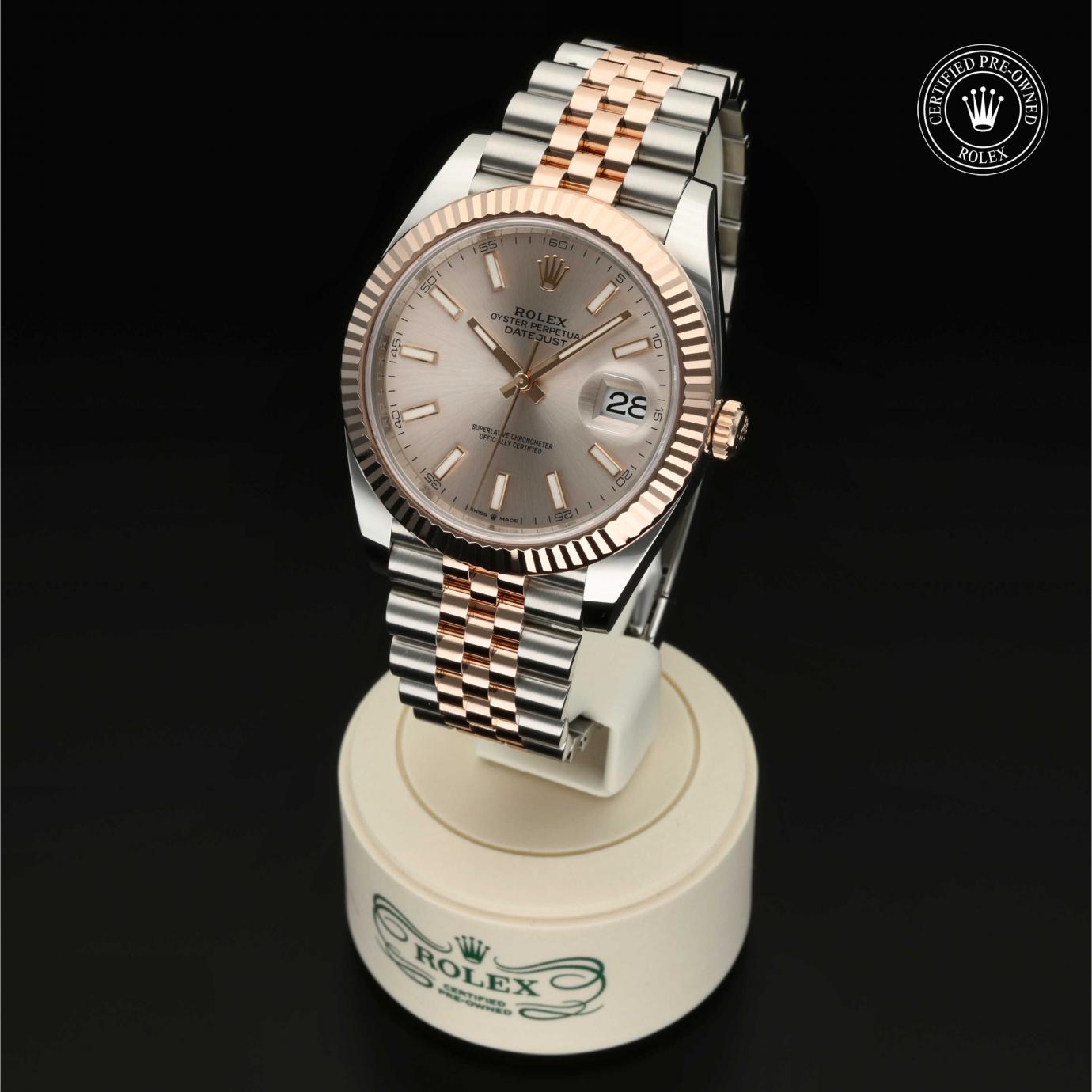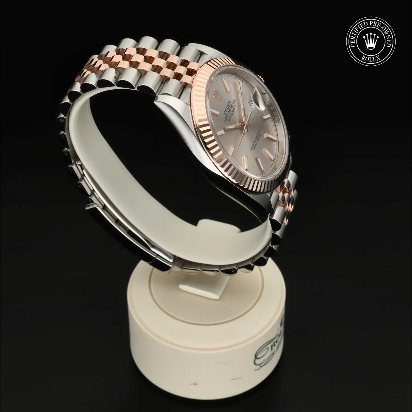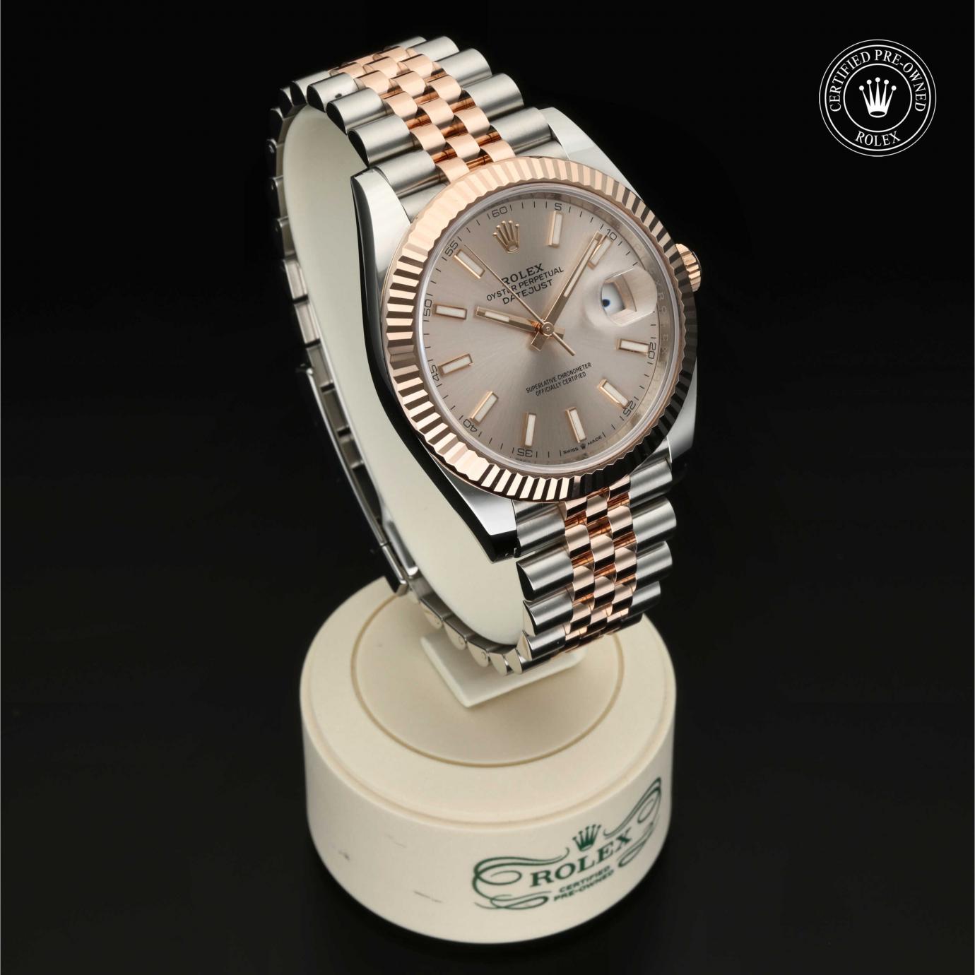 Bei ihrer Einführung im Jahr 1945 war sie das erste automatische und wasserdichte Armbandchronometer, das in einem Sichtfenster auf der 3‑Uhr-Position des Zifferblattes das Datum angibt.Die Datejust ist erhältlich in Edelstahl Oystersteel, als Version in Edelstahl Oystersteel und Gelb-, Weiß- oder Everose-Gold sowie als vollständig in 18 Karat Gold gefertigte Version mit einer großen Auswahl an Zifferblättern, Lünetten und Armbändern. Sie ist ebenfalls in Ausführungen mit Edelsteinbesatz erhältlich.