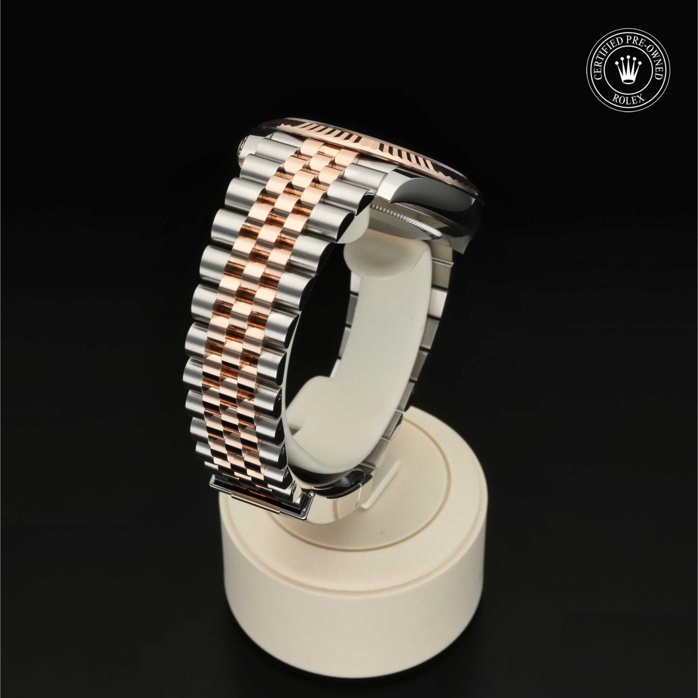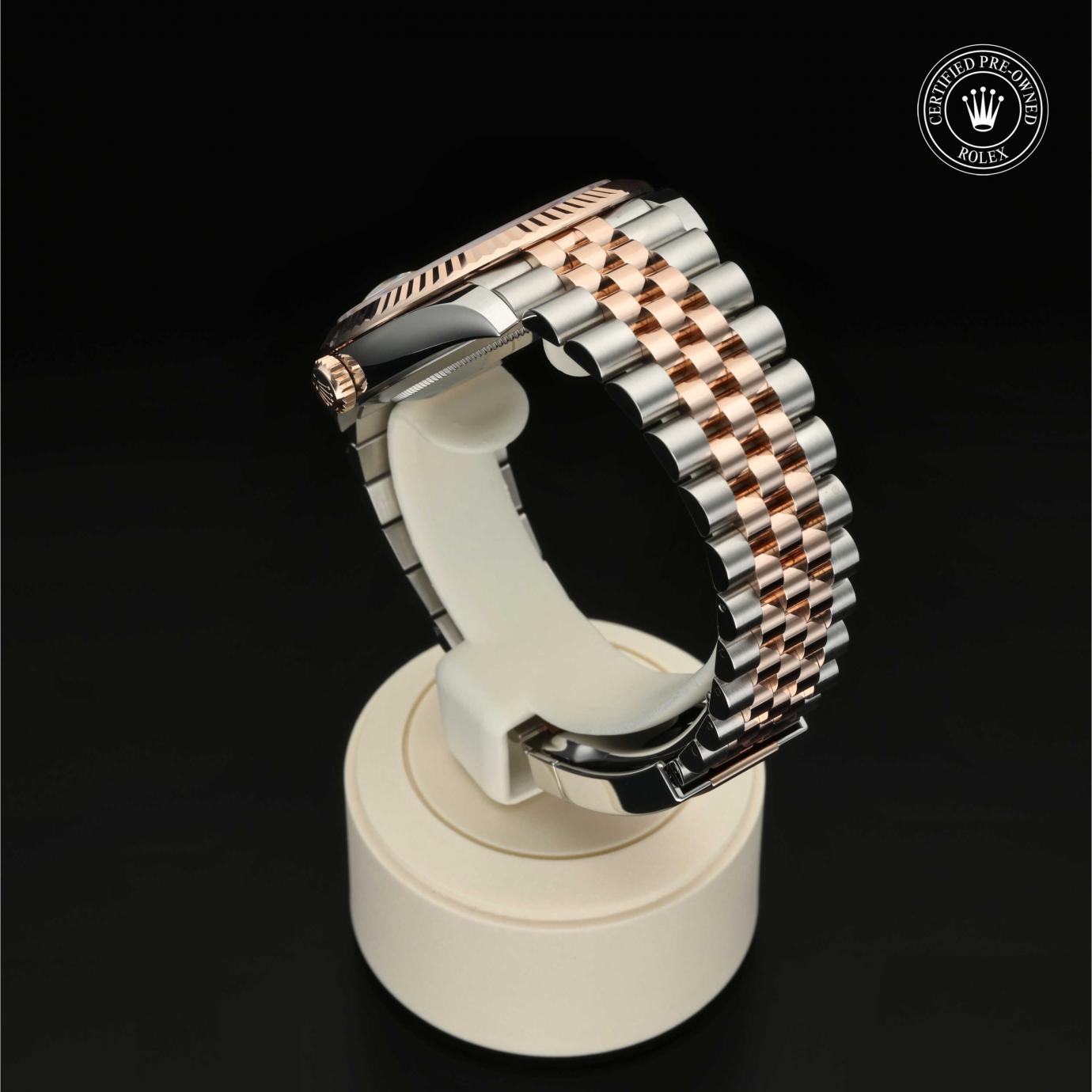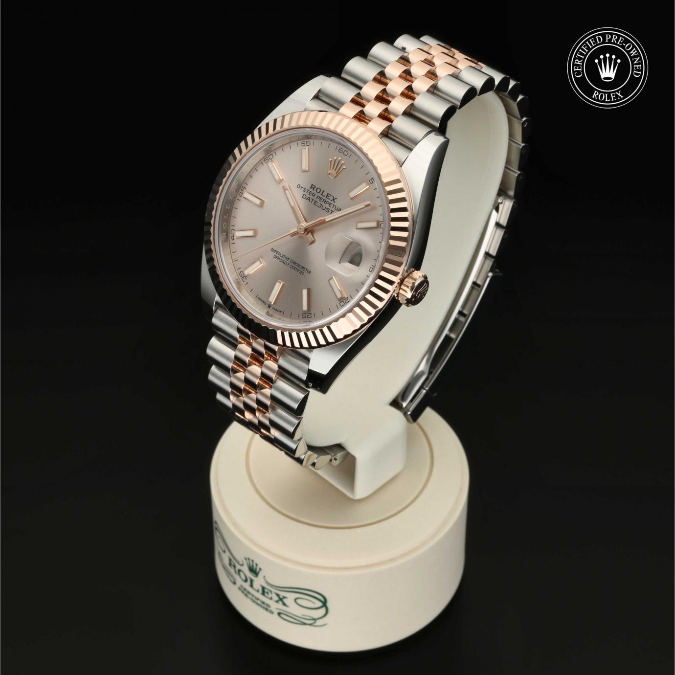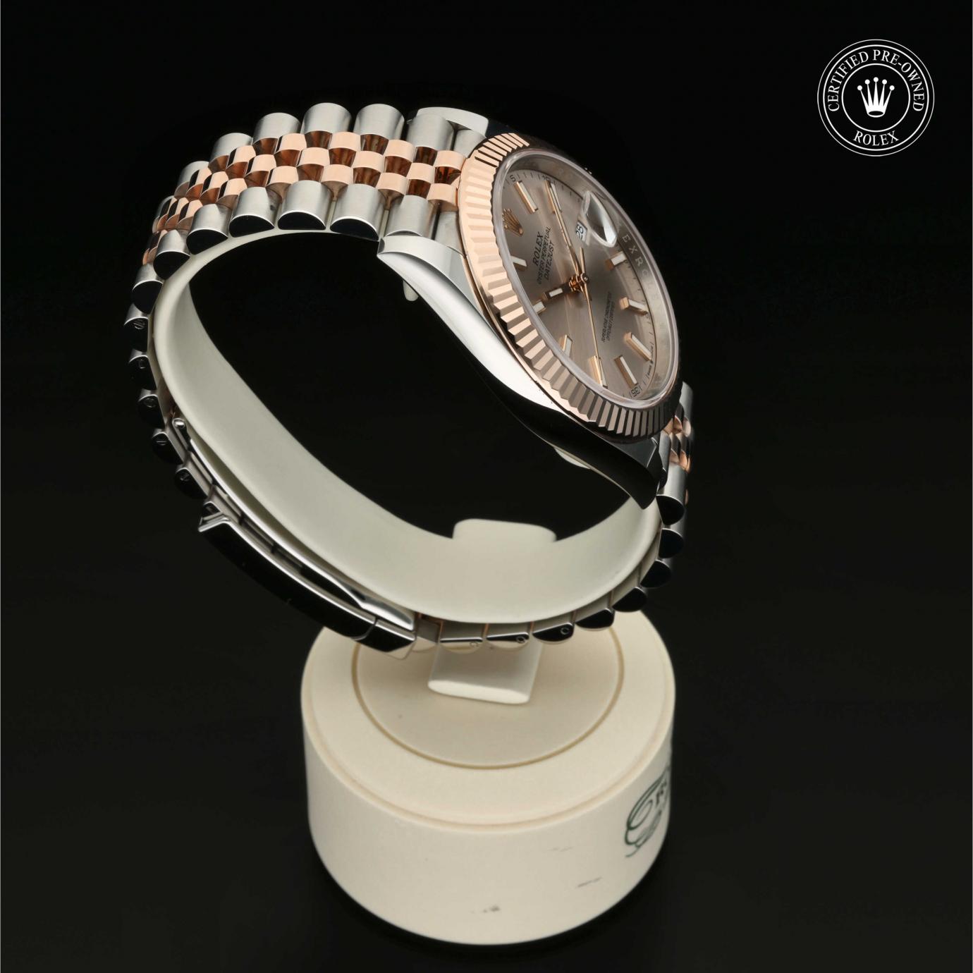 Bei ihrer Einführung im Jahr 1945 war sie das erste automatische und wasserdichte Armbandchronometer, das in einem Sichtfenster auf der 3‑Uhr-Position des Zifferblattes das Datum angibt.Die Datejust ist erhältlich in Edelstahl Oystersteel, als Version in Edelstahl Oystersteel und Gelb-, Weiß- oder Everose-Gold sowie als vollständig in 18 Karat Gold gefertigte Version mit einer großen Auswahl an Zifferblättern, Lünetten und Armbändern. Sie ist ebenfalls in Ausführungen mit Edelsteinbesatz erhältlich.