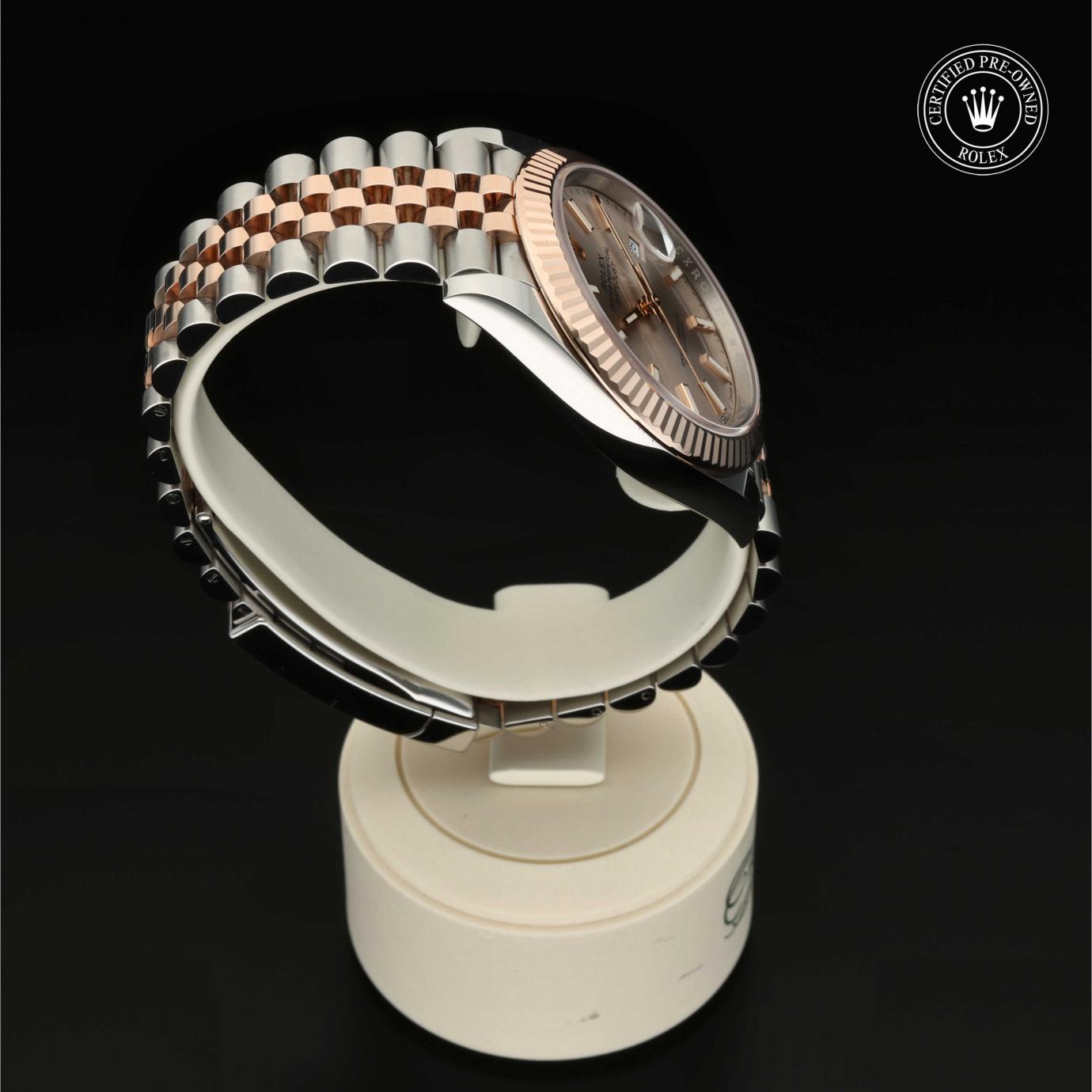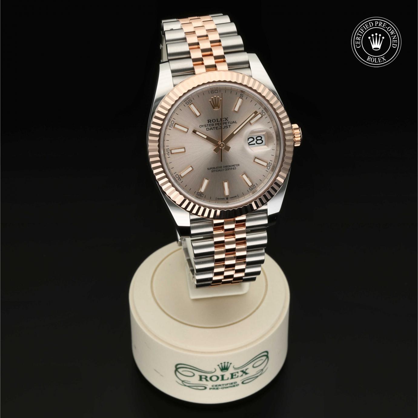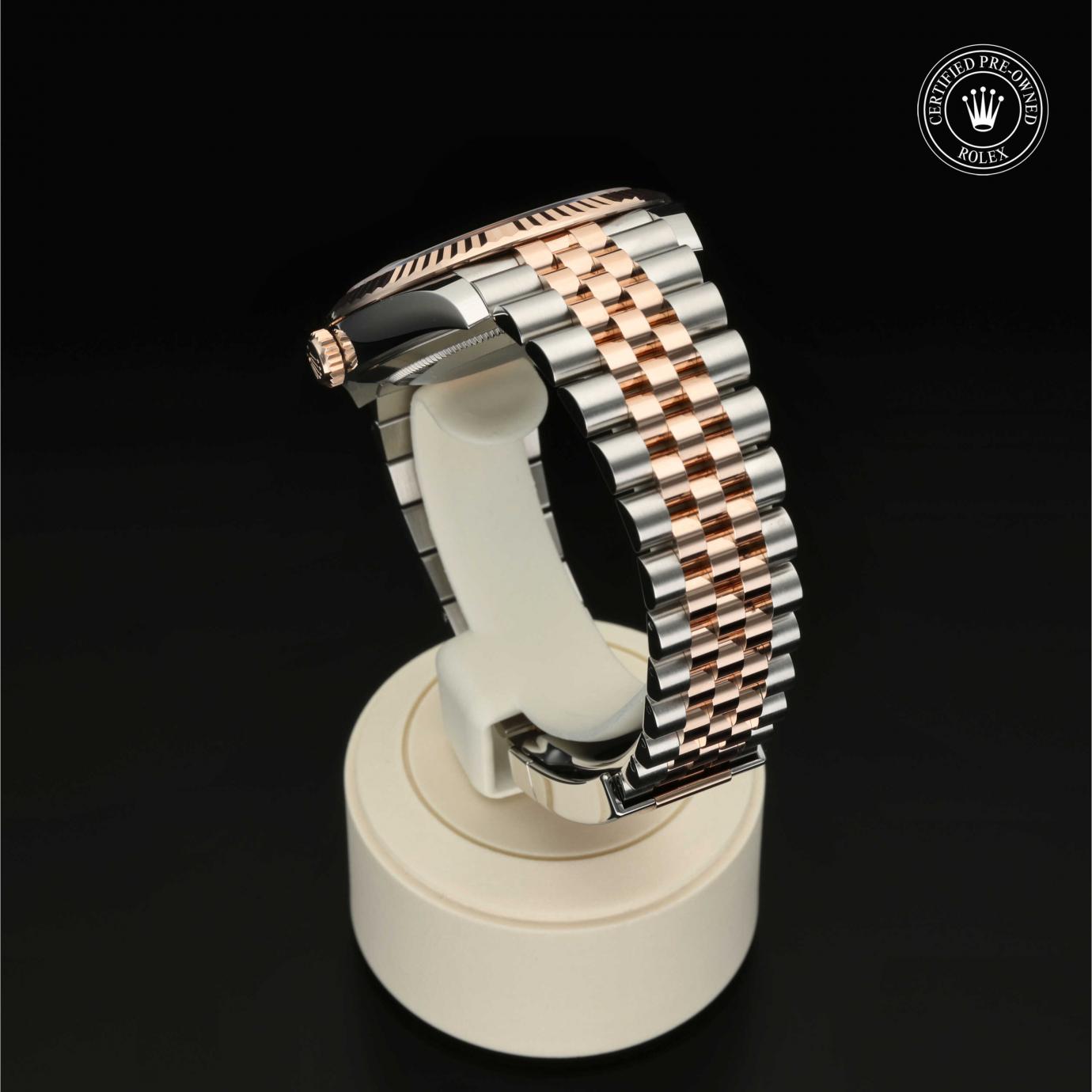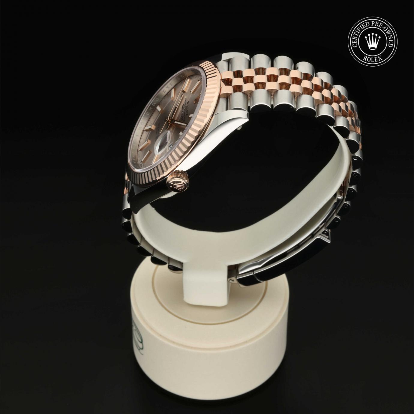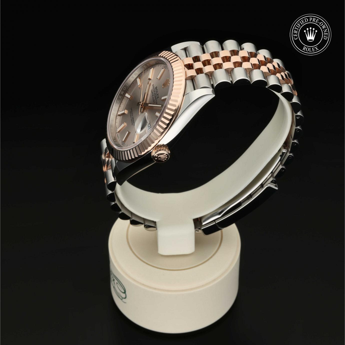 Bei ihrer Einführung im Jahr 1945 war sie das erste automatische und wasserdichte Armbandchronometer, das in einem Sichtfenster auf der 3‑Uhr-Position des Zifferblattes das Datum angibt.Die Datejust ist erhältlich in Edelstahl Oystersteel, als Version in Edelstahl Oystersteel und Gelb-, Weiß- oder Everose-Gold sowie als vollständig in 18 Karat Gold gefertigte Version mit einer großen Auswahl an Zifferblättern, Lünetten und Armbändern. Sie ist ebenfalls in Ausführungen mit Edelsteinbesatz erhältlich.