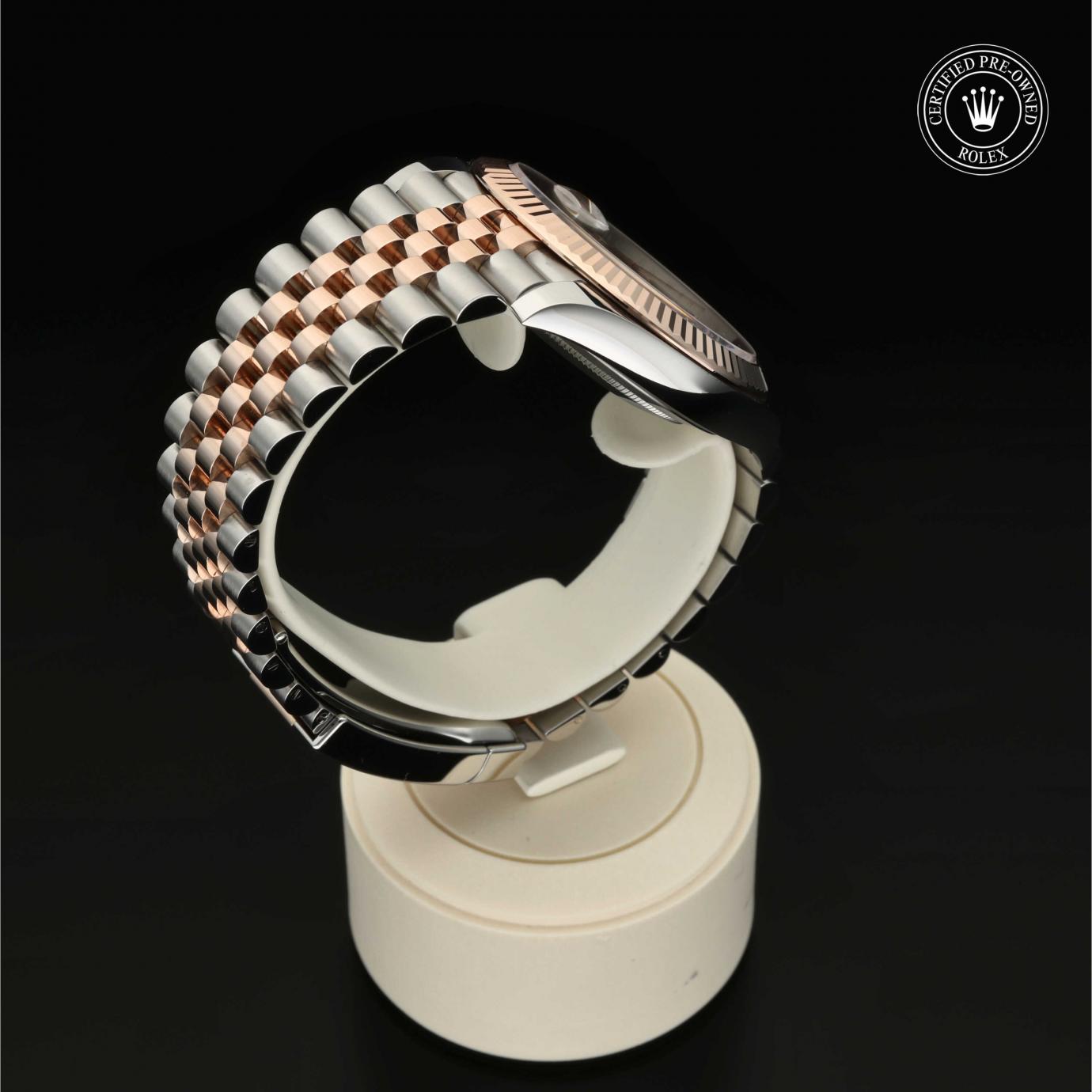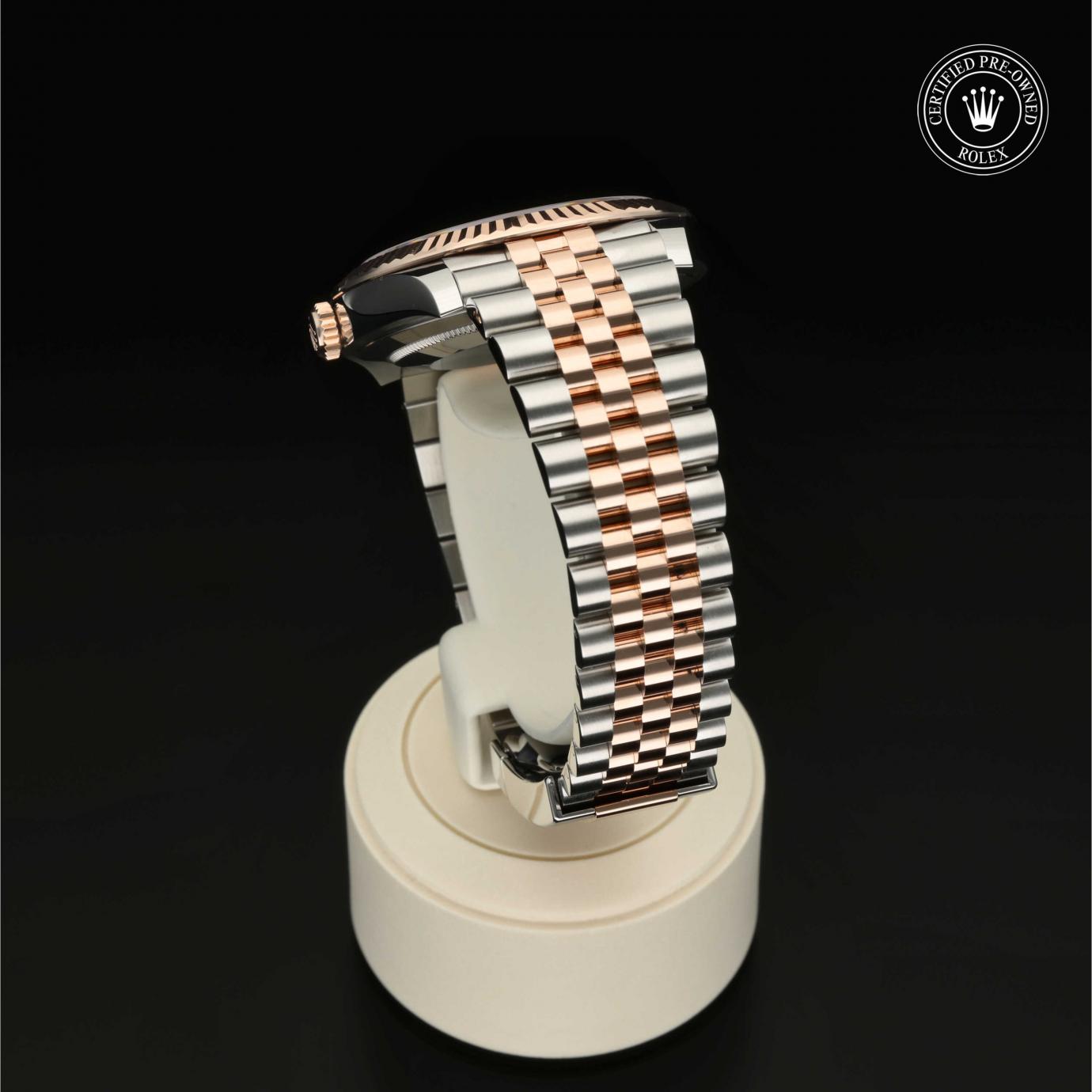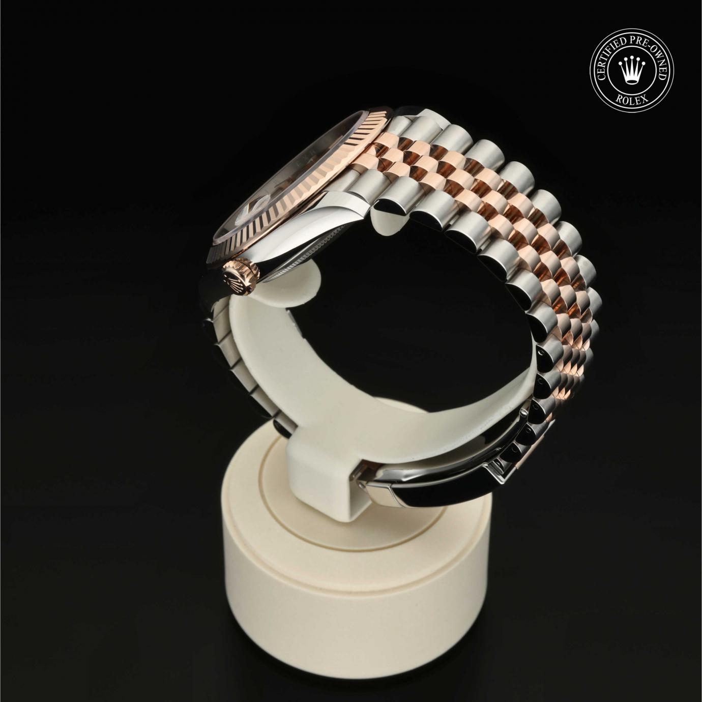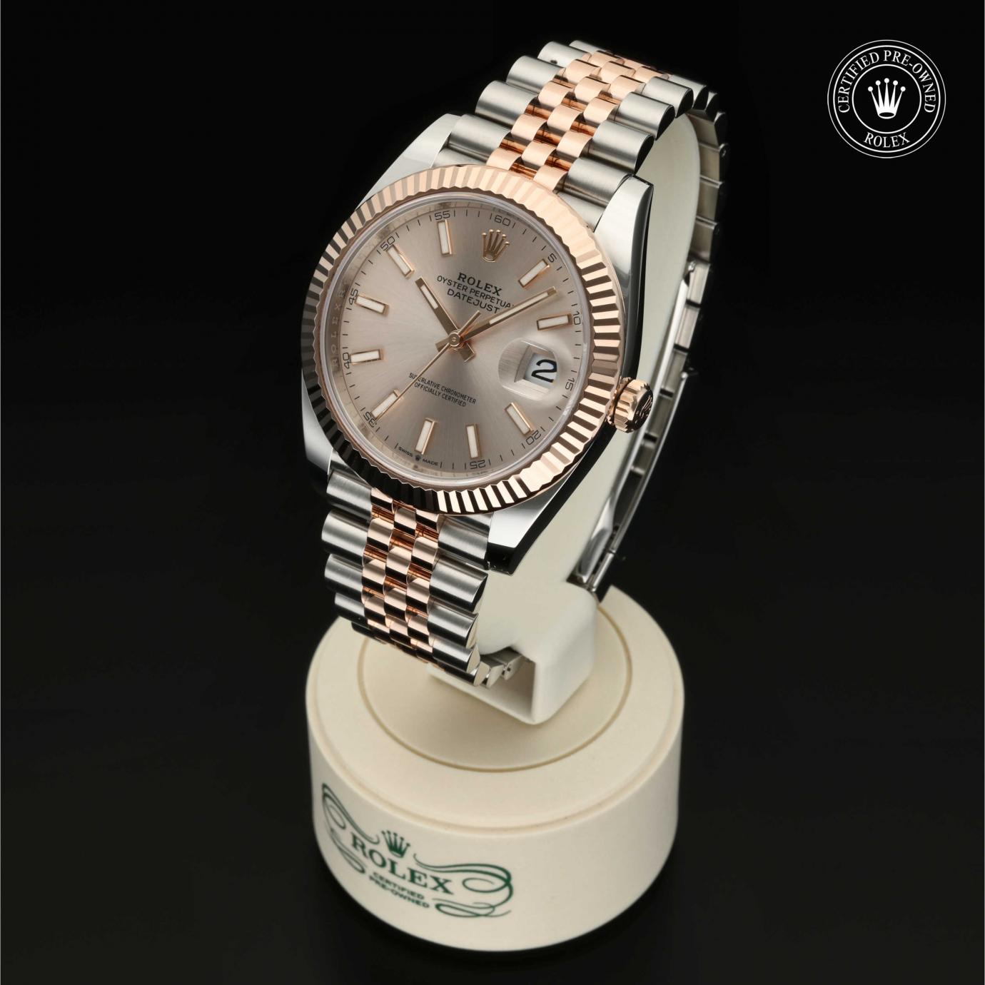 Bei ihrer Einführung im Jahr 1945 war sie das erste automatische und wasserdichte Armbandchronometer, das in einem Sichtfenster auf der 3‑Uhr-Position des Zifferblattes das Datum angibt.Die Datejust ist erhältlich in Edelstahl Oystersteel, als Version in Edelstahl Oystersteel und Gelb-, Weiß- oder Everose-Gold sowie als vollständig in 18 Karat Gold gefertigte Version mit einer großen Auswahl an Zifferblättern, Lünetten und Armbändern. Sie ist ebenfalls in Ausführungen mit Edelsteinbesatz erhältlich.