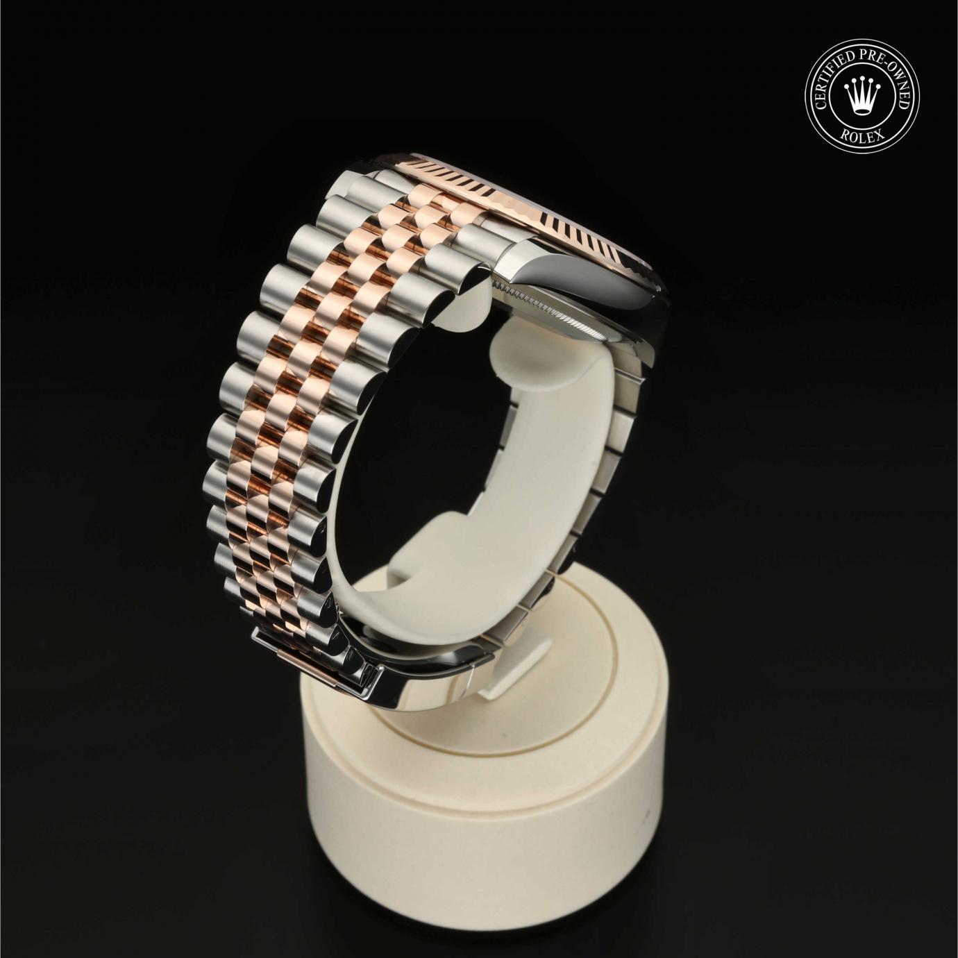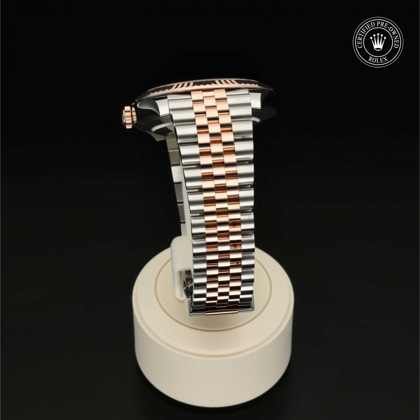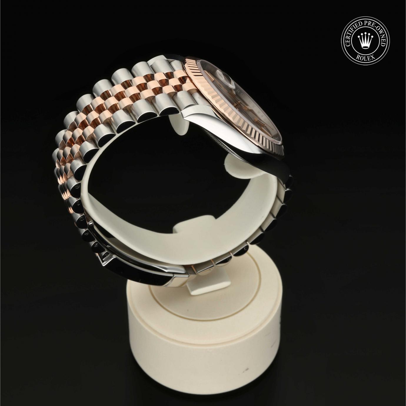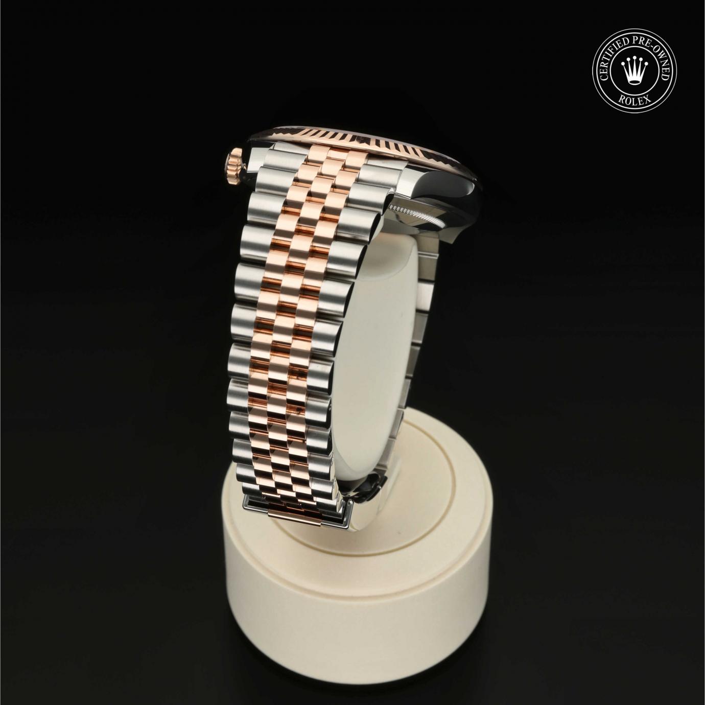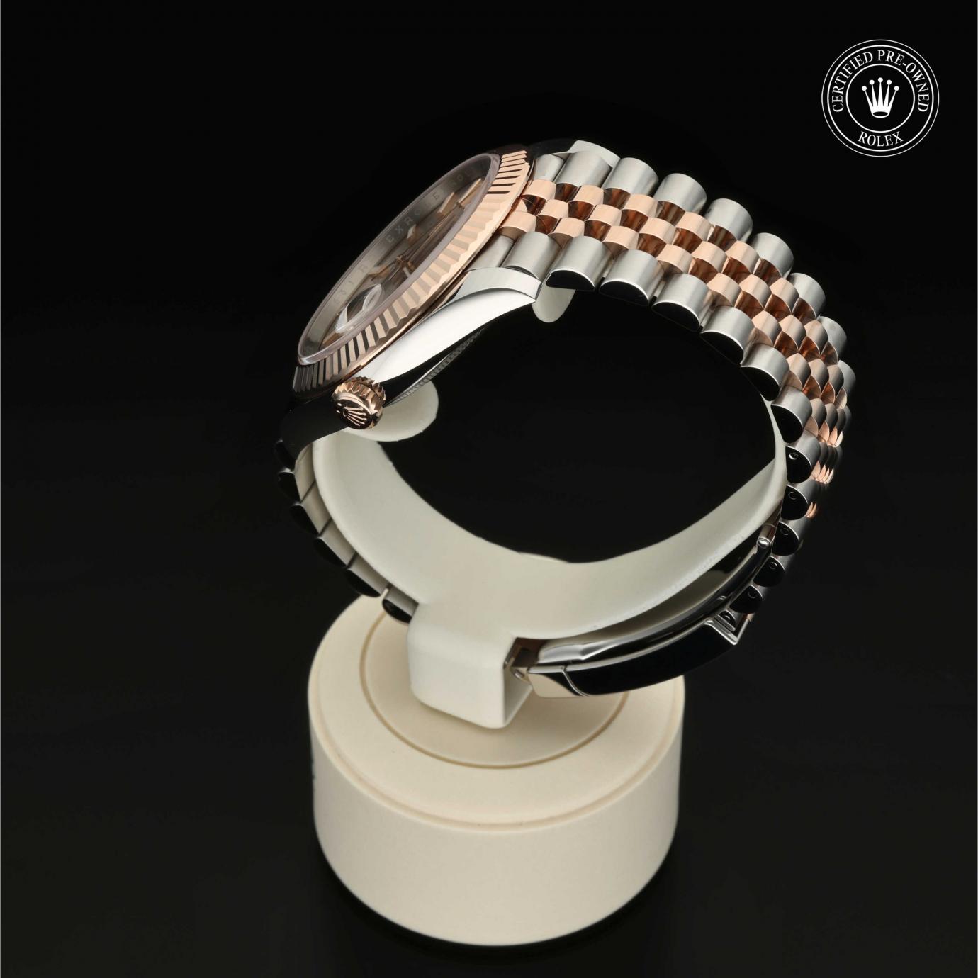 Bei ihrer Einführung im Jahr 1945 war sie das erste automatische und wasserdichte Armbandchronometer, das in einem Sichtfenster auf der 3‑Uhr-Position des Zifferblattes das Datum angibt.Die Datejust ist erhältlich in Edelstahl Oystersteel, als Version in Edelstahl Oystersteel und Gelb-, Weiß- oder Everose-Gold sowie als vollständig in 18 Karat Gold gefertigte Version mit einer großen Auswahl an Zifferblättern, Lünetten und Armbändern. Sie ist ebenfalls in Ausführungen mit Edelsteinbesatz erhältlich.