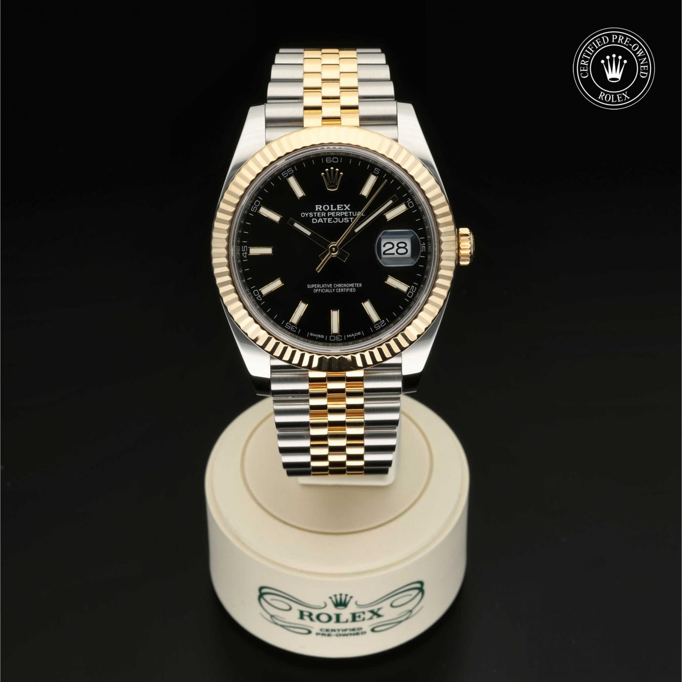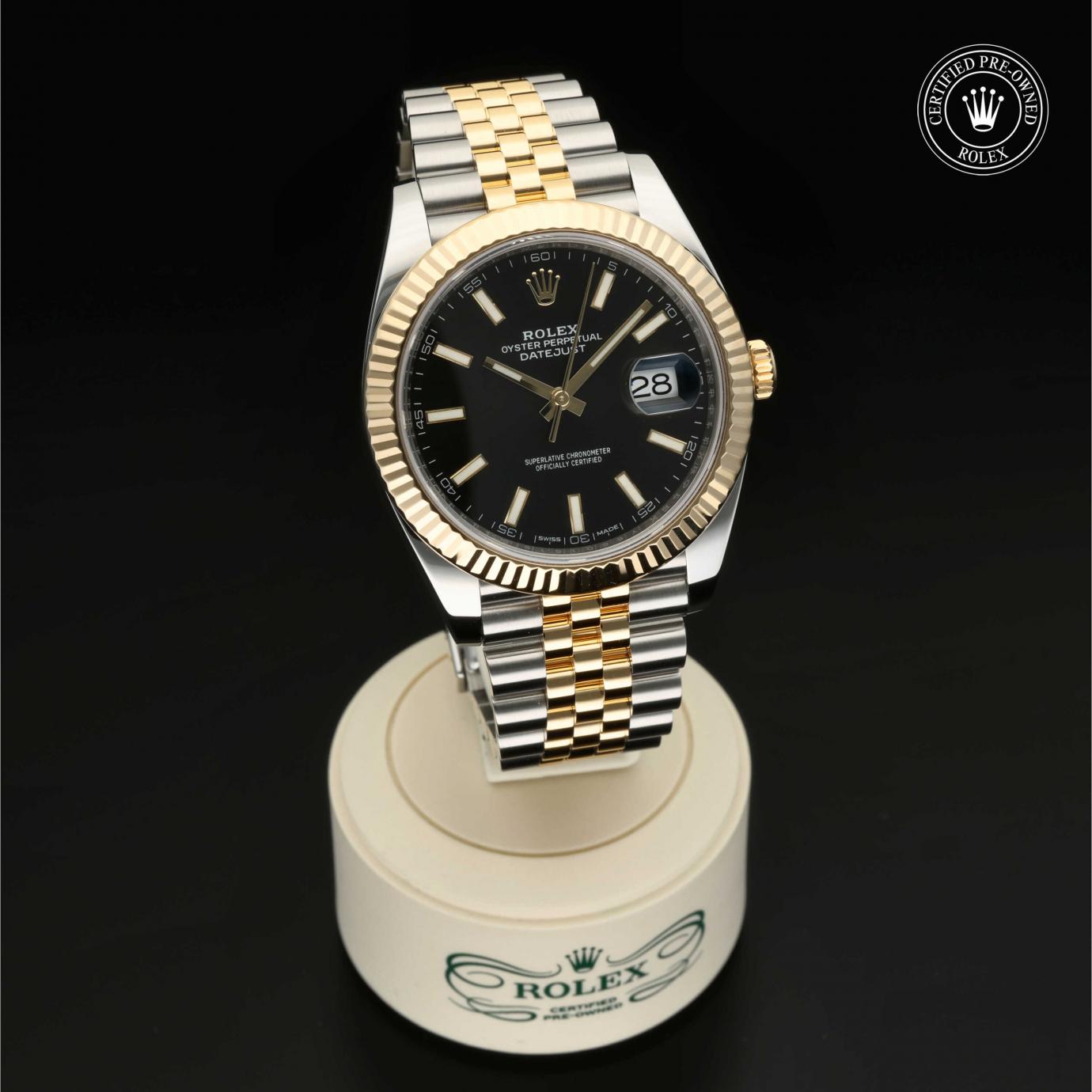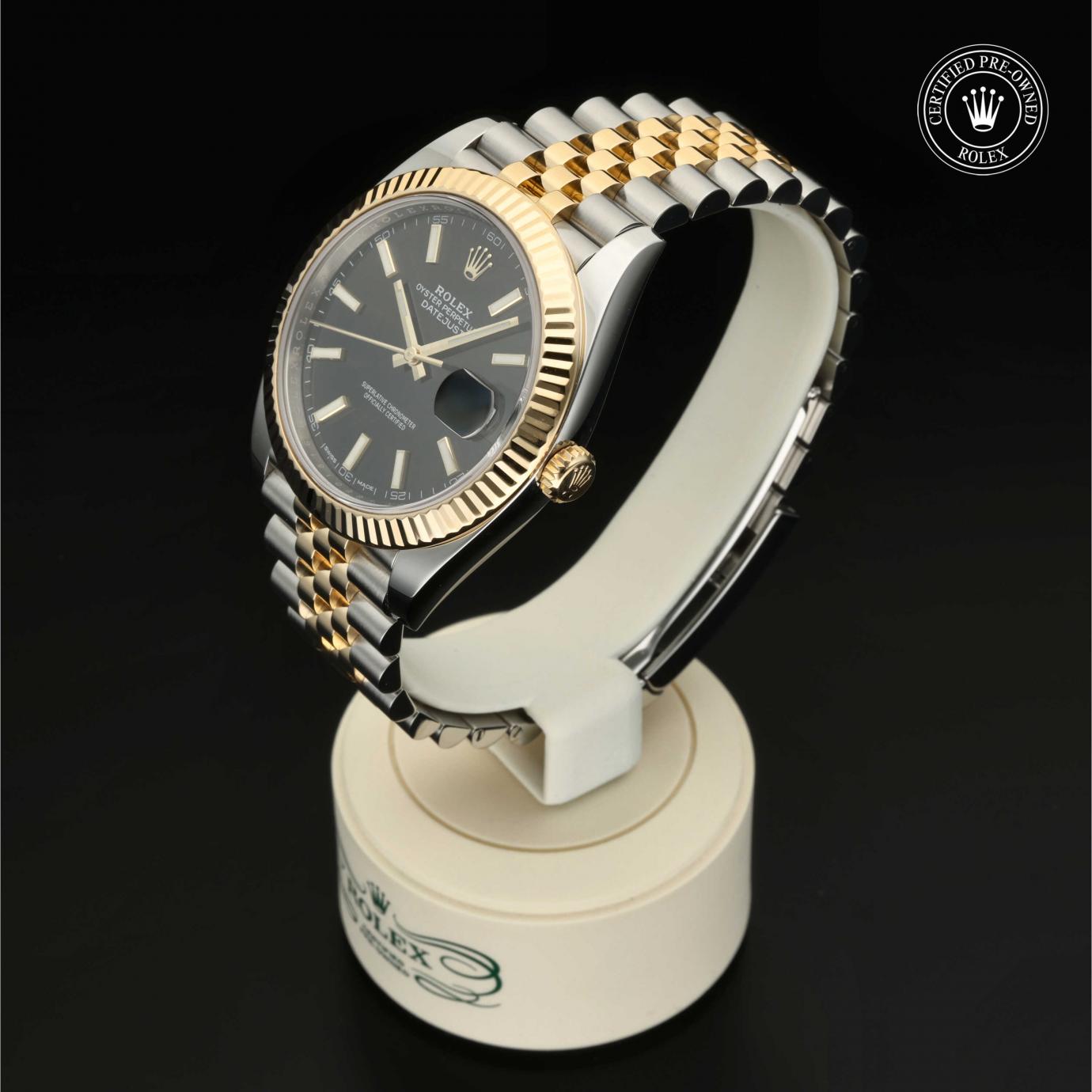 Bei ihrer Einführung im Jahr 1945 war sie das erste automatische und wasserdichte Armbandchronometer, das in einem Sichtfenster auf der 3‑Uhr-Position des Zifferblattes das Datum angibt.Die Datejust ist erhältlich in Edelstahl Oystersteel, als Version in Edelstahl Oystersteel und Gelb-, Weiß- oder Everose-Gold sowie als vollständig in 18 Karat Gold gefertigte Version mit einer großen Auswahl an Zifferblättern, Lünetten und Armbändern. Sie ist ebenfalls in Ausführungen mit Edelsteinbesatz erhältlich.