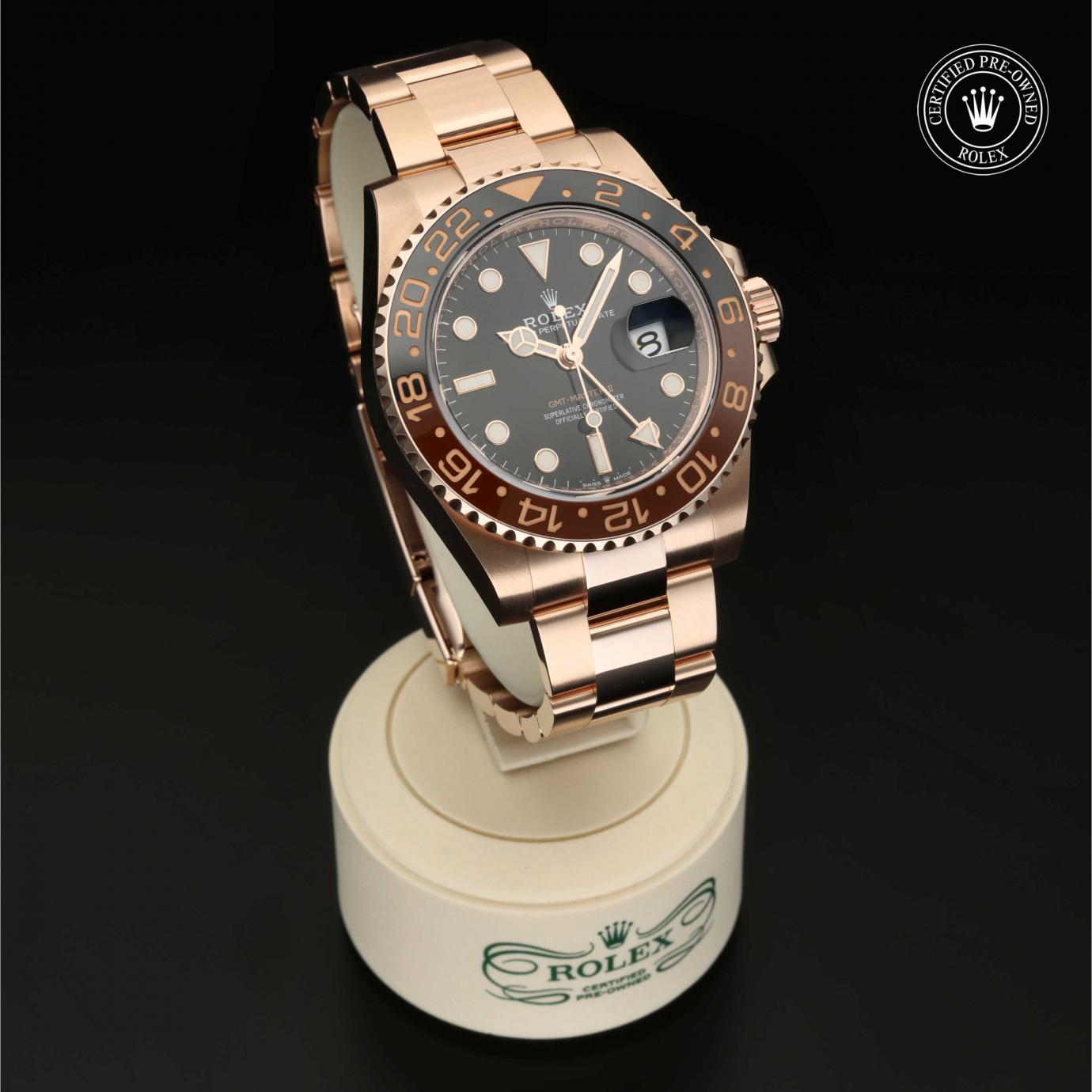 Das 1982 vorgestellte Modell verfügt über die legendäre zweifarbige Zahlenscheibe, die heutzutage aus Hightech-Keramik besteht, und zeigt gleichzeitig die Uhrzeit von zwei Zeitzonen an. Sie trat die unmittelbare Nachfolge der originalen GMT‑Master von 1955 an, die rasch von Transatlantik-Piloten als Navigationshilfe eingesetzt wurde.