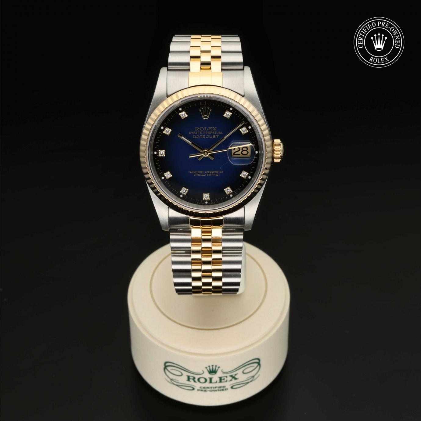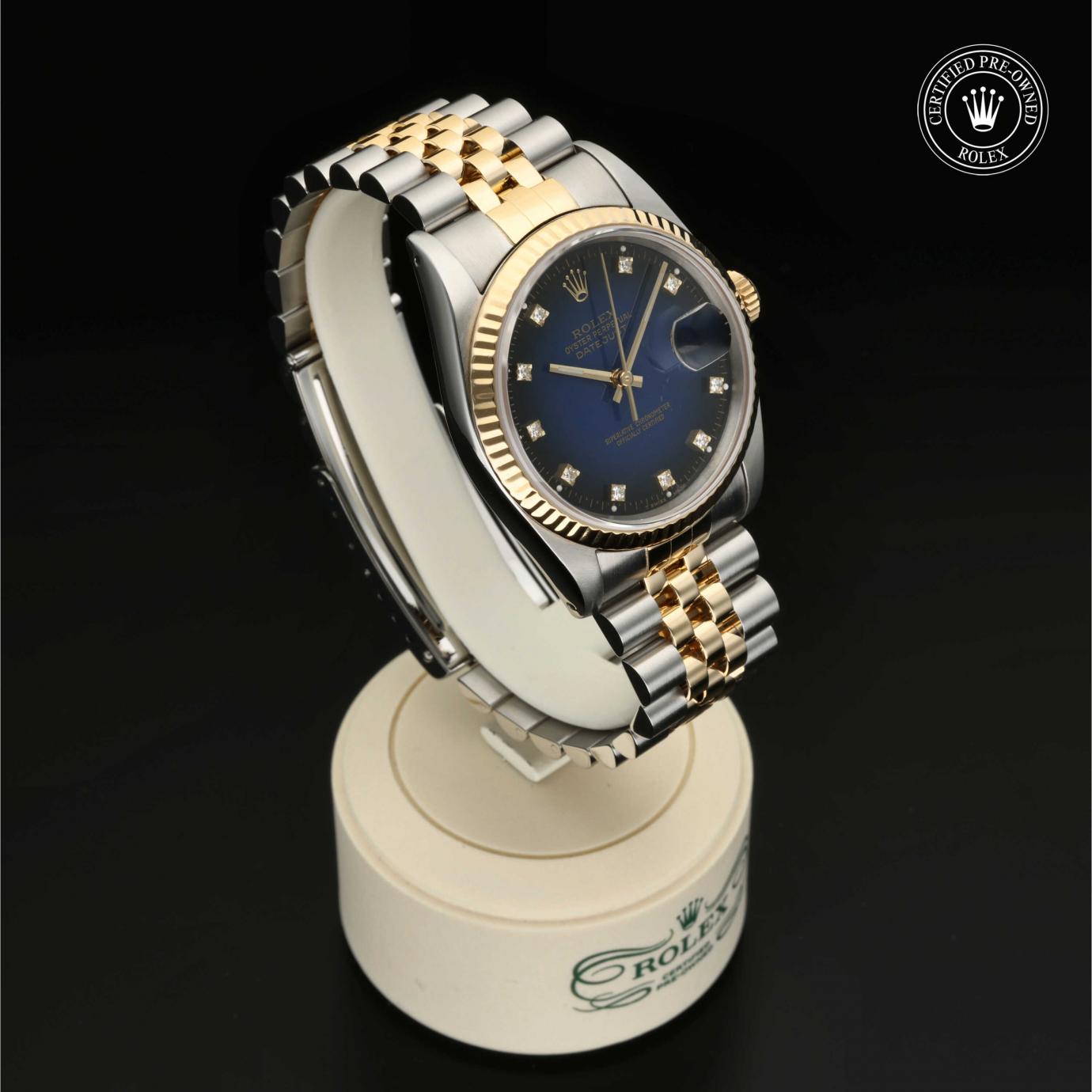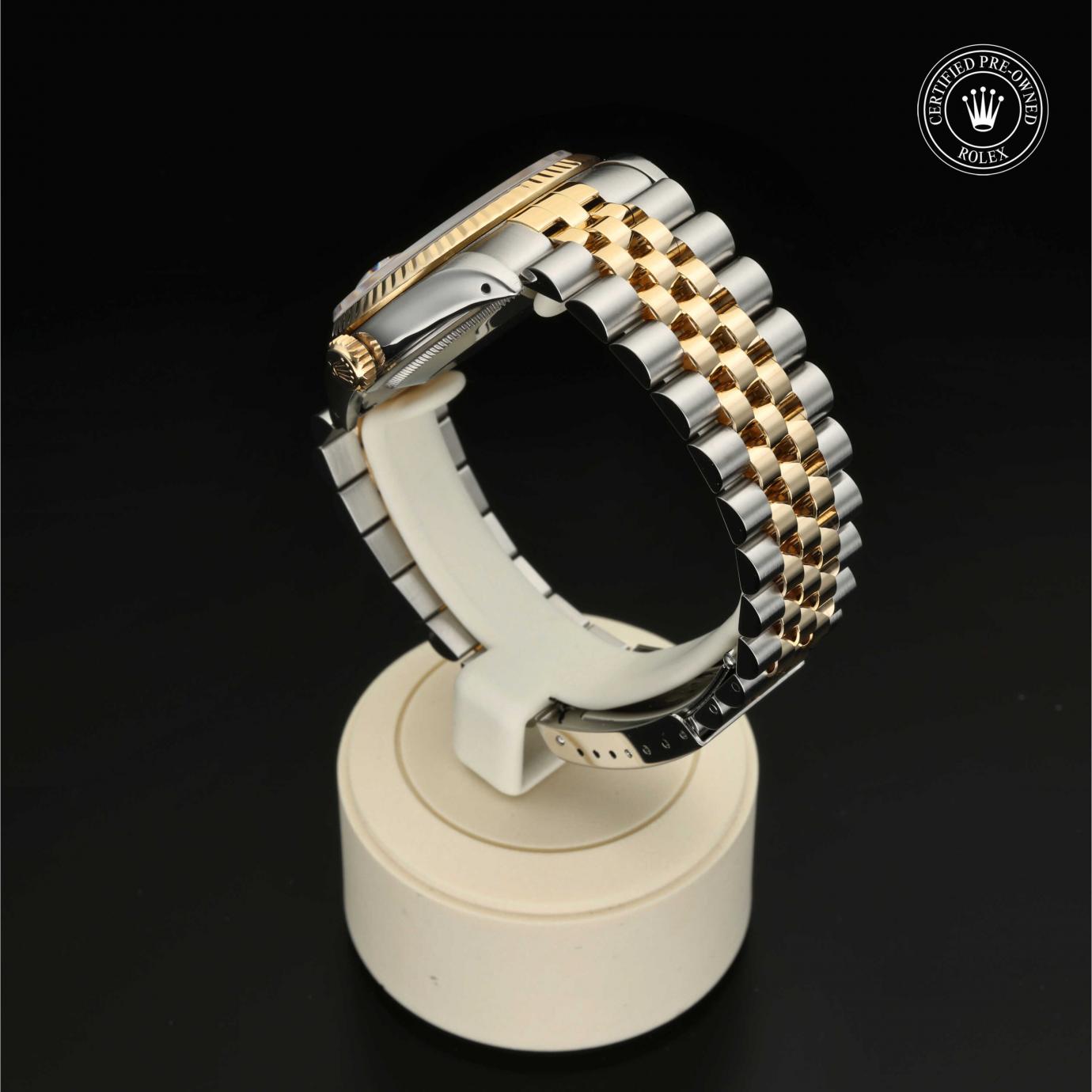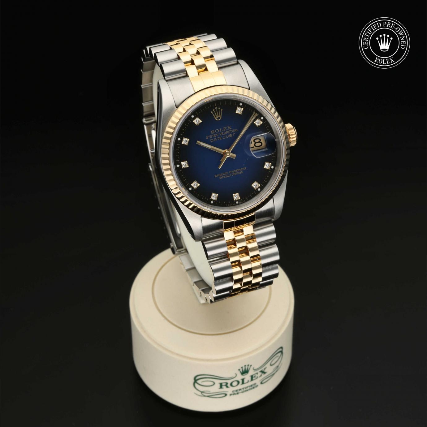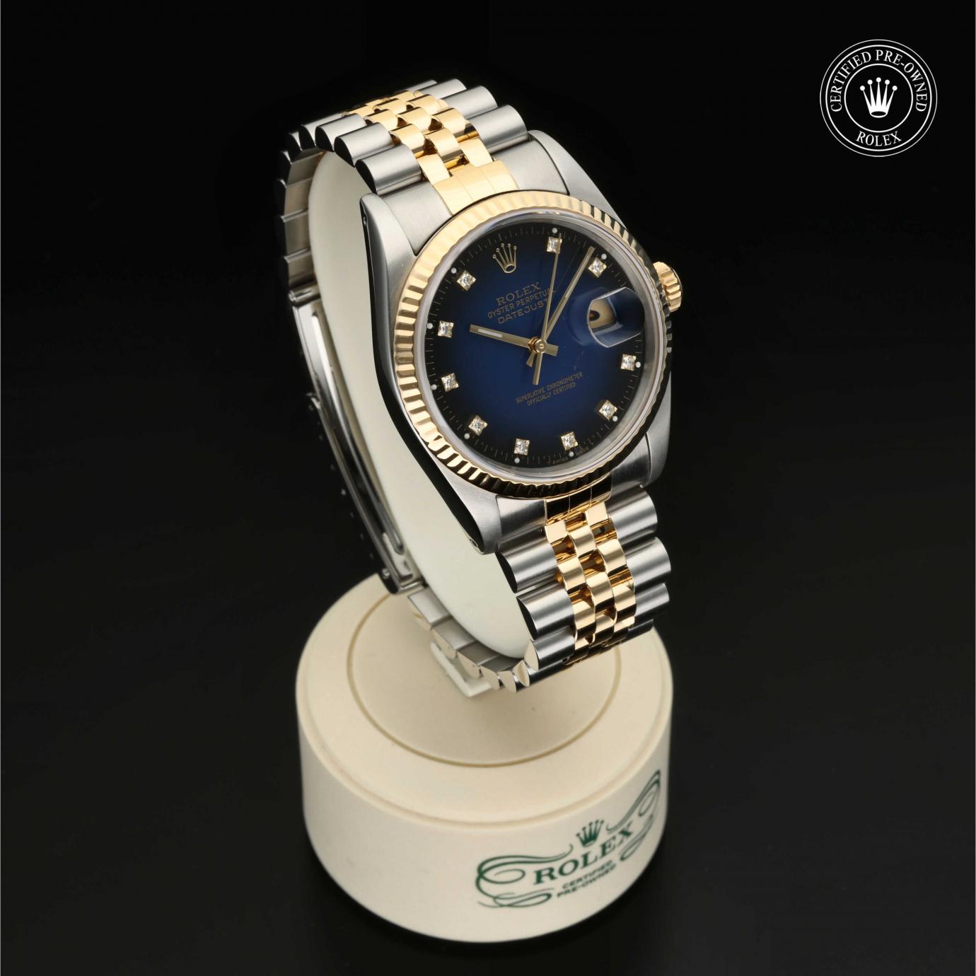 Bei ihrer Einführung im Jahr 1945 war sie das erste automatische und wasserdichte Armbandchronometer, das in einem Sichtfenster auf der 3‑Uhr-Position des Zifferblattes das Datum angibt.Die Datejust ist erhältlich in Edelstahl Oystersteel, als Version in Edelstahl Oystersteel und Gelb-, Weiß- oder Everose-Gold sowie als vollständig in 18 Karat Gold gefertigte Version mit einer großen Auswahl an Zifferblättern, Lünetten und Armbändern. Sie ist ebenfalls in Ausführungen mit Edelsteinbesatz erhältlich.