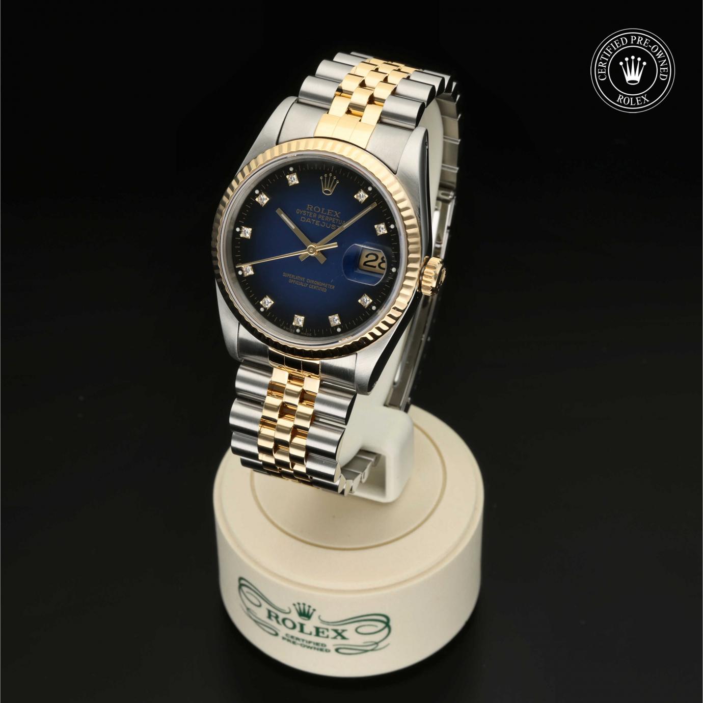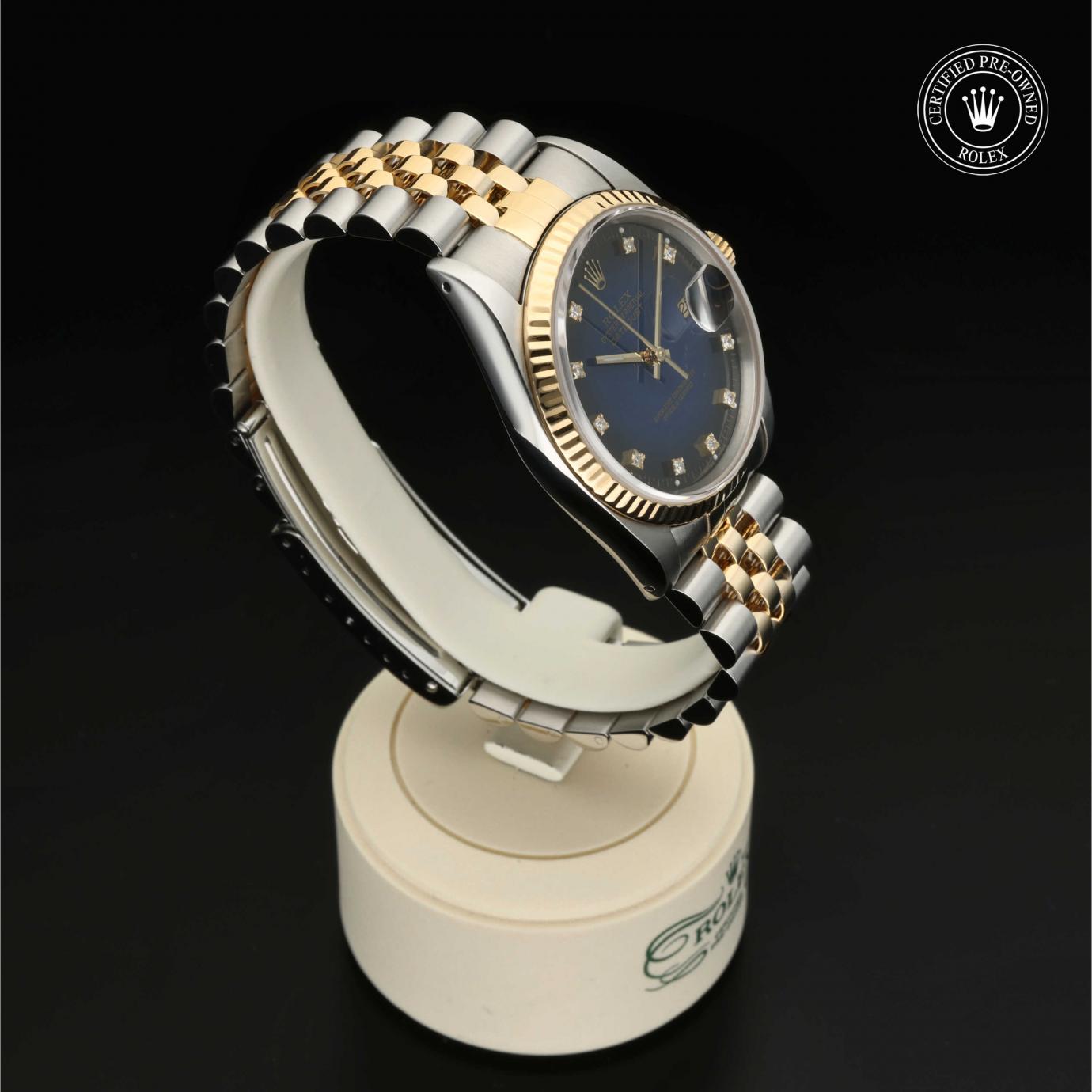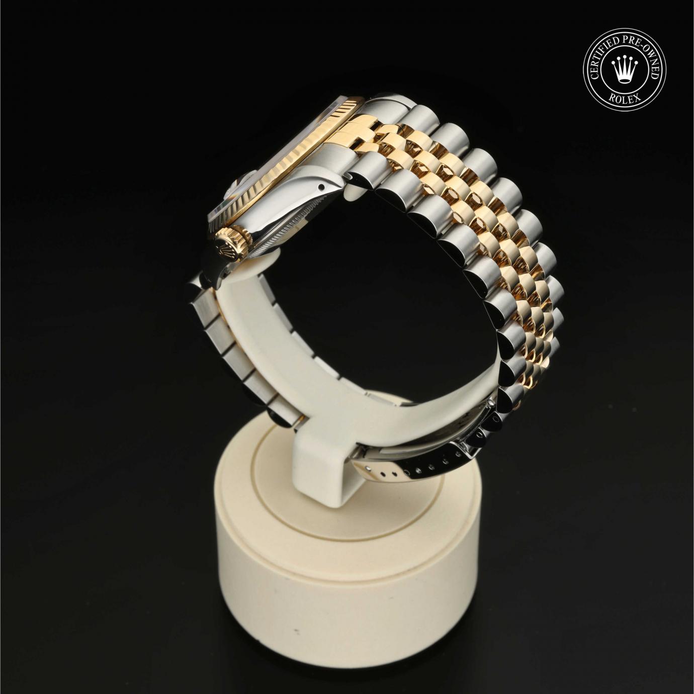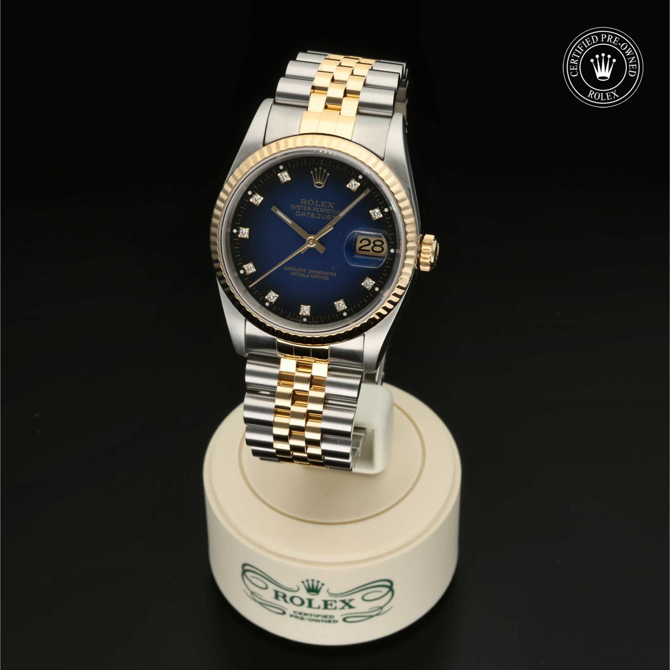Bei ihrer Einführung im Jahr 1945 war sie das erste automatische und wasserdichte Armbandchronometer, das in einem Sichtfenster auf der 3‑Uhr-Position des Zifferblattes das Datum angibt.Die Datejust ist erhältlich in Edelstahl Oystersteel, als Version in Edelstahl Oystersteel und Gelb-, Weiß- oder Everose-Gold sowie als vollständig in 18 Karat Gold gefertigte Version mit einer großen Auswahl an Zifferblättern, Lünetten und Armbändern. Sie ist ebenfalls in Ausführungen mit Edelsteinbesatz erhältlich.