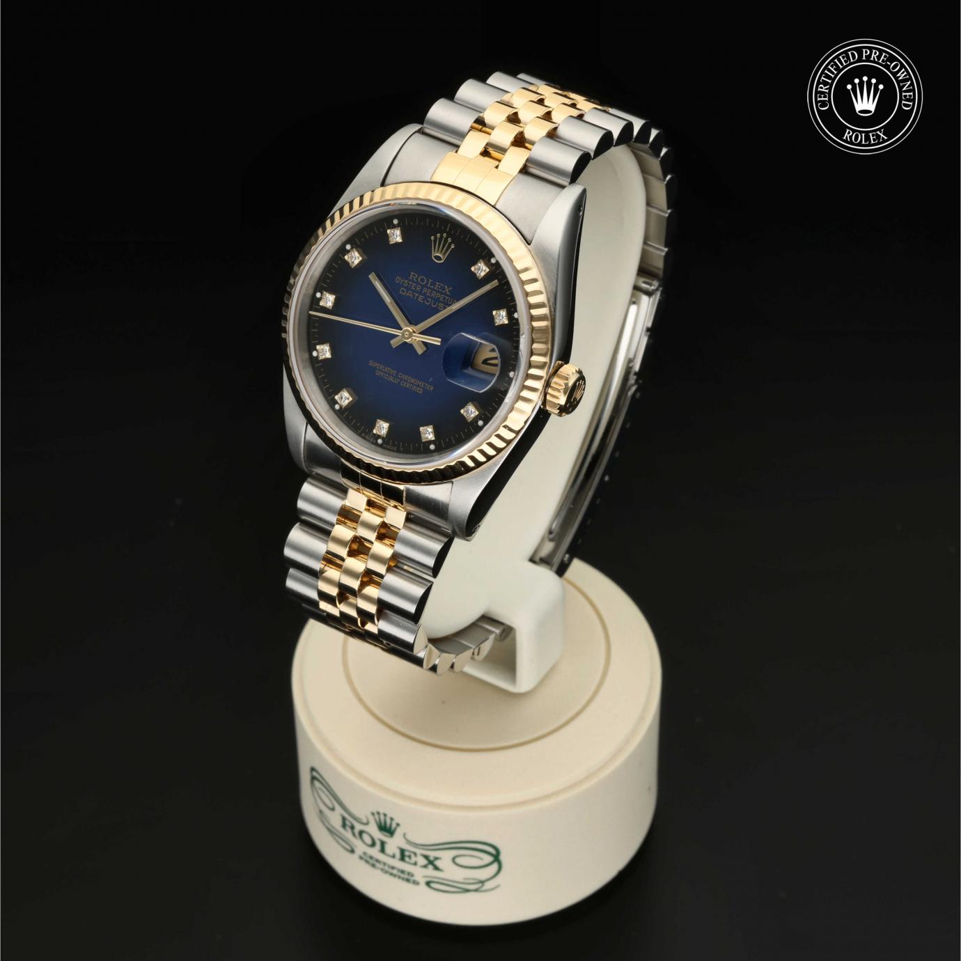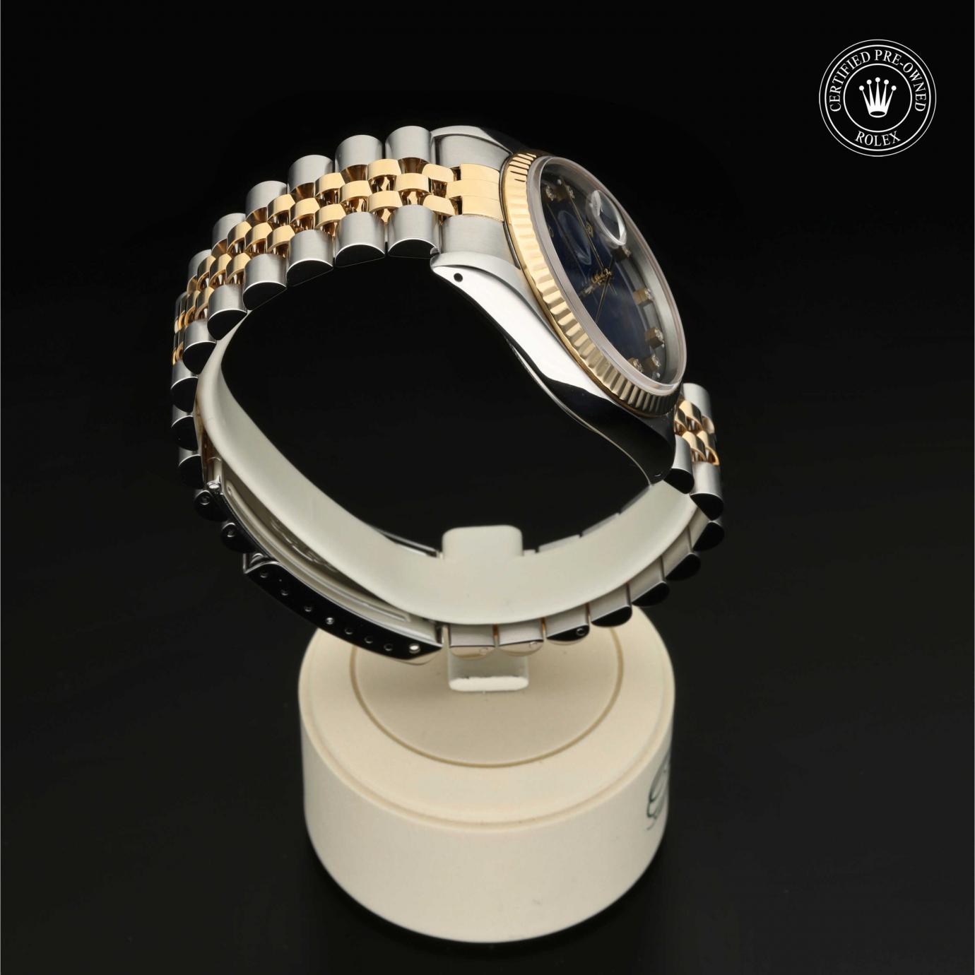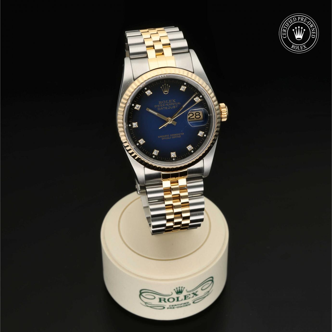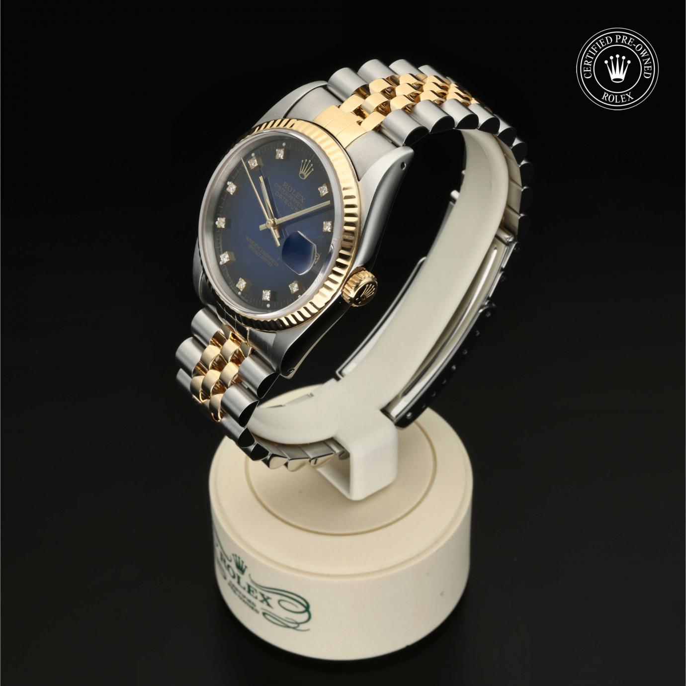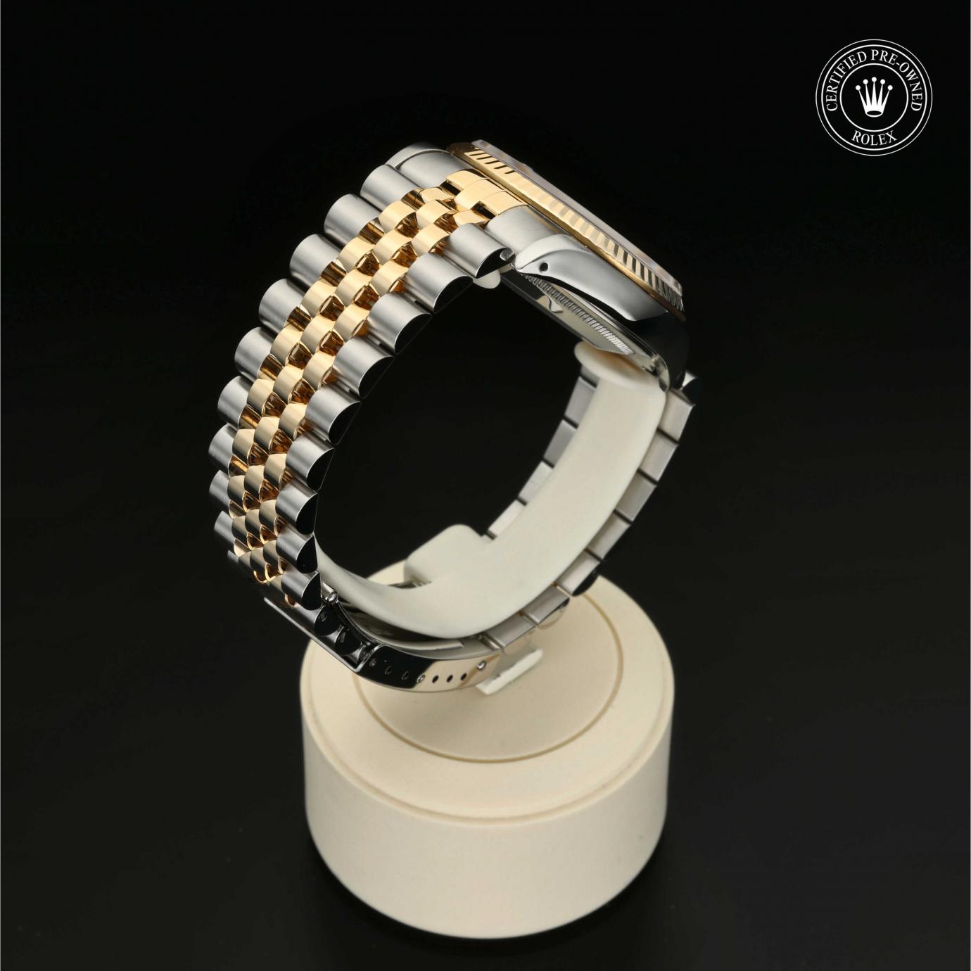 Bei ihrer Einführung im Jahr 1945 war sie das erste automatische und wasserdichte Armbandchronometer, das in einem Sichtfenster auf der 3‑Uhr-Position des Zifferblattes das Datum angibt.Die Datejust ist erhältlich in Edelstahl Oystersteel, als Version in Edelstahl Oystersteel und Gelb-, Weiß- oder Everose-Gold sowie als vollständig in 18 Karat Gold gefertigte Version mit einer großen Auswahl an Zifferblättern, Lünetten und Armbändern. Sie ist ebenfalls in Ausführungen mit Edelsteinbesatz erhältlich.