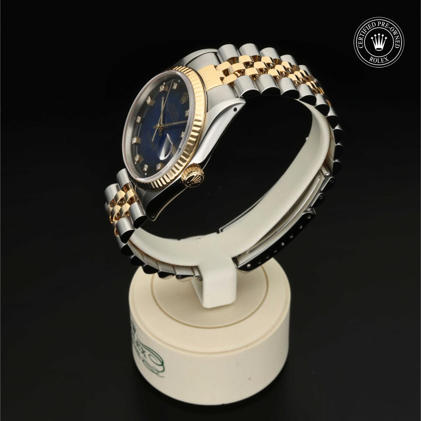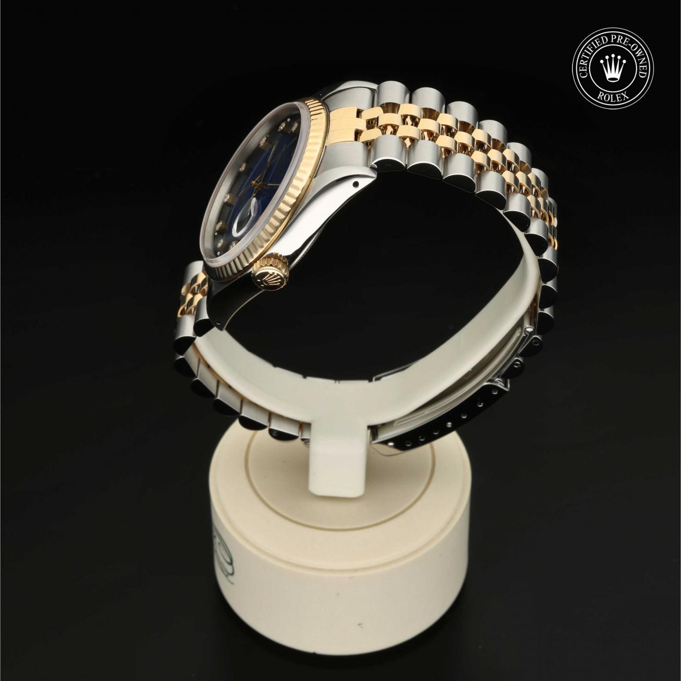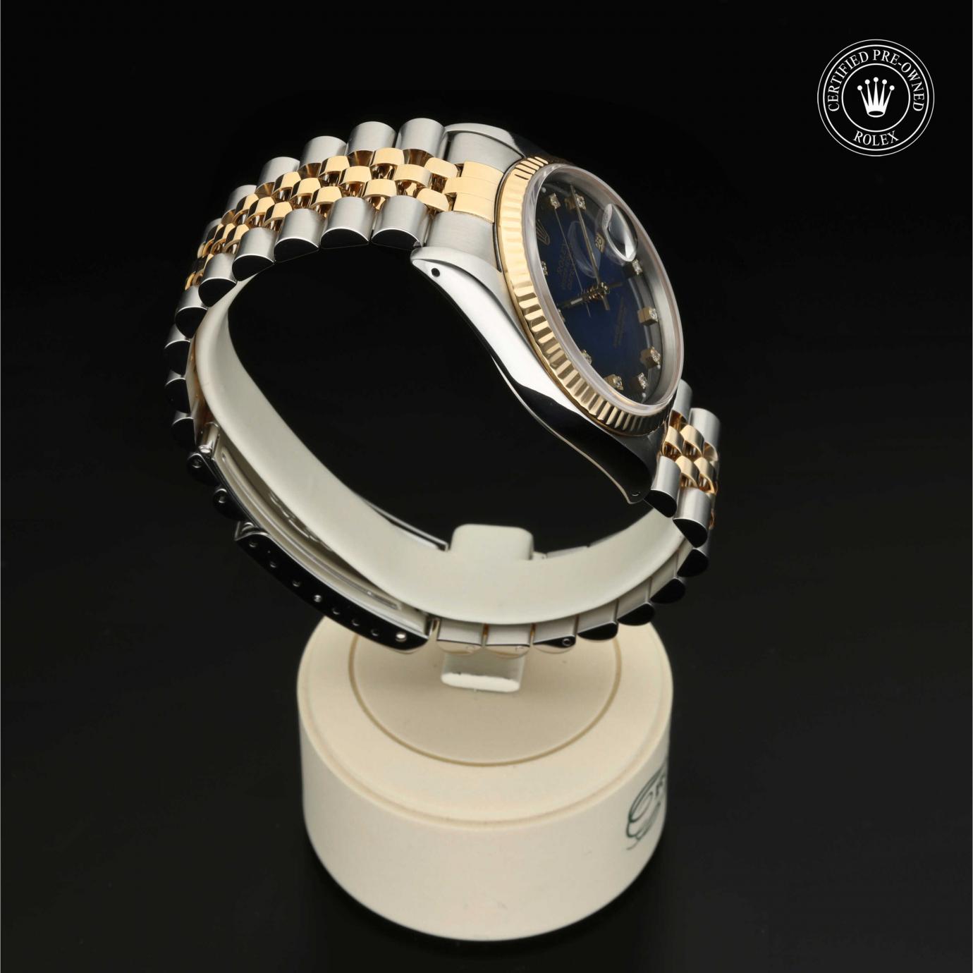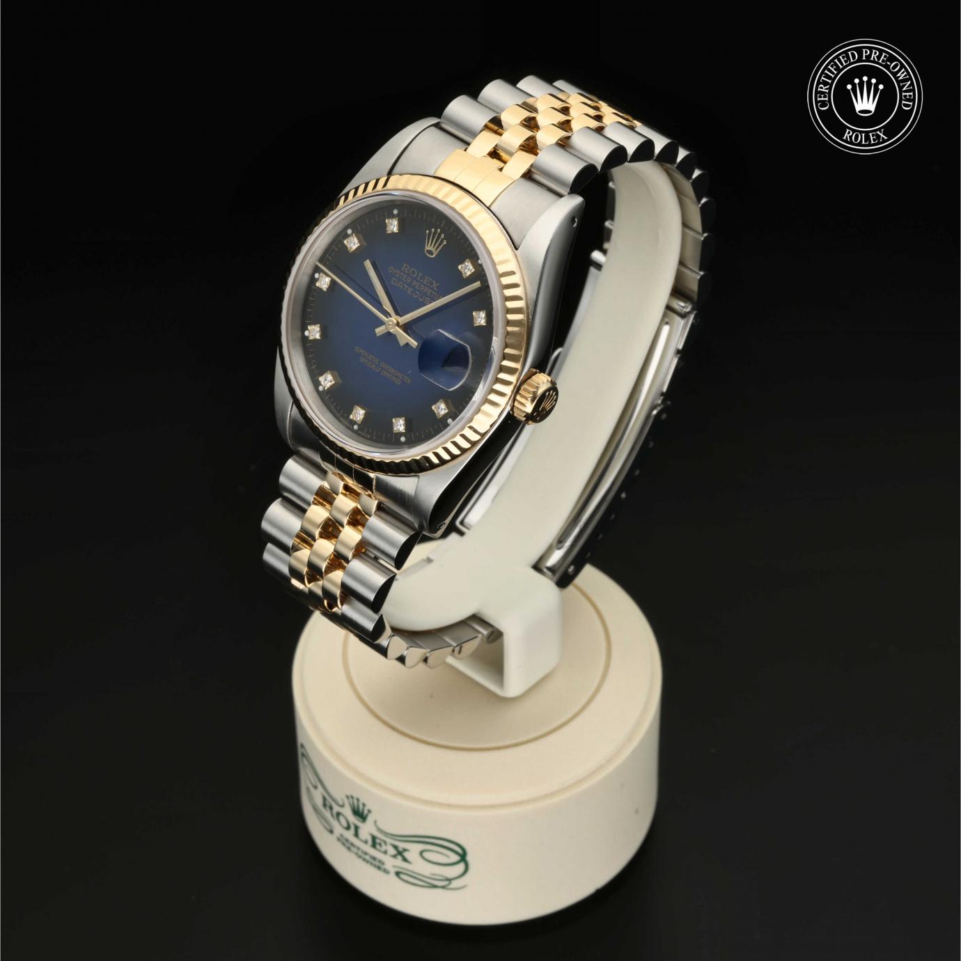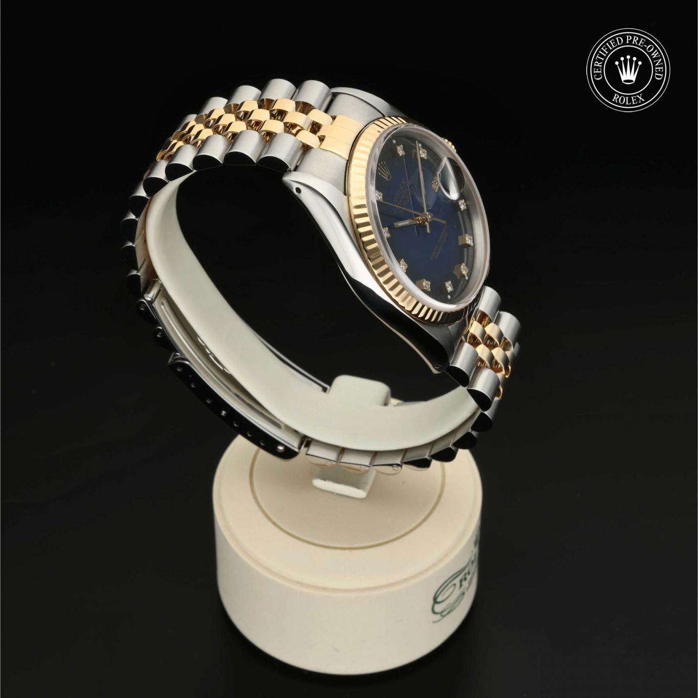 Bei ihrer Einführung im Jahr 1945 war sie das erste automatische und wasserdichte Armbandchronometer, das in einem Sichtfenster auf der 3‑Uhr-Position des Zifferblattes das Datum angibt.Die Datejust ist erhältlich in Edelstahl Oystersteel, als Version in Edelstahl Oystersteel und Gelb-, Weiß- oder Everose-Gold sowie als vollständig in 18 Karat Gold gefertigte Version mit einer großen Auswahl an Zifferblättern, Lünetten und Armbändern. Sie ist ebenfalls in Ausführungen mit Edelsteinbesatz erhältlich.
