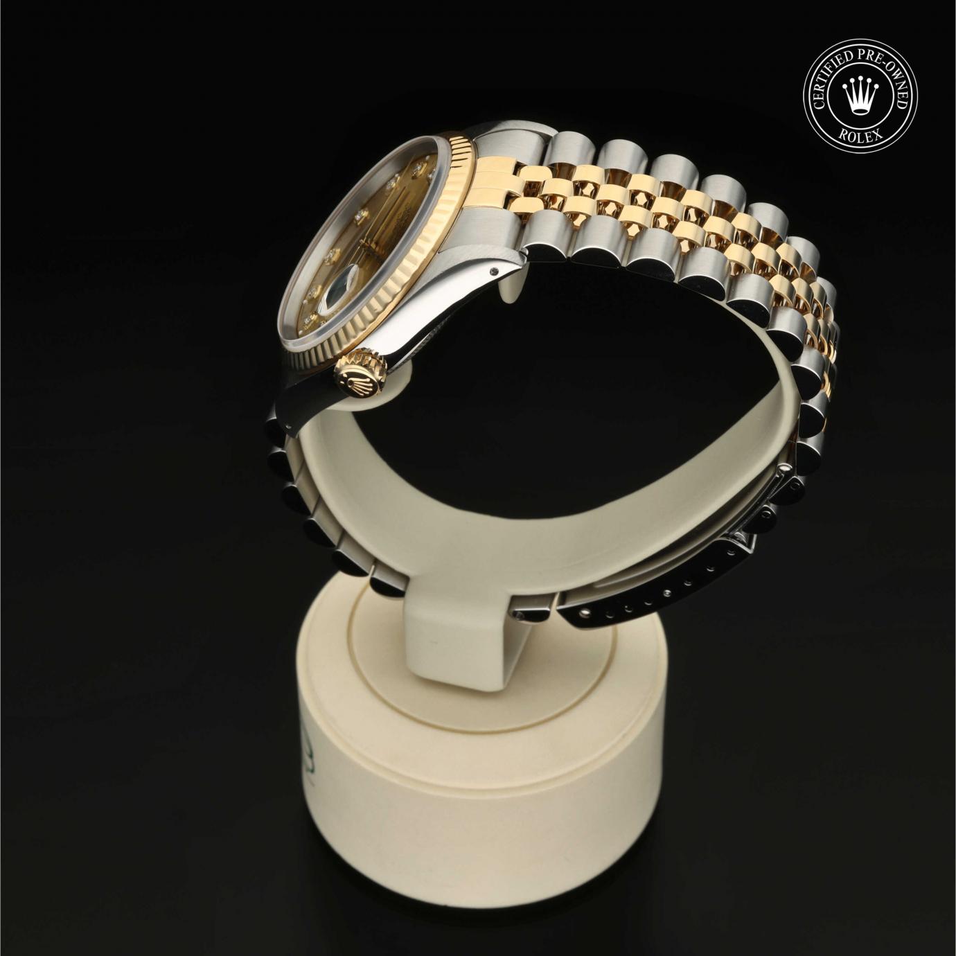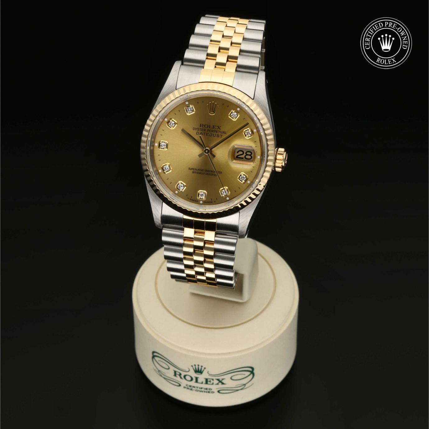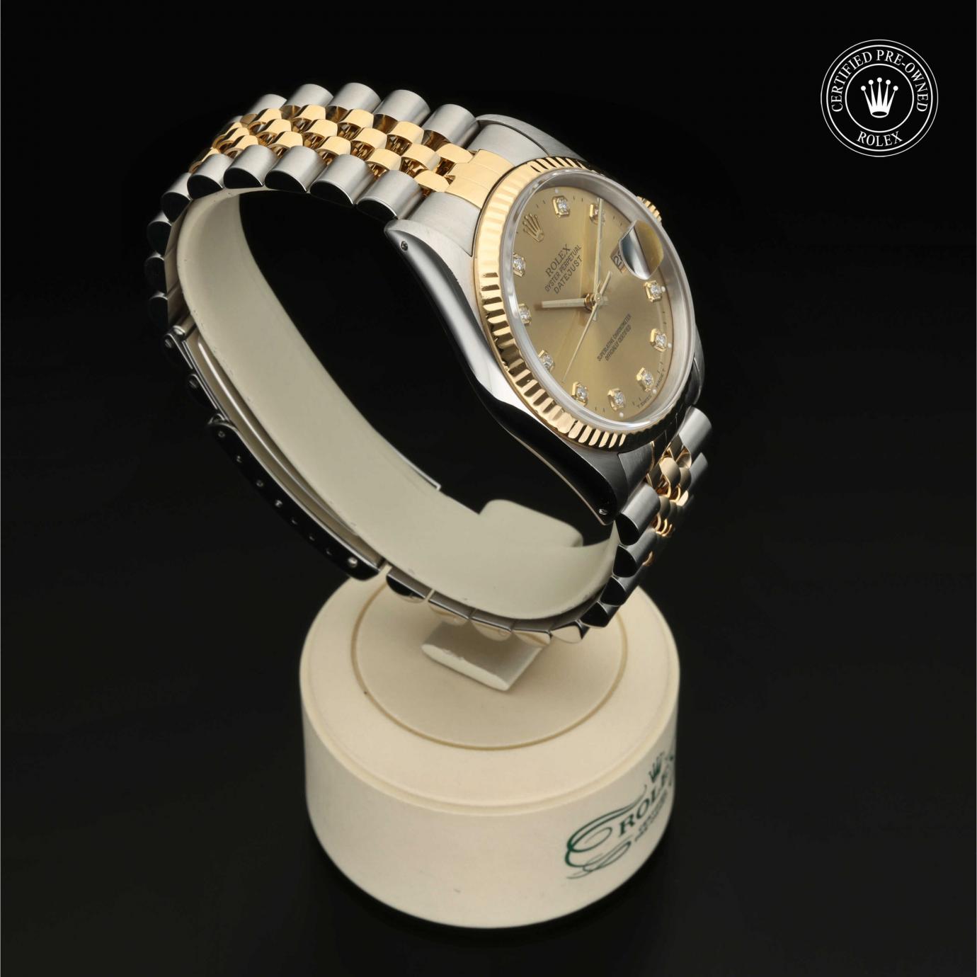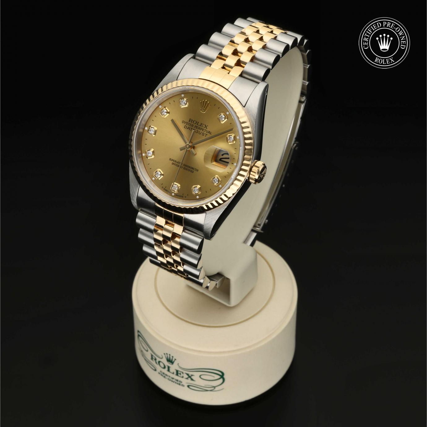Bei ihrer Einführung im Jahr 1945 war sie das erste automatische und wasserdichte Armbandchronometer, das in einem Sichtfenster auf der 3‑Uhr-Position des Zifferblattes das Datum angibt.Die Datejust ist erhältlich in Edelstahl Oystersteel, als Version in Edelstahl Oystersteel und Gelb-, Weiß- oder Everose-Gold sowie als vollständig in 18 Karat Gold gefertigte Version mit einer großen Auswahl an Zifferblättern, Lünetten und Armbändern. Sie ist ebenfalls in Ausführungen mit Edelsteinbesatz erhältlich.