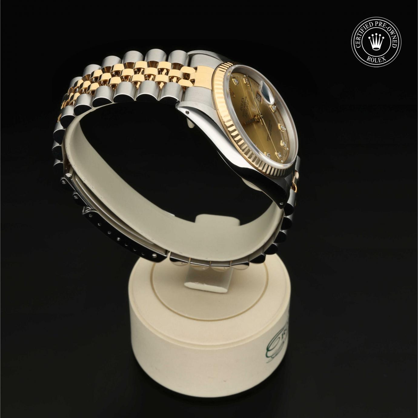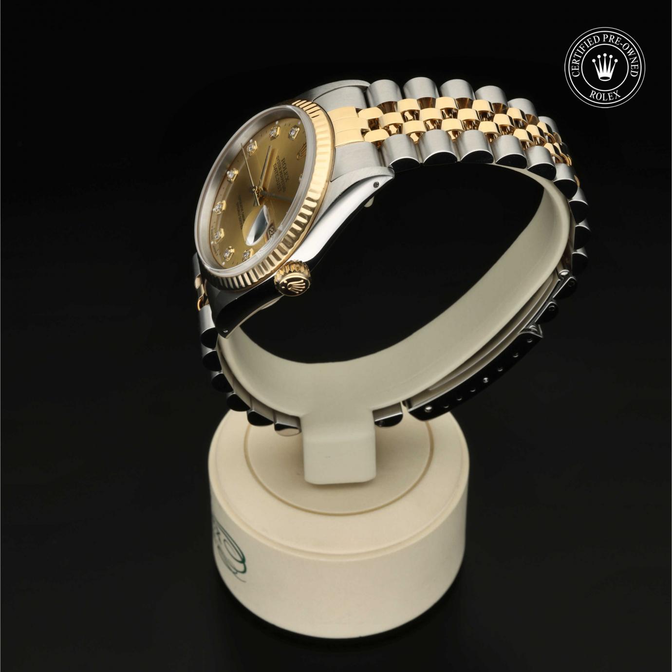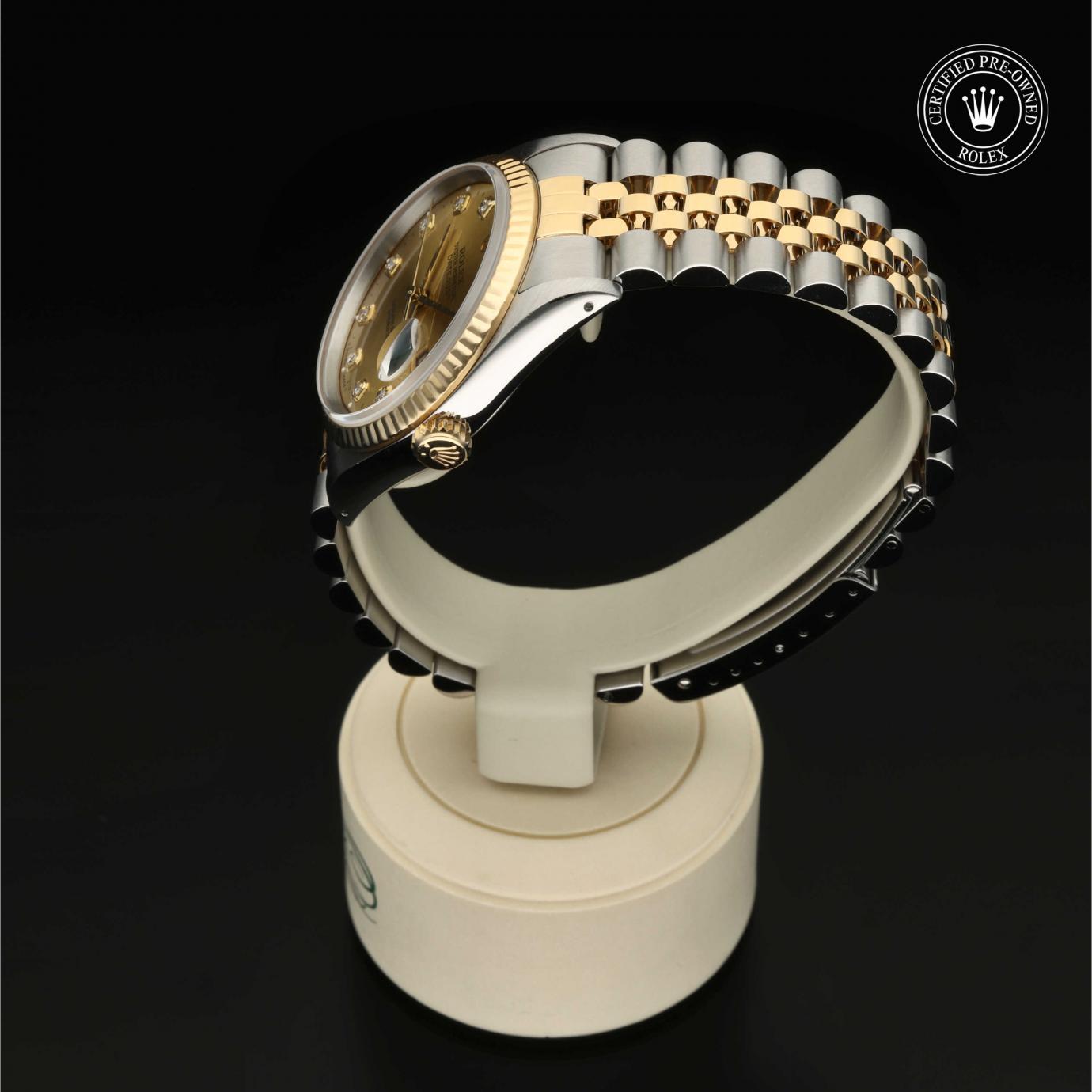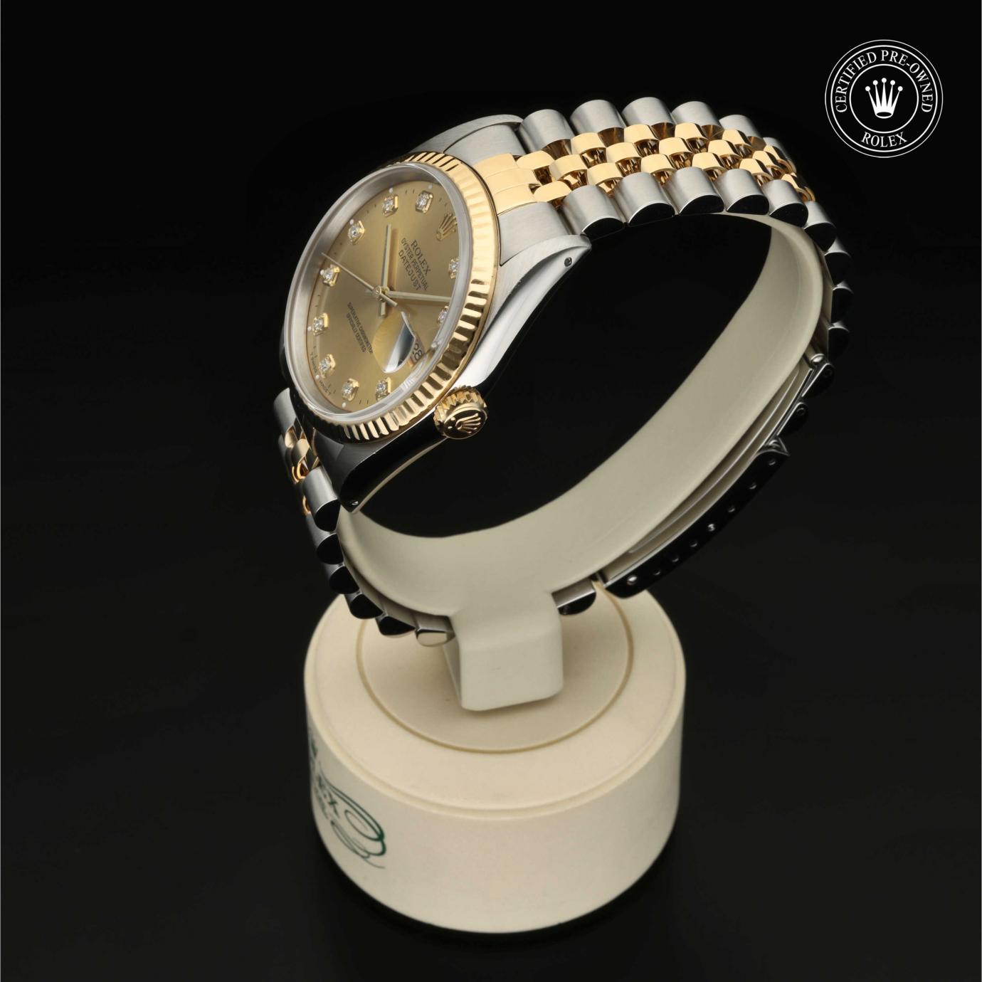 Bei ihrer Einführung im Jahr 1945 war sie das erste automatische und wasserdichte Armbandchronometer, das in einem Sichtfenster auf der 3‑Uhr-Position des Zifferblattes das Datum angibt.Die Datejust ist erhältlich in Edelstahl Oystersteel, als Version in Edelstahl Oystersteel und Gelb-, Weiß- oder Everose-Gold sowie als vollständig in 18 Karat Gold gefertigte Version mit einer großen Auswahl an Zifferblättern, Lünetten und Armbändern. Sie ist ebenfalls in Ausführungen mit Edelsteinbesatz erhältlich.