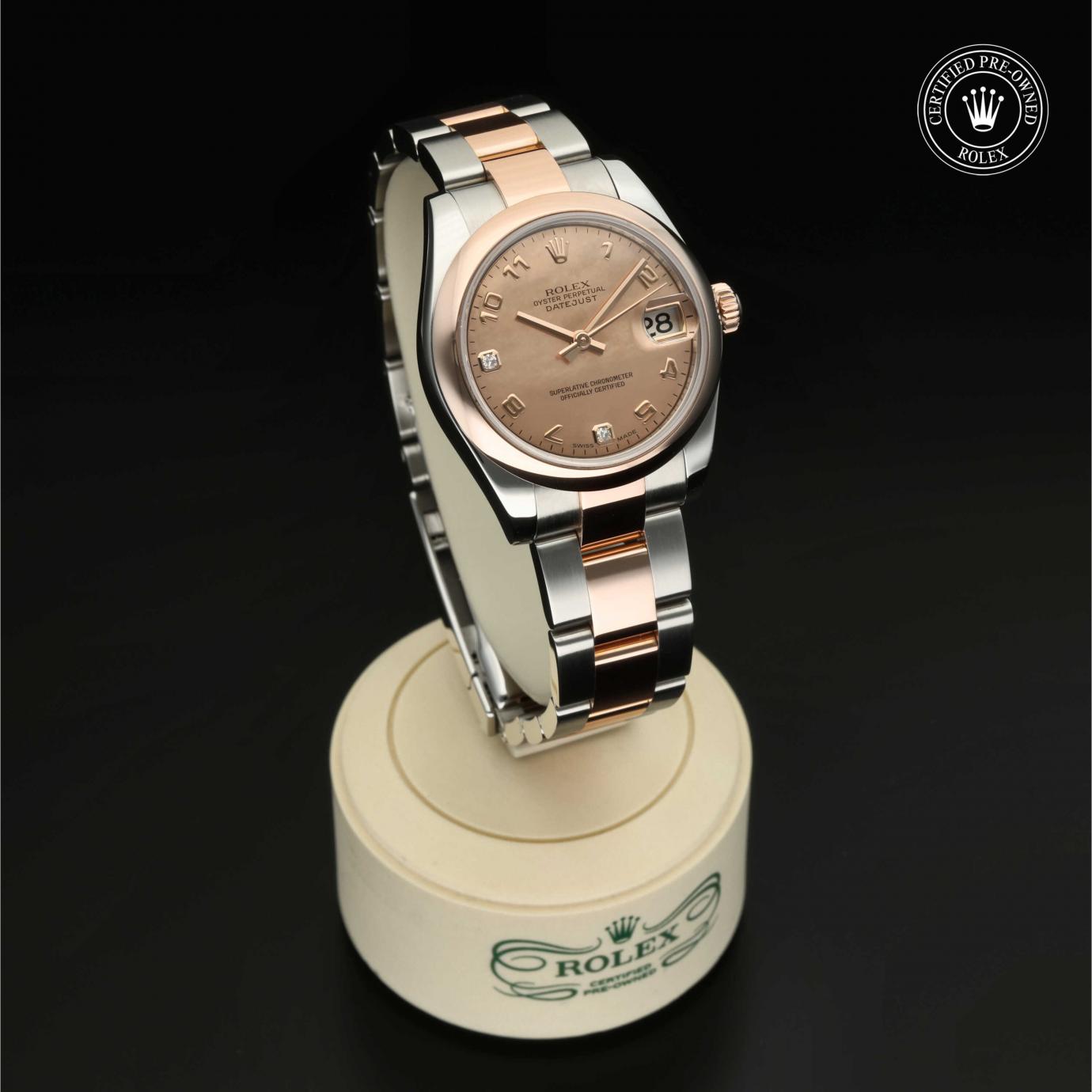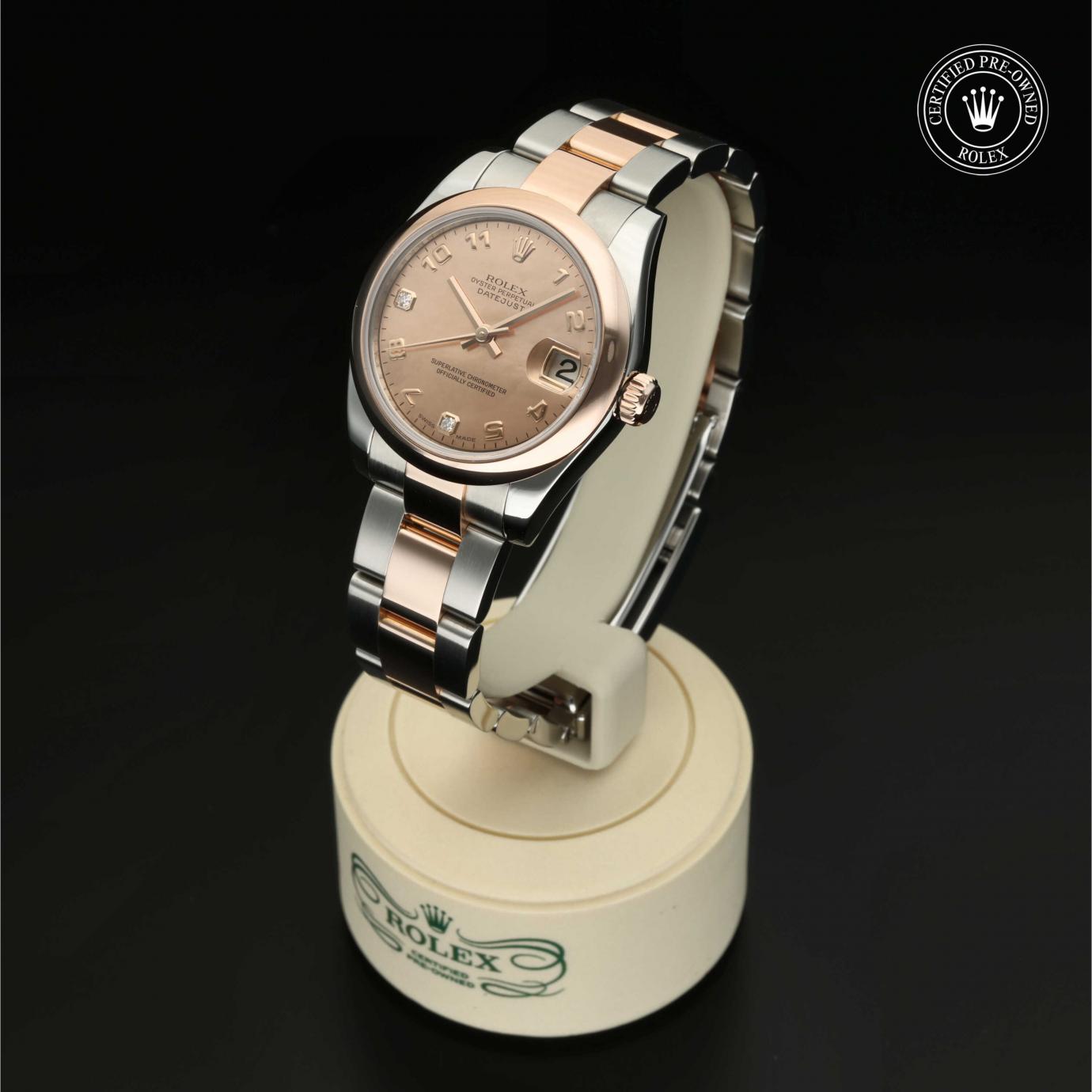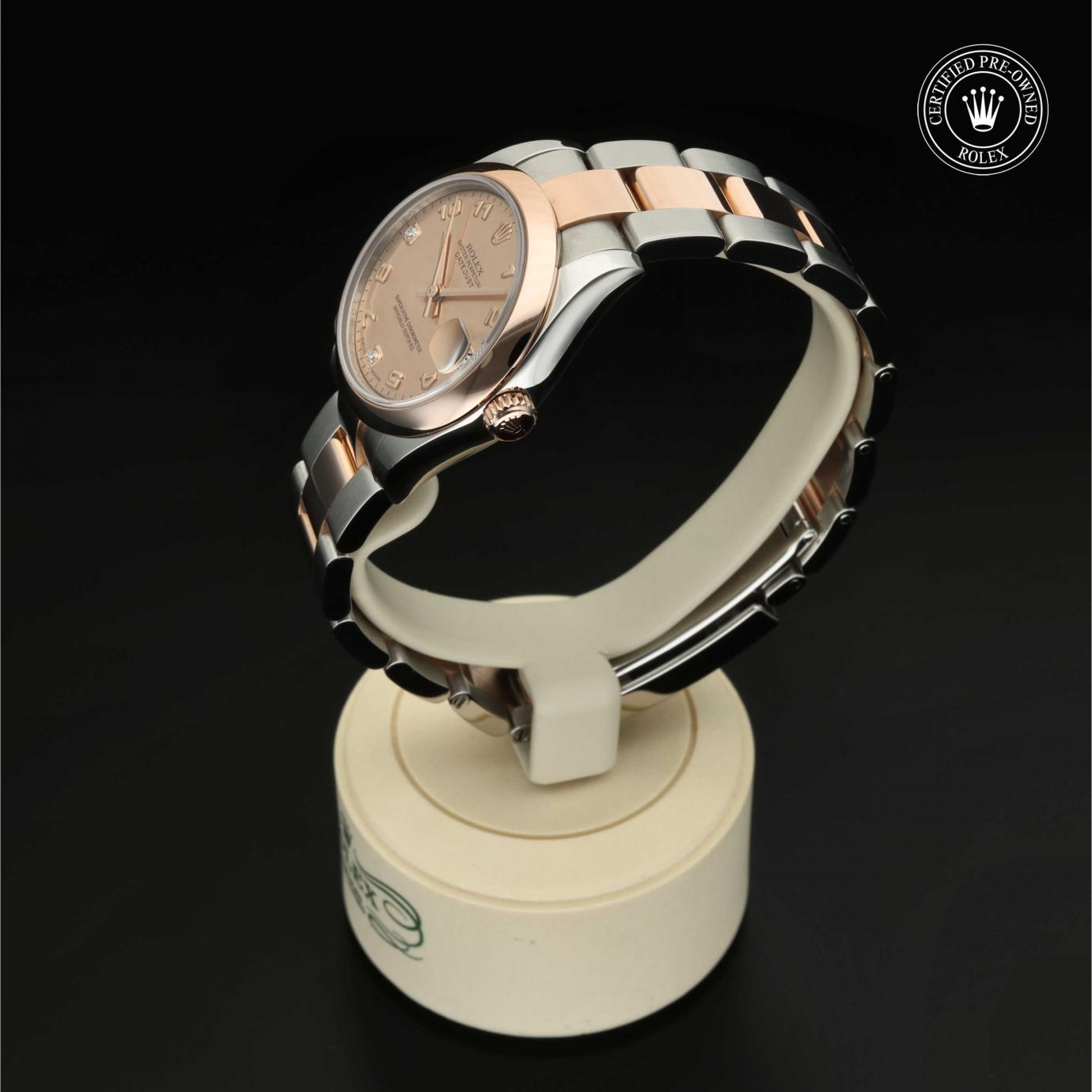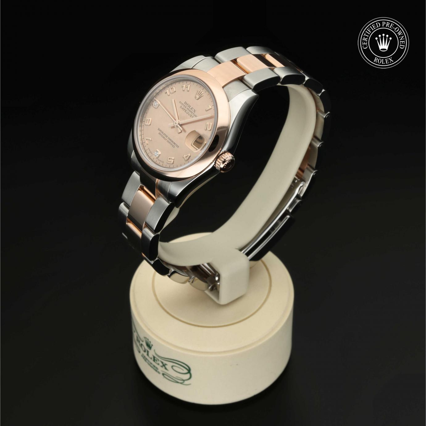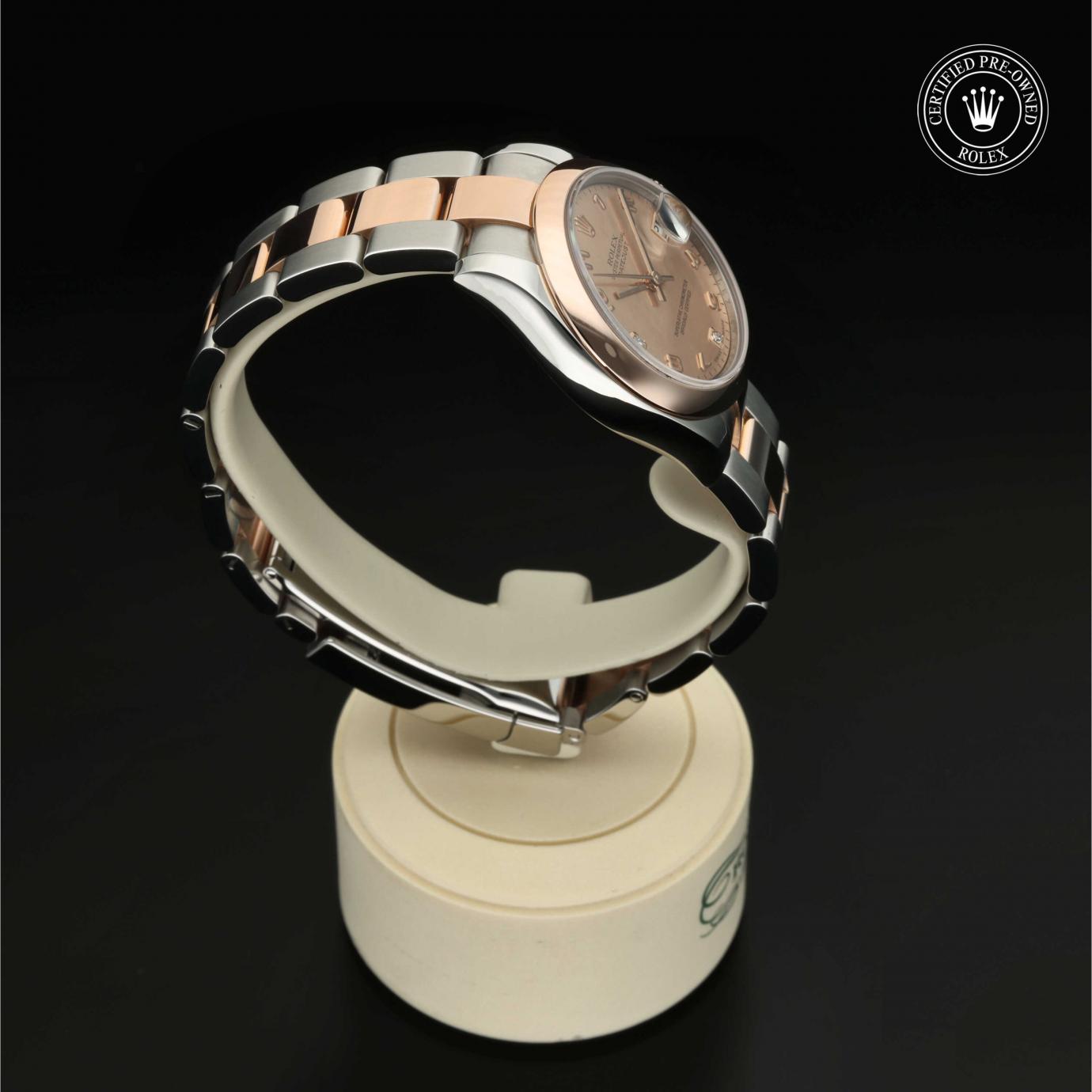 Bei ihrer Einführung im Jahr 1945 war sie das erste automatische und wasserdichte Armbandchronometer, das in einem Sichtfenster auf der 3‑Uhr-Position des Zifferblattes das Datum angibt.Die Datejust ist erhältlich in Edelstahl Oystersteel, als Version in Edelstahl Oystersteel und Gelb-, Weiß- oder Everose-Gold sowie als vollständig in 18 Karat Gold gefertigte Version mit einer großen Auswahl an Zifferblättern, Lünetten und Armbändern. Sie ist ebenfalls in Ausführungen mit Edelsteinbesatz erhältlich.