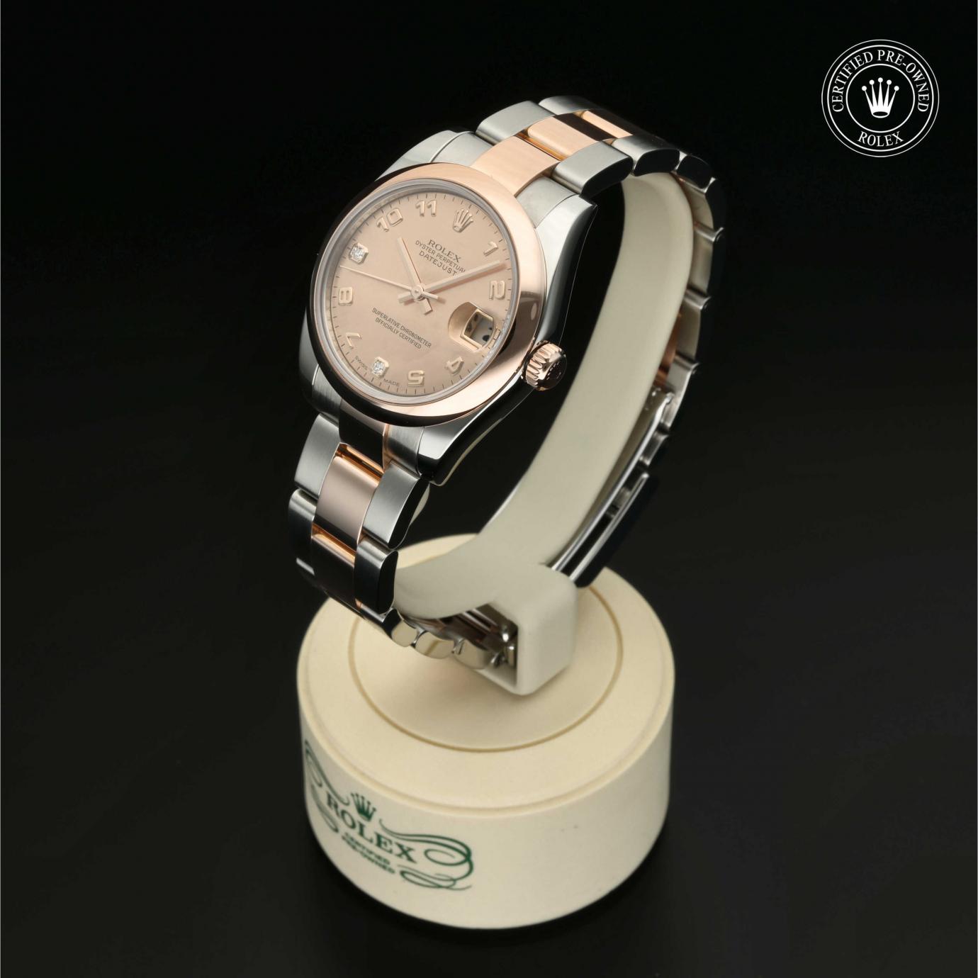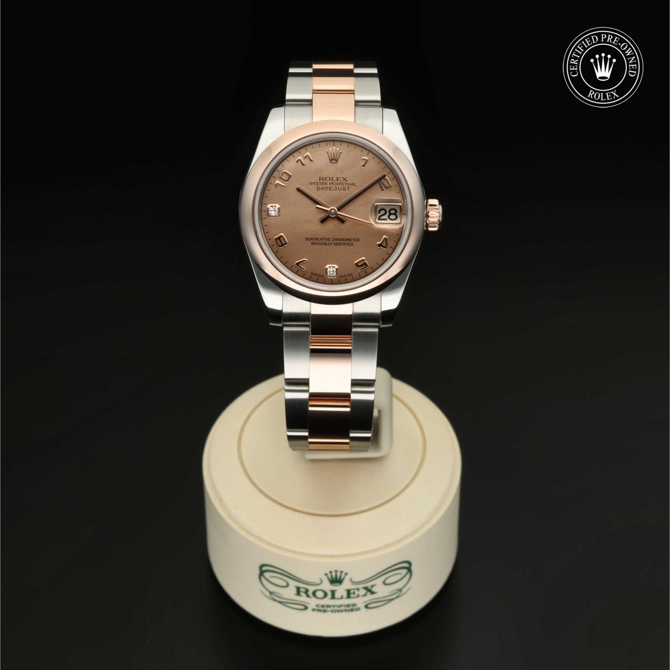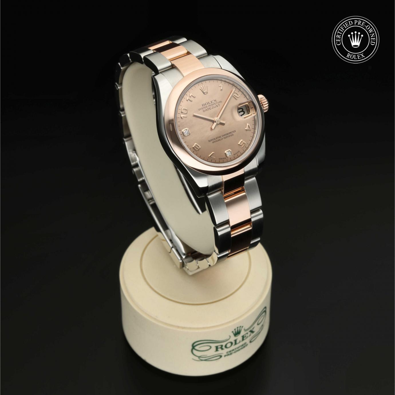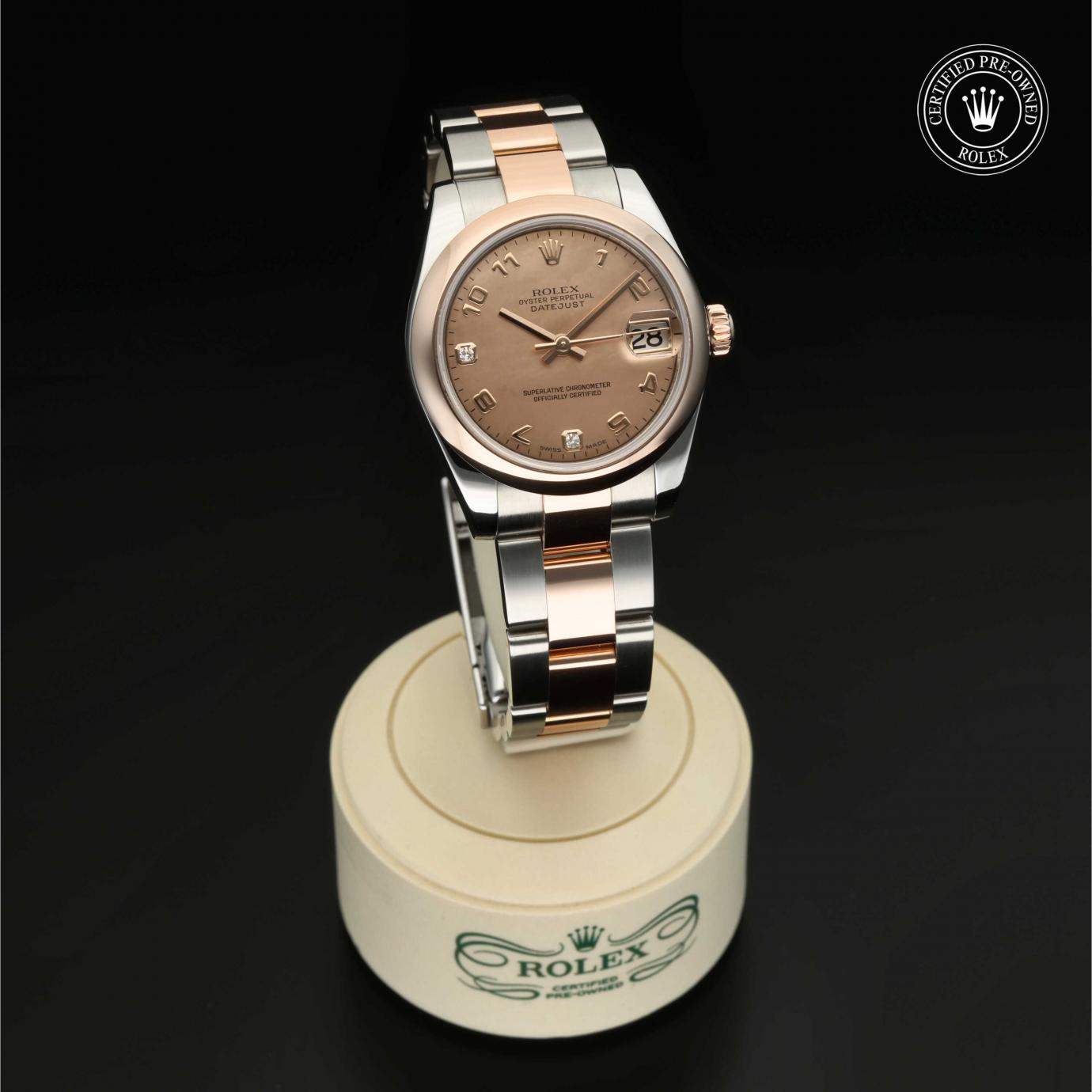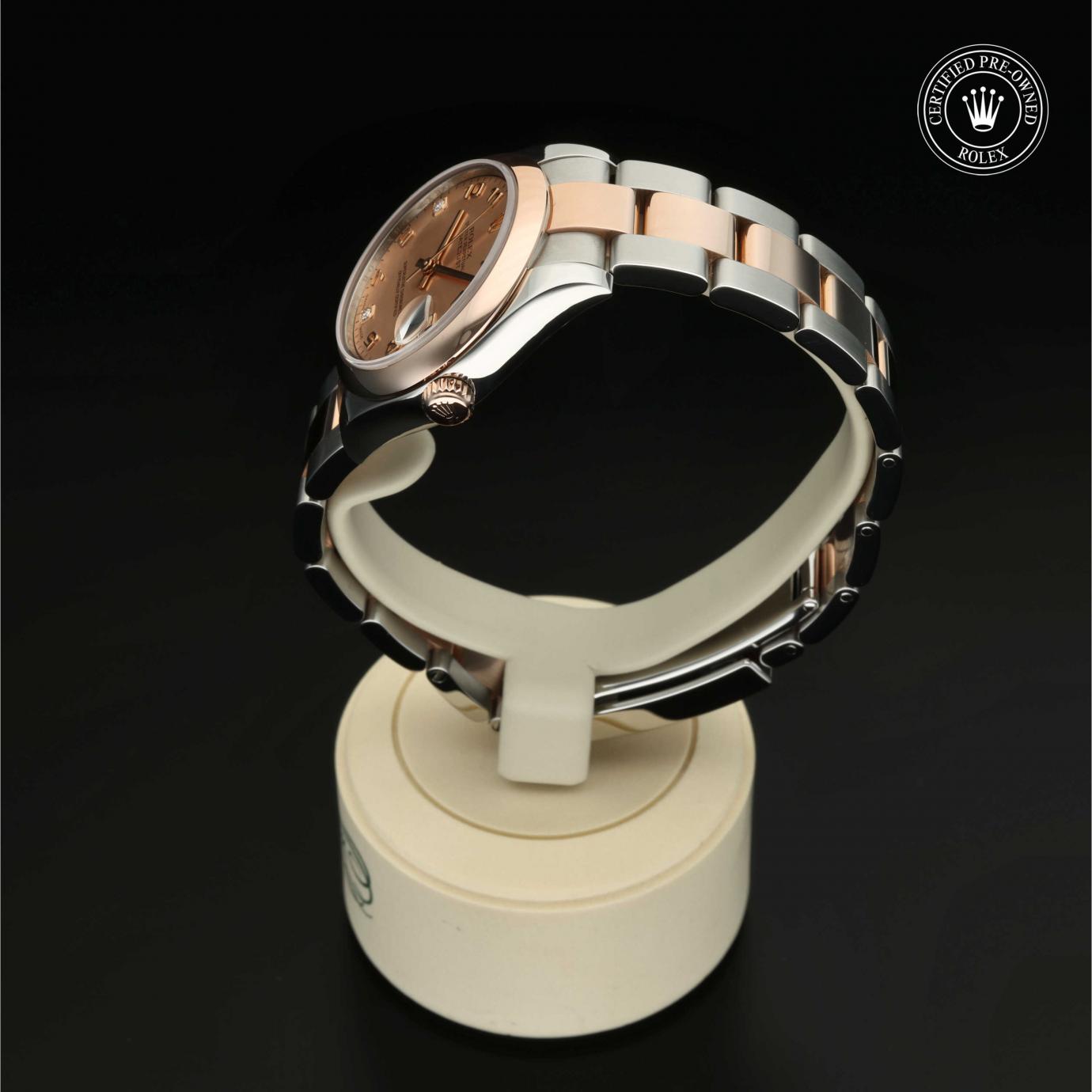 Bei ihrer Einführung im Jahr 1945 war sie das erste automatische und wasserdichte Armbandchronometer, das in einem Sichtfenster auf der 3‑Uhr-Position des Zifferblattes das Datum angibt.Die Datejust ist erhältlich in Edelstahl Oystersteel, als Version in Edelstahl Oystersteel und Gelb-, Weiß- oder Everose-Gold sowie als vollständig in 18 Karat Gold gefertigte Version mit einer großen Auswahl an Zifferblättern, Lünetten und Armbändern. Sie ist ebenfalls in Ausführungen mit Edelsteinbesatz erhältlich.