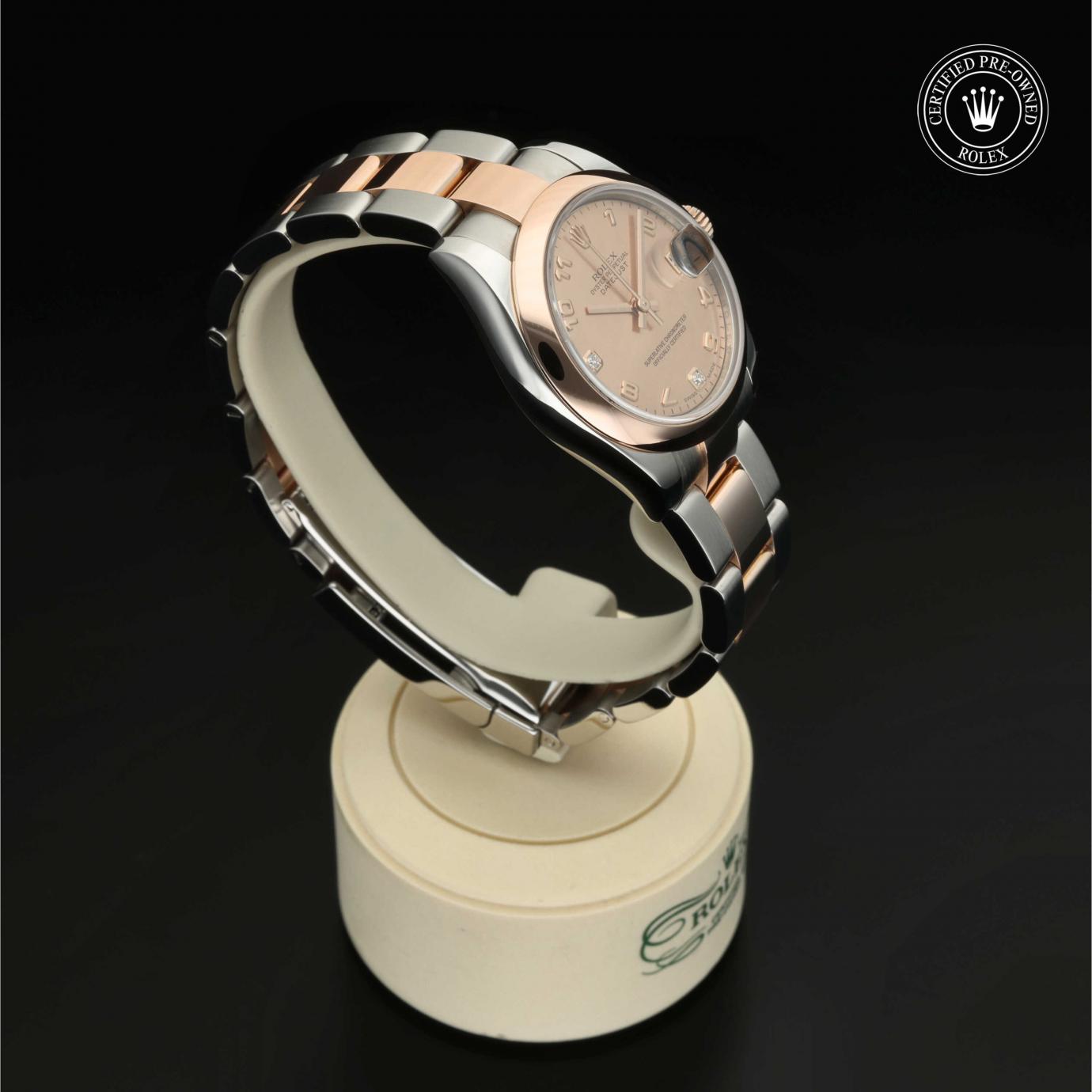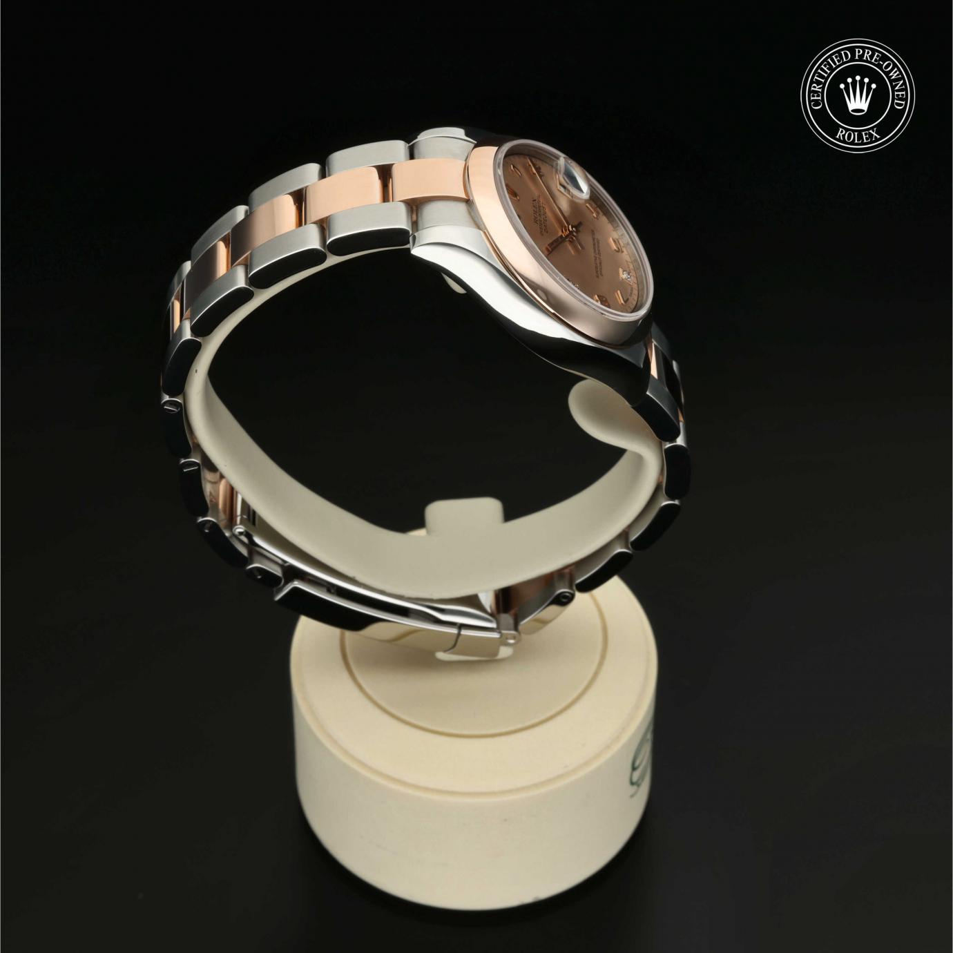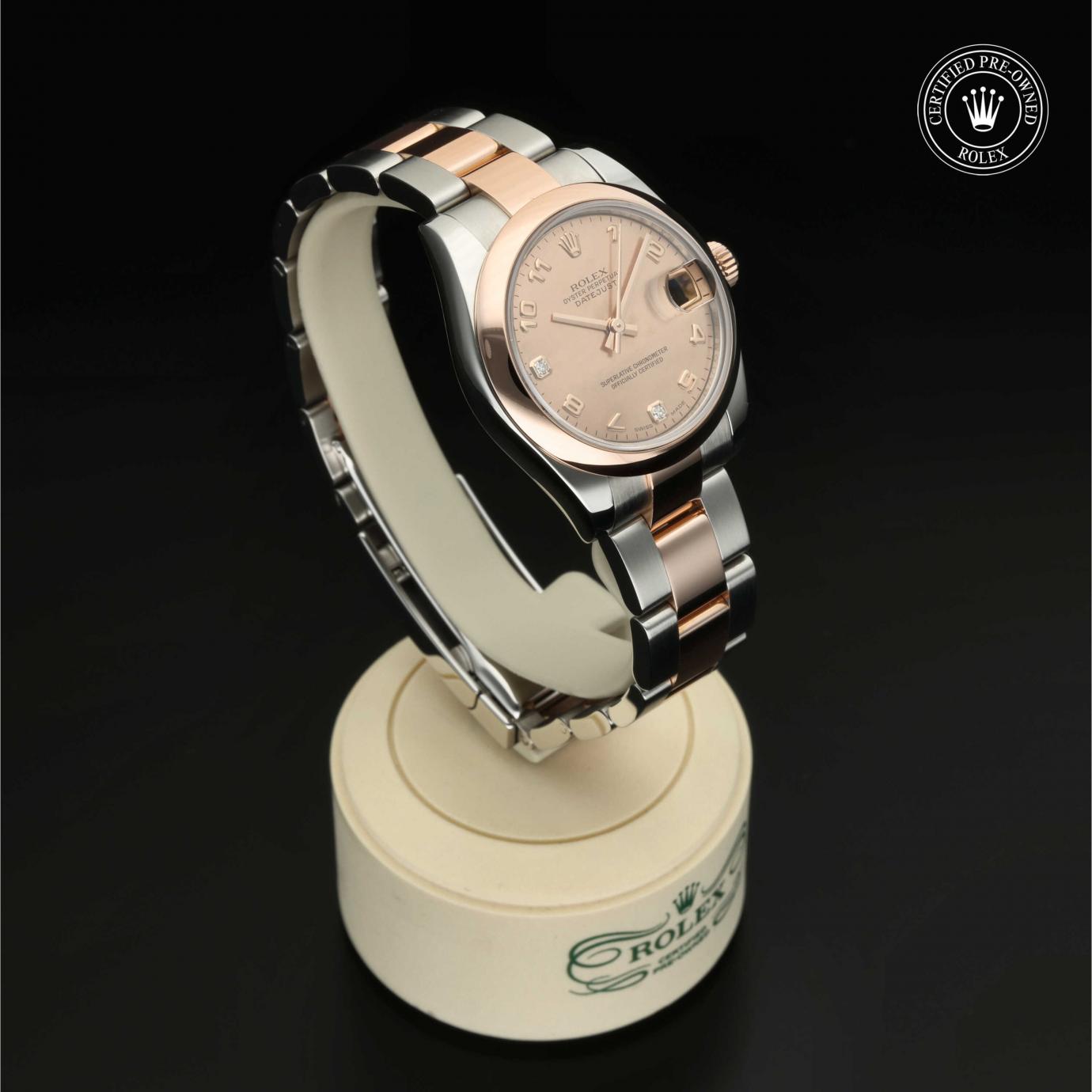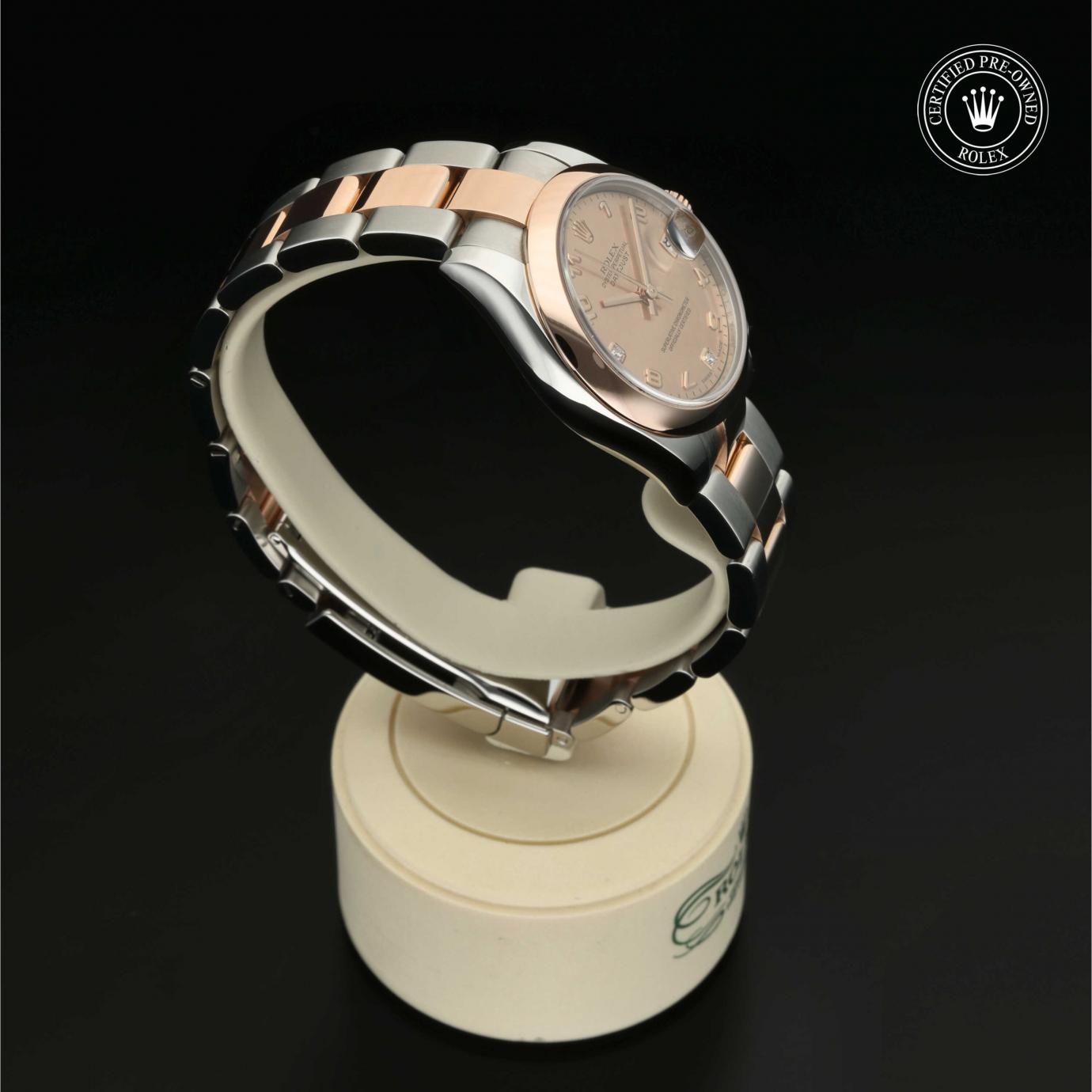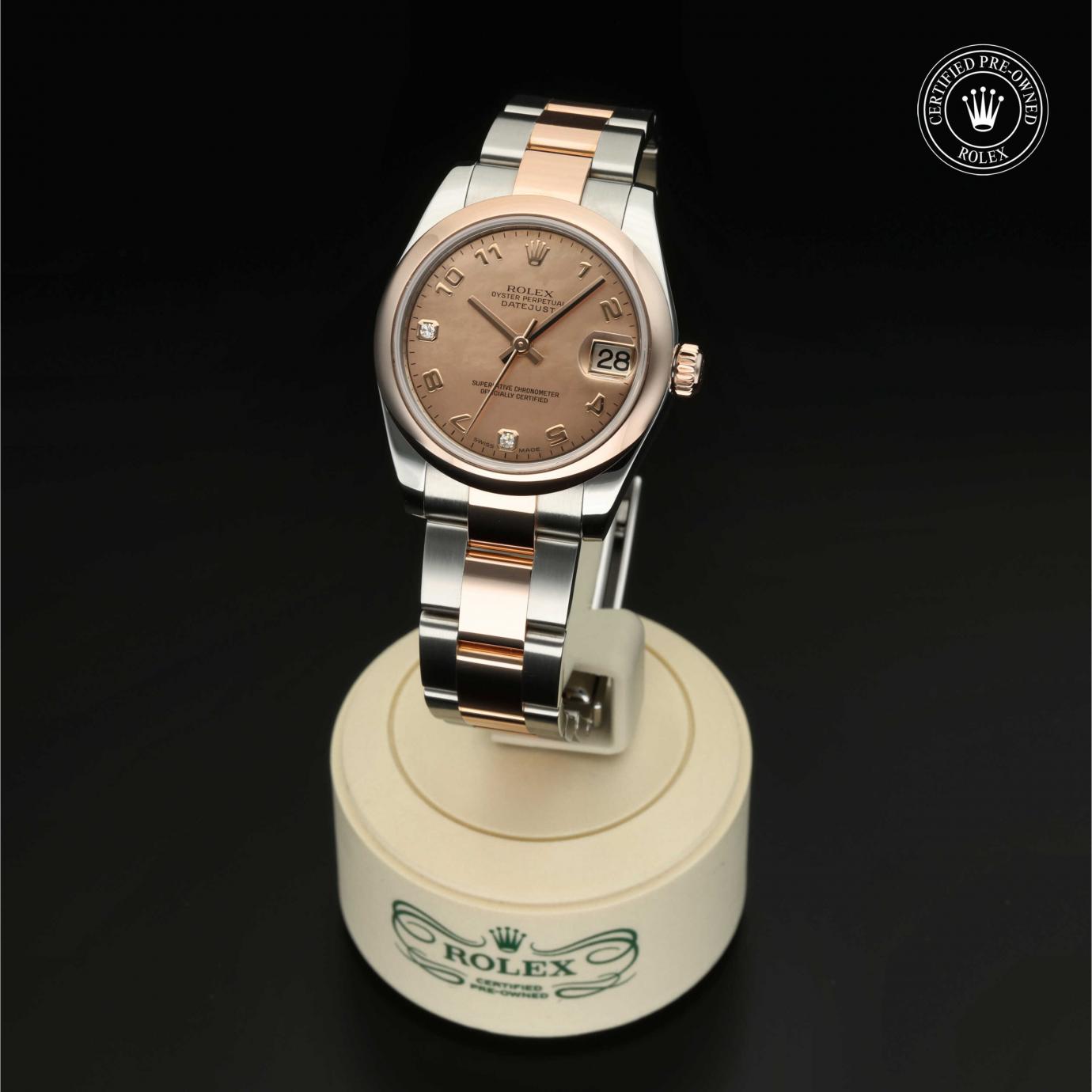 Bei ihrer Einführung im Jahr 1945 war sie das erste automatische und wasserdichte Armbandchronometer, das in einem Sichtfenster auf der 3‑Uhr-Position des Zifferblattes das Datum angibt.Die Datejust ist erhältlich in Edelstahl Oystersteel, als Version in Edelstahl Oystersteel und Gelb-, Weiß- oder Everose-Gold sowie als vollständig in 18 Karat Gold gefertigte Version mit einer großen Auswahl an Zifferblättern, Lünetten und Armbändern. Sie ist ebenfalls in Ausführungen mit Edelsteinbesatz erhältlich.