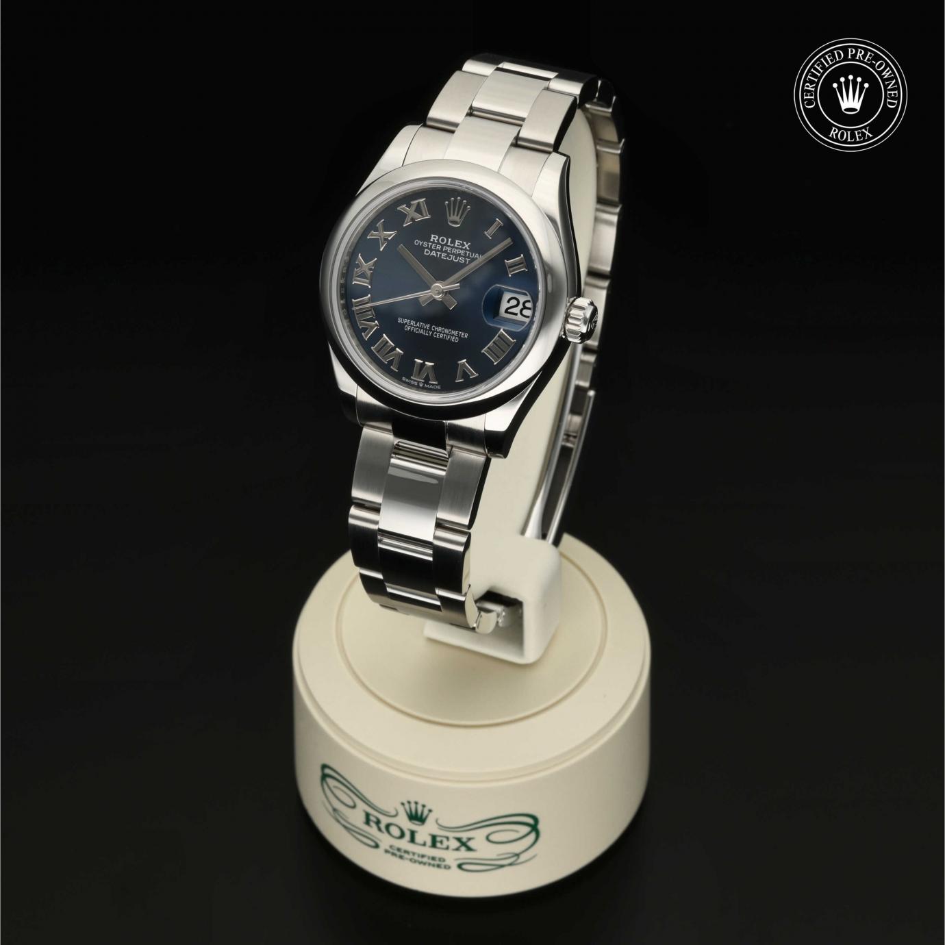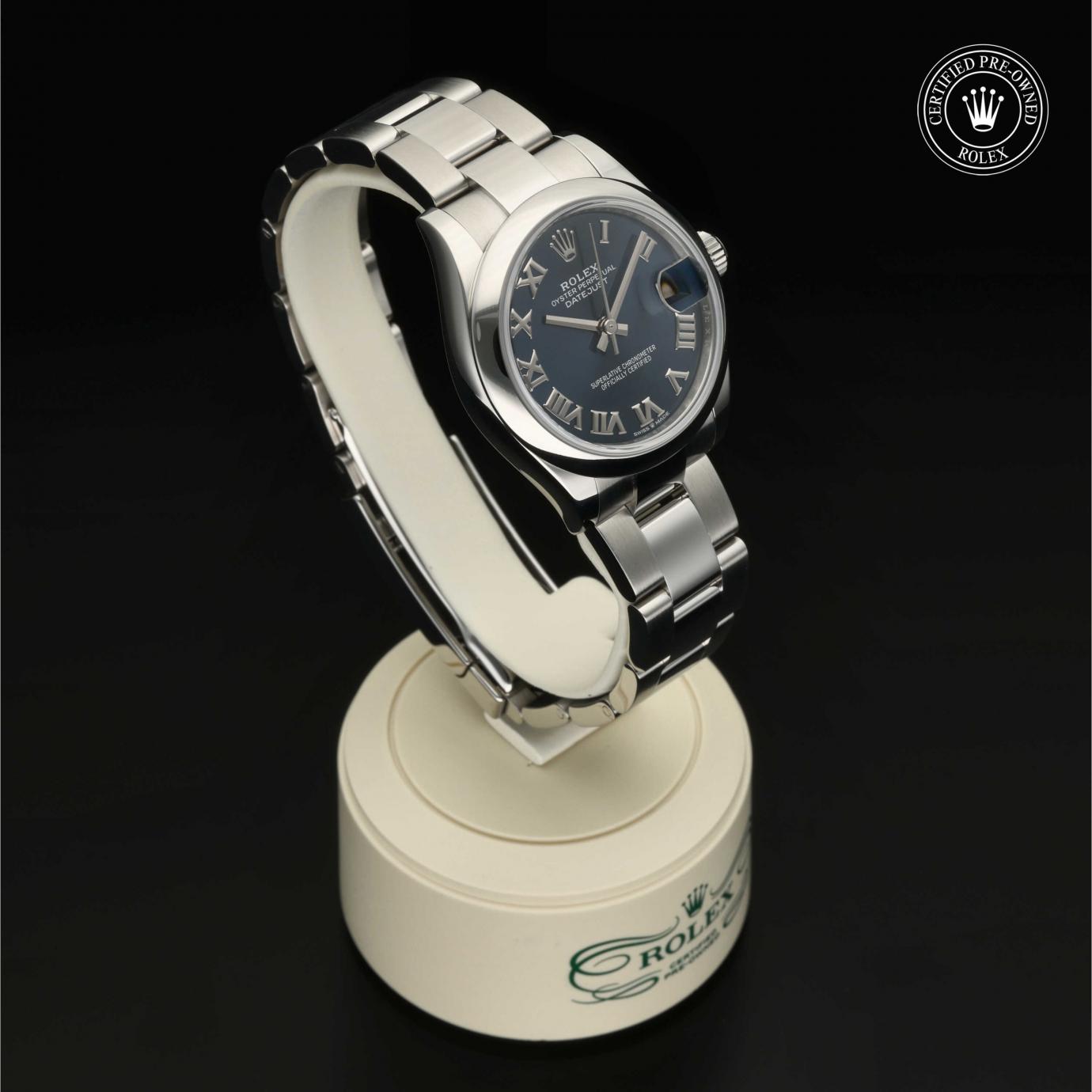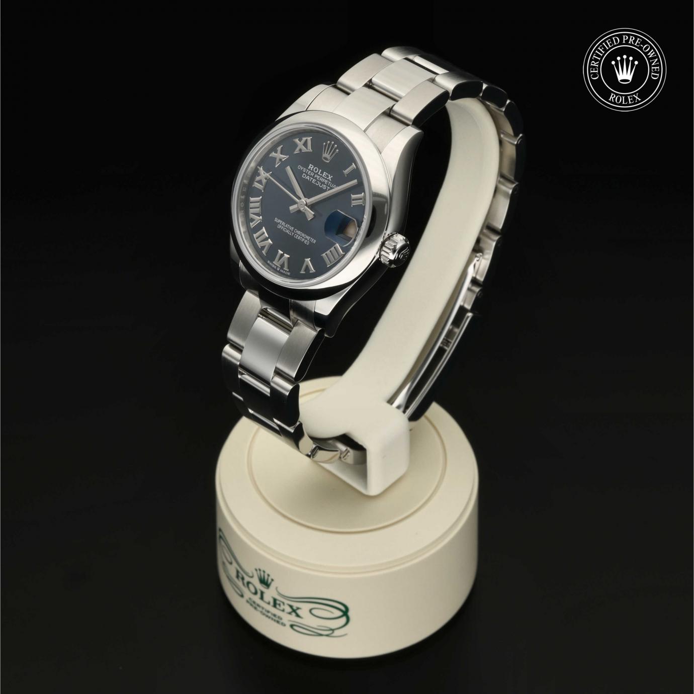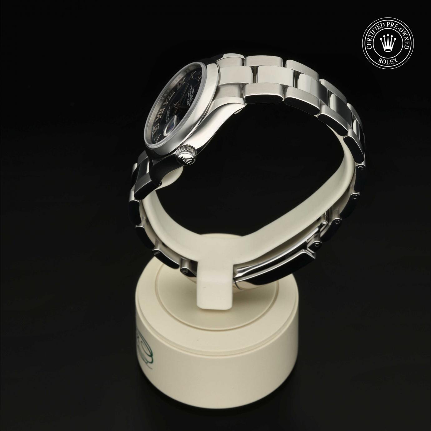 Bei ihrer Einführung im Jahr 1945 war sie das erste automatische und wasserdichte Armbandchronometer, das in einem Sichtfenster auf der 3‑Uhr-Position des Zifferblattes das Datum angibt.Die Datejust ist erhältlich in Edelstahl Oystersteel, als Version in Edelstahl Oystersteel und Gelb-, Weiß- oder Everose-Gold sowie als vollständig in 18 Karat Gold gefertigte Version mit einer großen Auswahl an Zifferblättern, Lünetten und Armbändern. Sie ist ebenfalls in Ausführungen mit Edelsteinbesatz erhältlich.