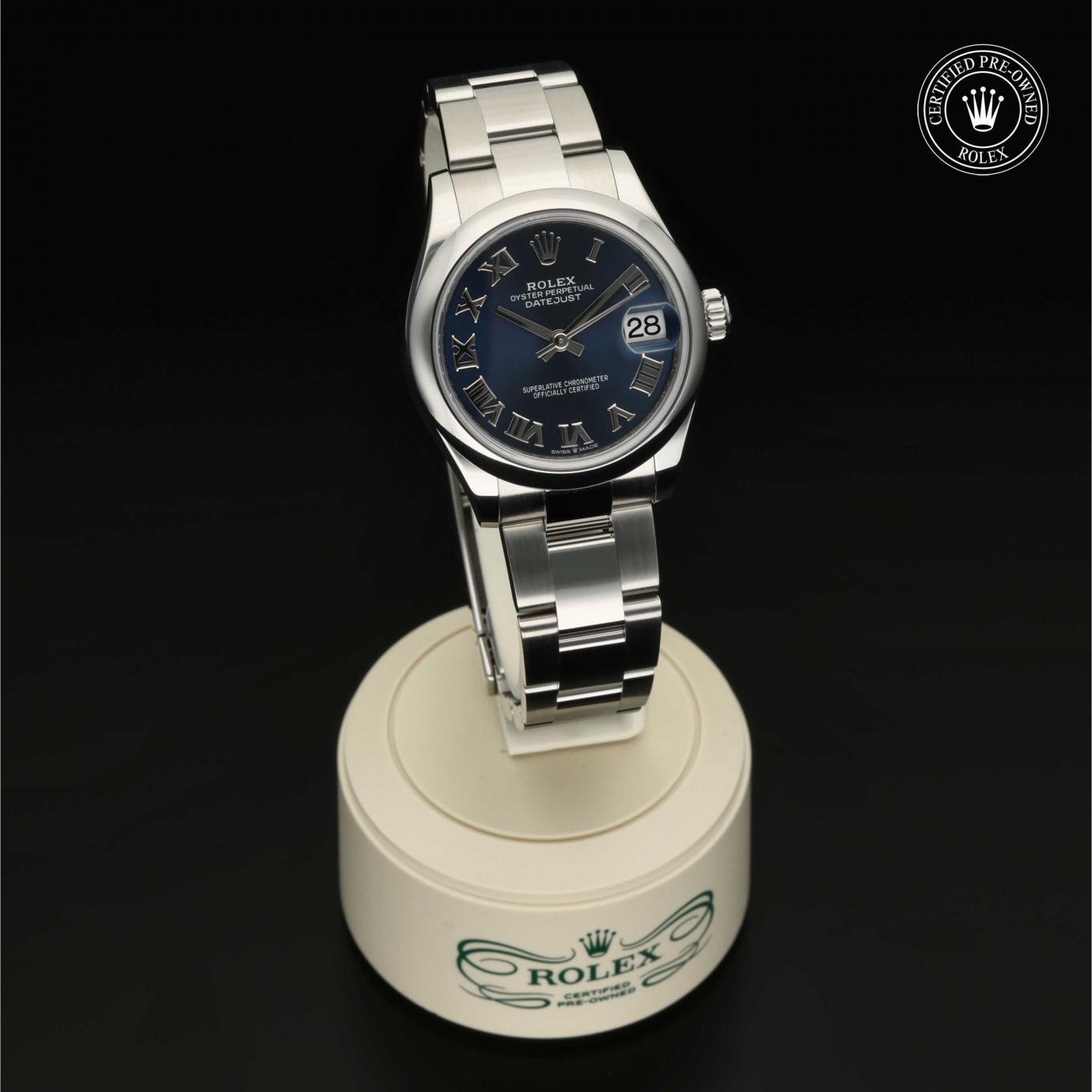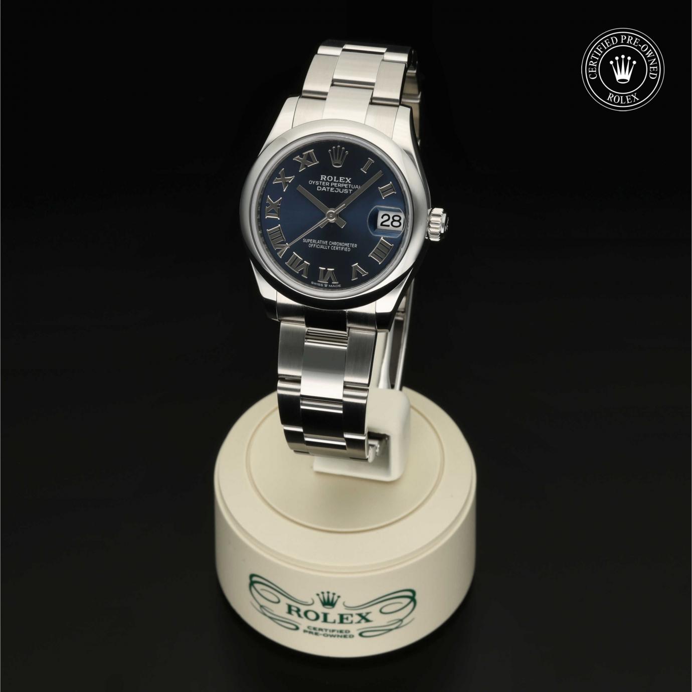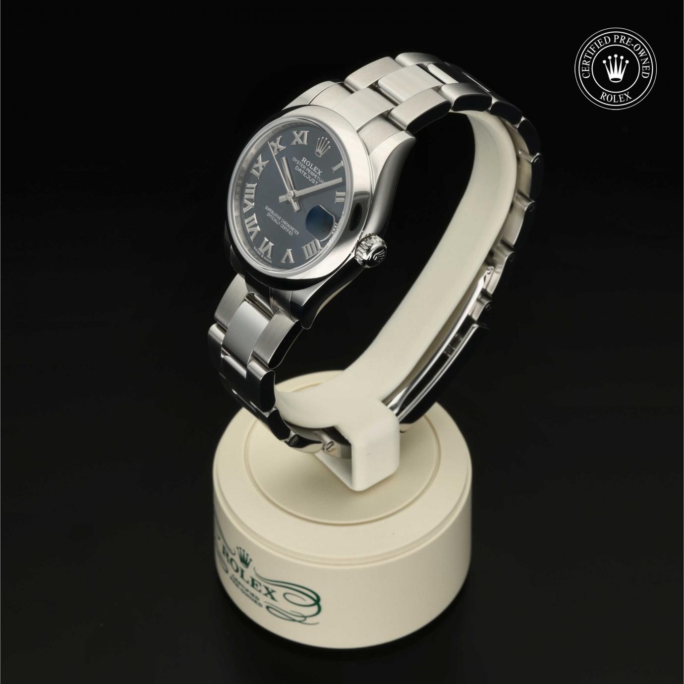 Bei ihrer Einführung im Jahr 1945 war sie das erste automatische und wasserdichte Armbandchronometer, das in einem Sichtfenster auf der 3‑Uhr-Position des Zifferblattes das Datum angibt.Die Datejust ist erhältlich in Edelstahl Oystersteel, als Version in Edelstahl Oystersteel und Gelb-, Weiß- oder Everose-Gold sowie als vollständig in 18 Karat Gold gefertigte Version mit einer großen Auswahl an Zifferblättern, Lünetten und Armbändern. Sie ist ebenfalls in Ausführungen mit Edelsteinbesatz erhältlich.