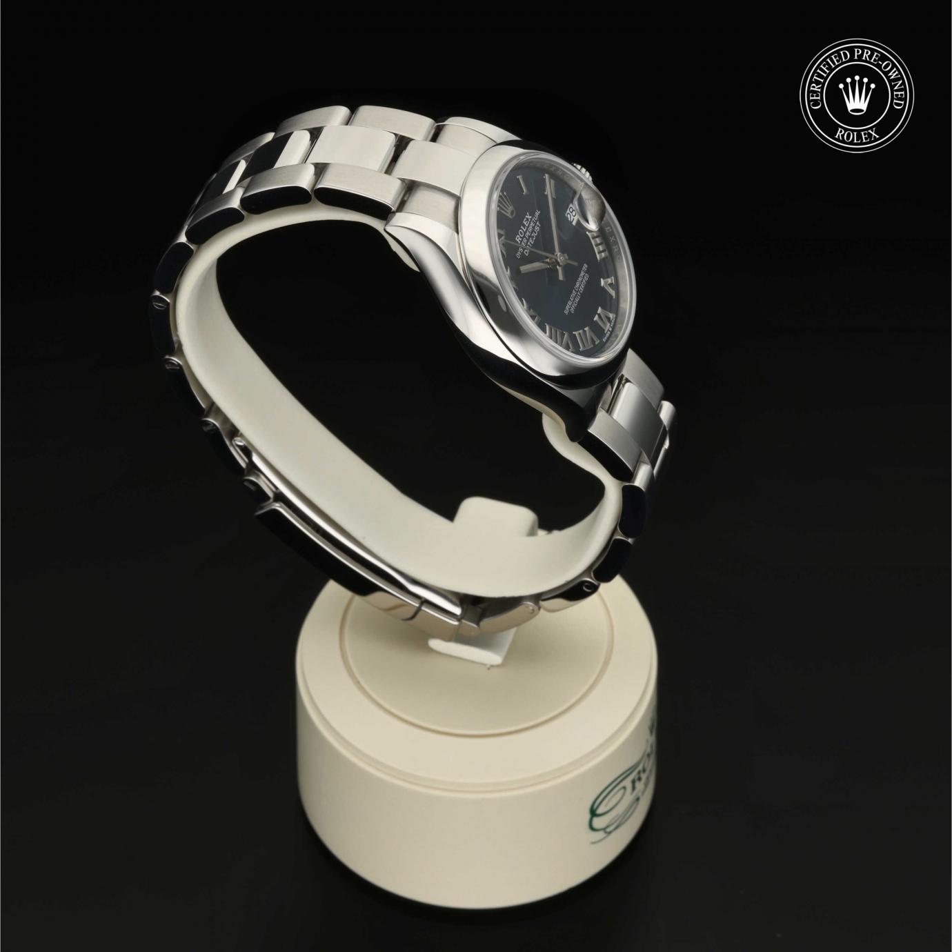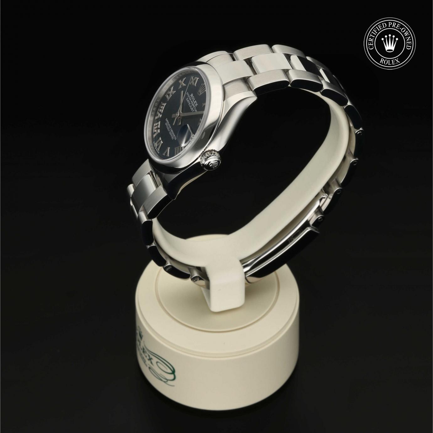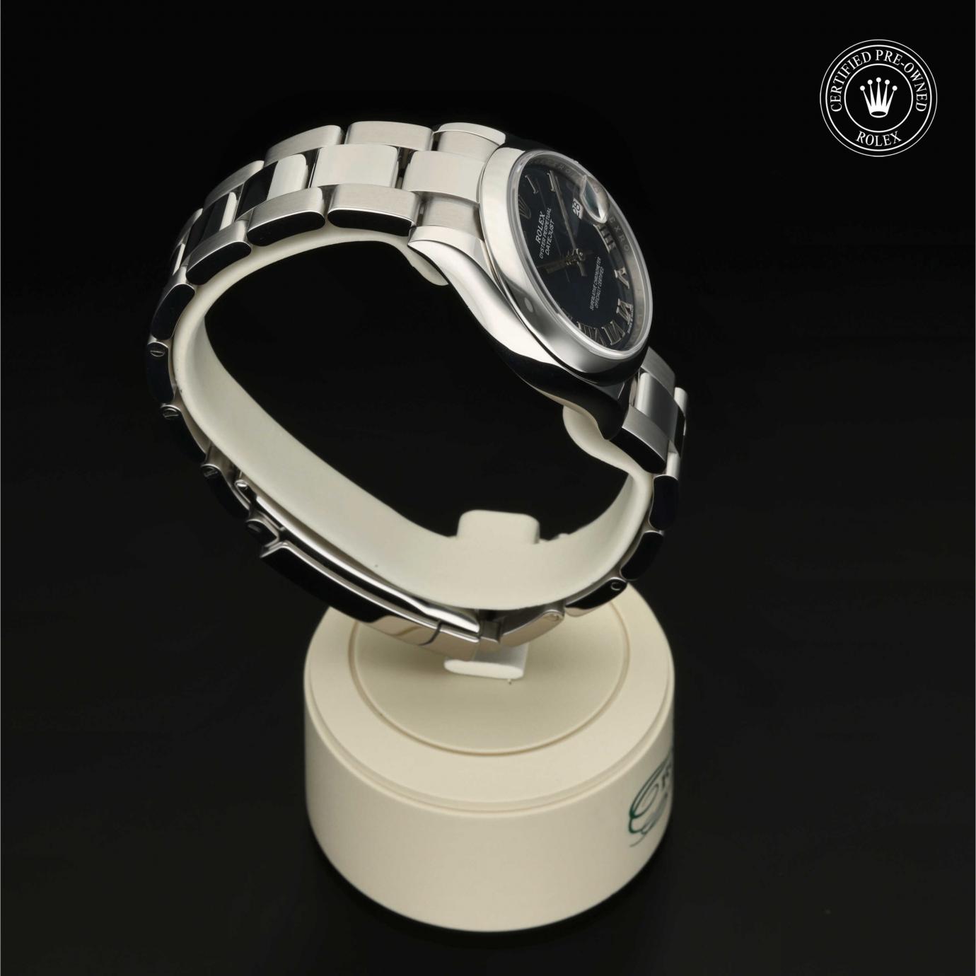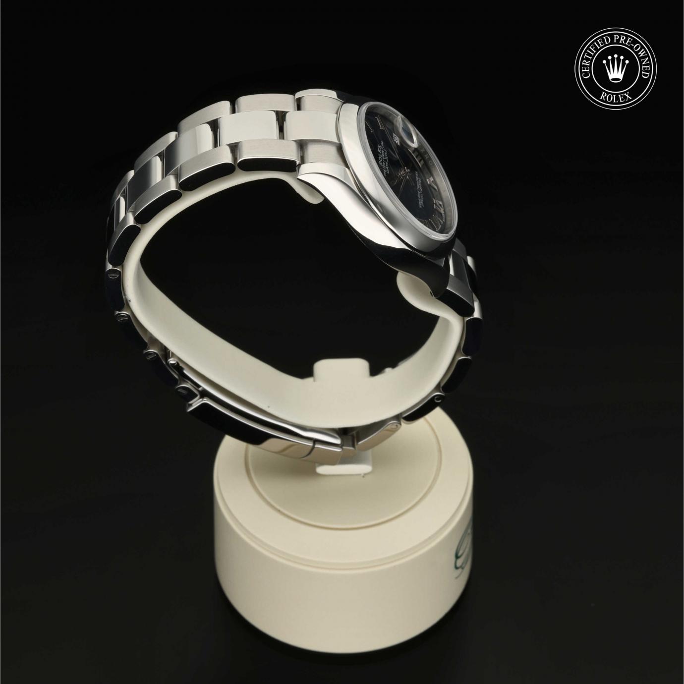 Bei ihrer Einführung im Jahr 1945 war sie das erste automatische und wasserdichte Armbandchronometer, das in einem Sichtfenster auf der 3‑Uhr-Position des Zifferblattes das Datum angibt.Die Datejust ist erhältlich in Edelstahl Oystersteel, als Version in Edelstahl Oystersteel und Gelb-, Weiß- oder Everose-Gold sowie als vollständig in 18 Karat Gold gefertigte Version mit einer großen Auswahl an Zifferblättern, Lünetten und Armbändern. Sie ist ebenfalls in Ausführungen mit Edelsteinbesatz erhältlich.